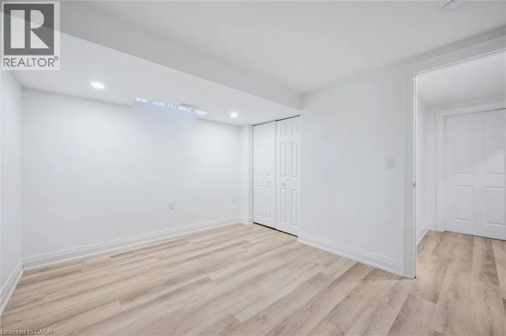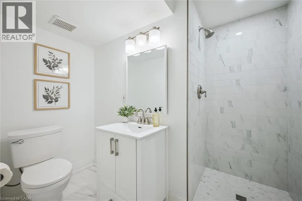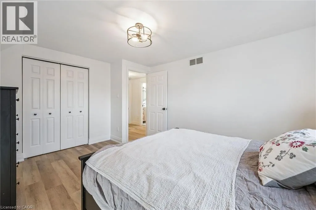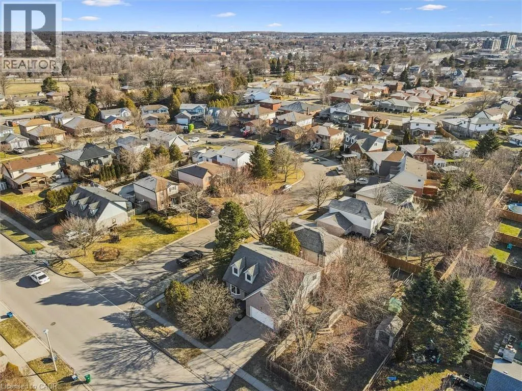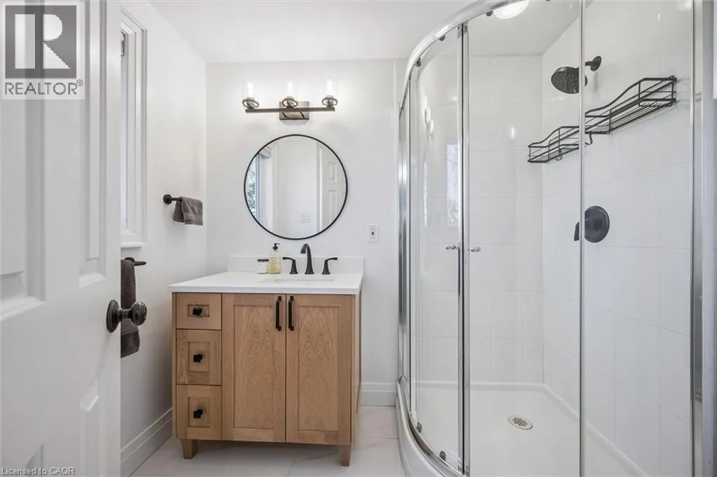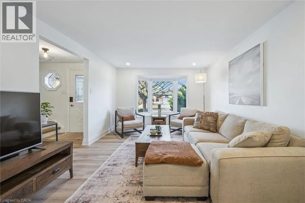 Myers Rd to Enfield Dr Fully Finished Family Home in Desirable South Cambridge - Beautifully updated and move-in ready 4-bedroom home with a double car garage, conveniently located in family-friendly South Cambridge neighbourhood with quick access to Highways 8 and 24, and walking distance to schools, churches, Churchill Park, and scenic Grand River trails. Step inside to a bright, carpet-free interior showcasing large windows and luxury vinyl plank and porcelain tile flooring throughout. The main floor offers a functional layout with formal living and dining rooms at the front, leading to an inviting open-concept family room at the rear, complete with a cozy wood-burning fireplace and garden door walkout to the backyard deck. The stylish, designer kitchen is a true highlightâfeaturing a large island with breakfast bar, quartz countertops, tiled backsplash, stainless steel appliances, and under-cabinet lighting. Upstairs, a modern wood staircase with black spindles leads to four spacious bedrooms and two updated bathrooms finished with quartz countertops and sleek black hardware. The oversized primary suite includes dual closets and a private 3-piece ensuite with walk-in shower, while a 4-piece main bath with tiled tub and shower serves the additional bedrooms. The fully finished basement provides more versatile living space with rec. room, dedicated office with closet, and an updated 3-piece bathroom with tiled walk-in shower. The unfinished laundry/mechanical room offers excellent storage and features an updated furnace (2019), tankless water heater (2025), water softener (2025), and washer/dryer (2025). Outside, enjoy enhanced curb appeal from the mature trees and low-maintenance landscaping that frame the home. A double-wide concrete driveway and two car garage provide parking for 4 vehicles, while a gate opens to a spacious, fully fenced backyard that is great for relaxing or entertaining and completed by a large deck with privacy screens, mature trees, and a garden shed. (id:27476)