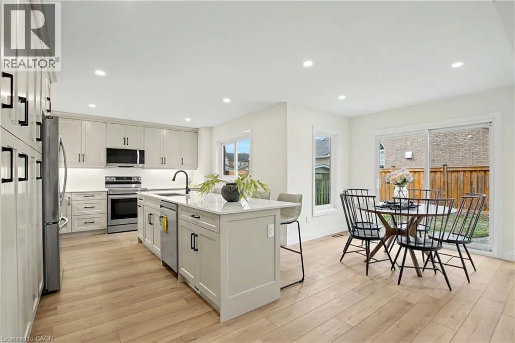 Welcome to this beautifully remodeled all-brick, 2-storey detached home in the sought-after, family-friendly West Galt neighbourhood that delivers everything todayâs buyers are chasing. Featuring 3 bedrooms, 3 bathrooms, and a flawless modern layout, this is true move-in-ready living with zero compromises. The main floor is a showstopperâbright, open-concept, and anchored by a statement kitchen with a massive island (the true heart of the home), plus a dedicated home office and main floor powder room. Entertain with ease or unwind in style with a walkout to your fully fenced backyard. Everyday convenience is covered with a mudroom off the double car garage. Upstairs, the upgrades continue with upper-level laundry and a stunning primary retreat featuring a luxurious 5-piece ensuite and walk-in closet. Extras that seal the deal: double car garage + private double-wide driveway, and an unspoiled basement ready for future value. Location is unbeatableâjust 10 minutes to the 401, surrounded by top-rated schools, parks, and every amenity a growing family needs. Homes like this donât sitâthey SELL. (id:27476)