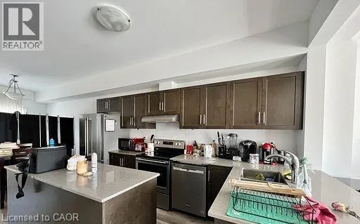 Maple Grove and Compass Trail Welcome to 124 Compass Trail Unit 5, conveniently located in the highly desirable neighbourhood of River Mill in Cambridge! This gorgeous home features 3 bedrooms, 2.5 bathrooms, and an extra bonus room. As you enter the main level, you are greeted with a bonus room that opens up to the backyard through sliding doors. The 2nd level boasts a stylish kitchen with a large kitchen island that is perfect for entertaining. Adjacent to the kitchen is a separate dining area where you can enjoy meals with family and friends. Also, on the 2nd level you will find a spacious living room, providing plenty of room to relax and unwind. The 3rd level consists of a bright and spacious primary bedroom with an en-suite bathroom, 2 more generously sized bedrooms and a main 4pc bathroom. Large windows through out the home that invite an abundance of natural light into every room. Easy access to HWY 401 & HWY 8, close proximity to surrounding major cities, parks, and amenities. Your perfect home awaits, don't miss out! Book your showing today! (id:27476)