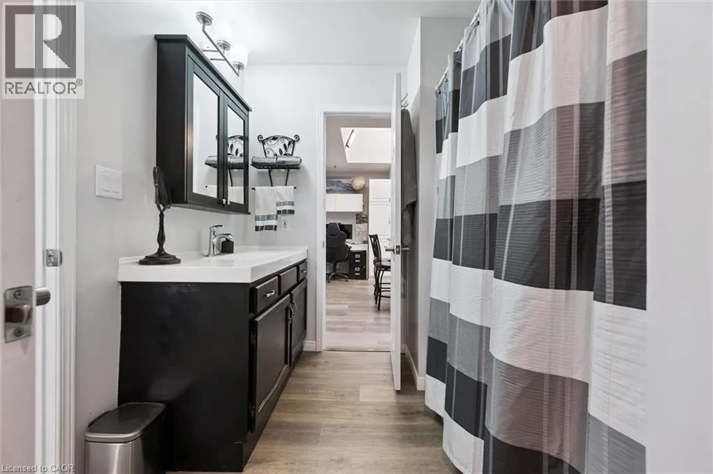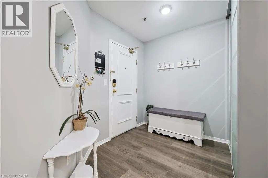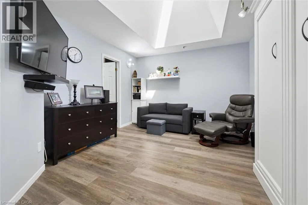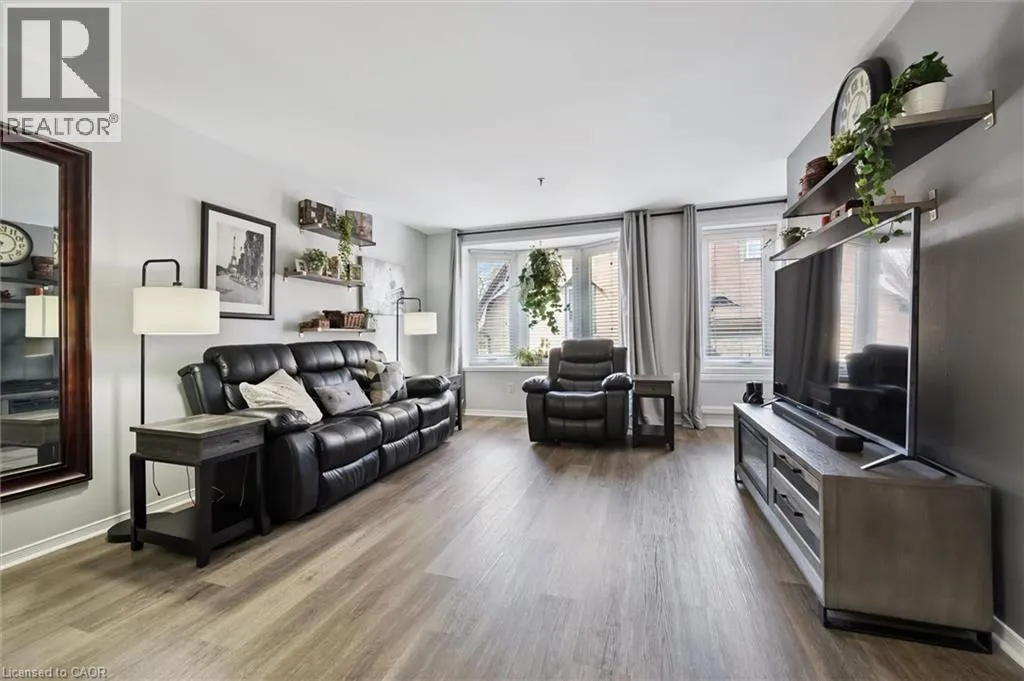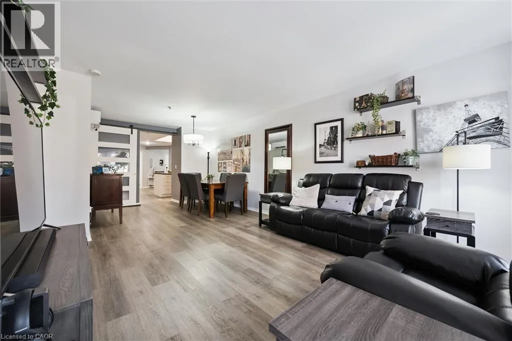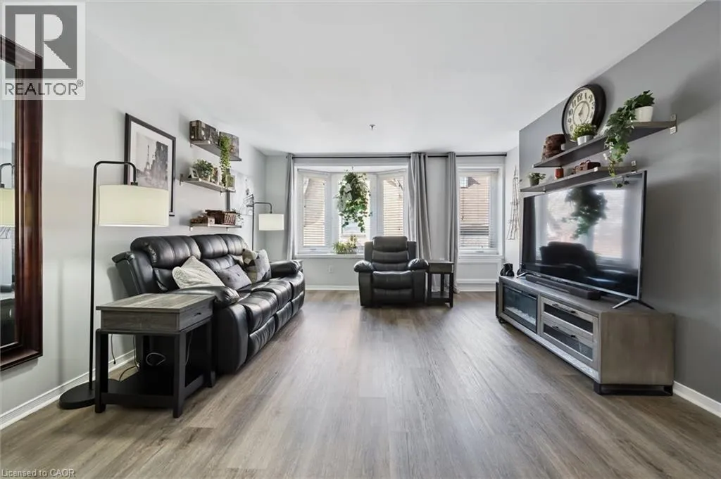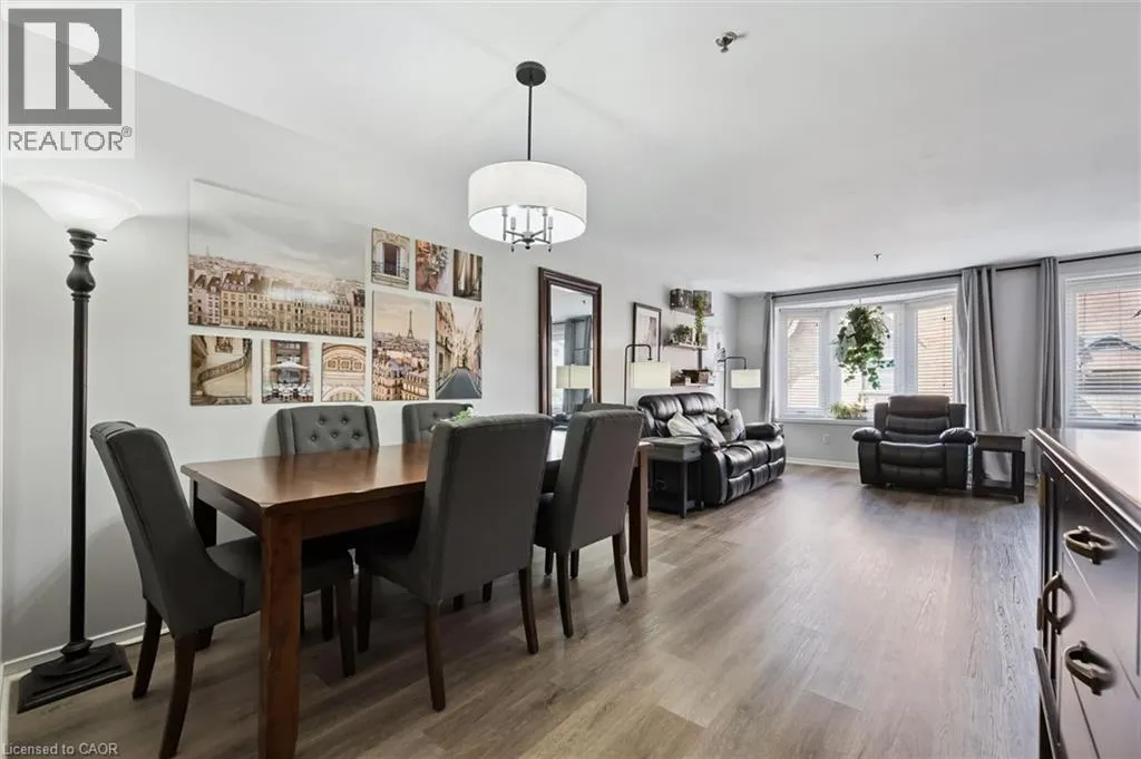 Low maintenance, convenient living. Welcome to Unit #205 - 1009 Queenston Rd located in the Preston area of Cambridge. This spacious 2 bedroom, 2 bathroom condo offers loads of updates including luxury vinyl flooring, a newer kitchen and bathrooms. As you enter the unit there is a large double closet, and on the right is the 2nd bedroom. This bedroom is also attached to the 4-piece main bathroom, leading to the open, bright white kitchen with large island. There is also a useful space currently being used as a home office. Close by the kitchen is the laundry room complete with a small workshop. Steps away is the dining room, prefect for those family gatherings attached to a sizeable living room. At the back of the unit you have the primary bedroom with a walk in closet, and 3 piece ensuite bathroom. This unit also comes with a storage locker, and designated parking spot located in the garage, currently with EV compatible hookup. Located very close to shops, restaurants, parks, public transit and quick highway access this is a great opportunity to be in a well established community. Another key update is the 2 efficient ductless splits this unit offers, providing heat and A/C. Please book your showing today! (id:27476)