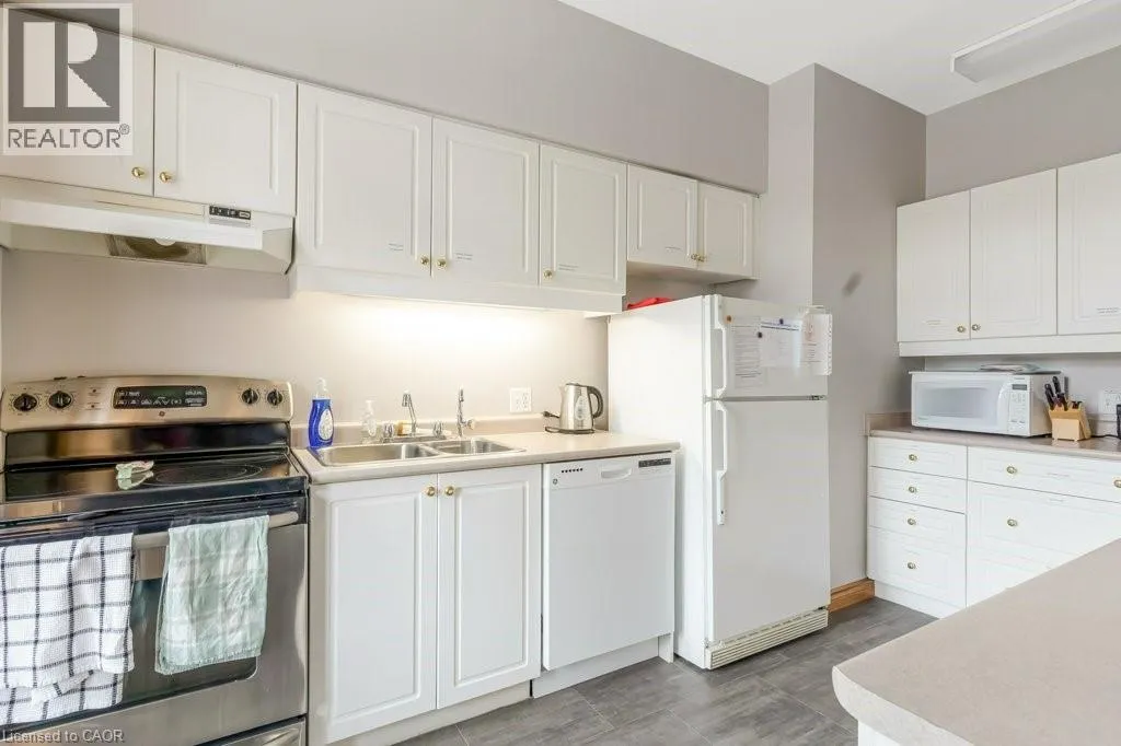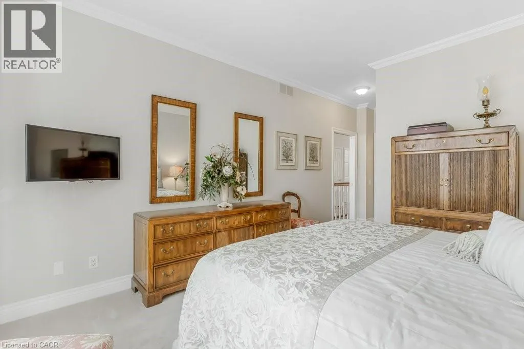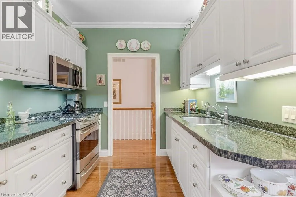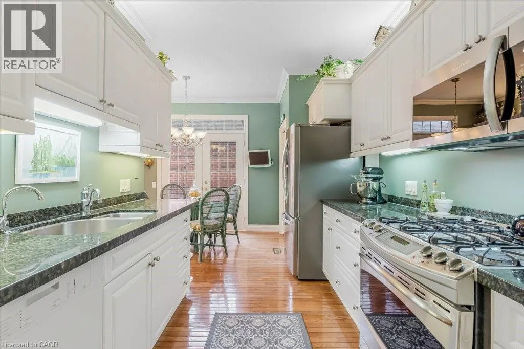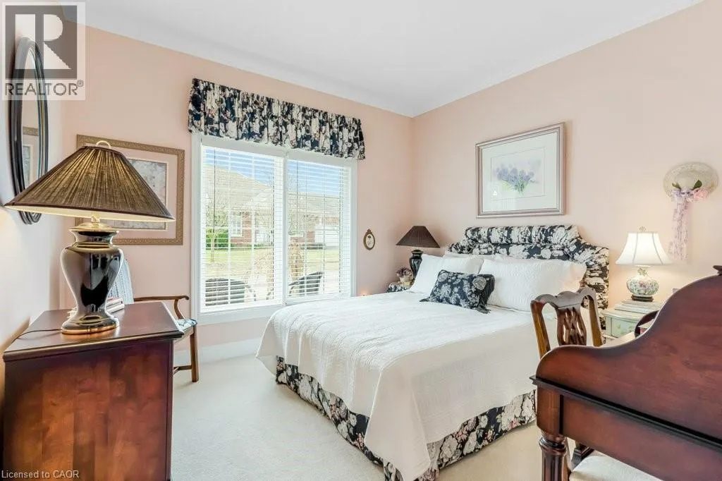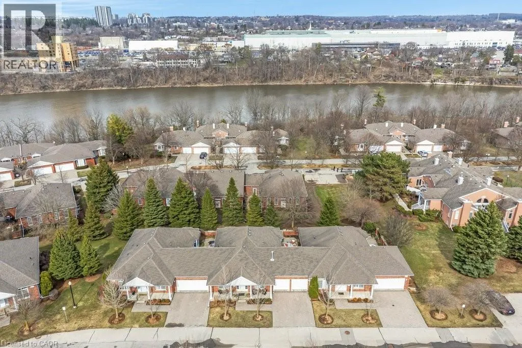 Between Sunset Bl and Blair Rd. Complex along the Grand River. Don't miss this lovely bungalow townhome located in West Galt's highly sought after Riverwalk condominium complex. Situated on almost 17 acres along the Grand River, this beautiful complex offers easy access to walking and biking trails along the water, its own community garden plots, ample visitor parking and the Quarry House, a lovely community meeting place. Although the Quarry House is available for all of your special occasions, it also offers a variety of social activities scheduled throughout the week. The unit itself is a popular centre hall plan, with hardwood flooring and crown moulding running throughout. At the front foyer is a large den with gas f/p. The eat-in kitchen has had additional wall to wall white pantry cabinets added, granite countertops, S.S. appliances, and a door to the private courtyard. The living/dining room area has a gas f/p, 3 bay windows which allow for expansive views of the lawn and lots of sunshine. The primary bedroom also includes a bay window, a large walk in closet, and an ensuite with a glass shower, tile flooring, two sinks, & a soaker tub. The 2nd bedroom and 3pc bath with shower can be closed off from the front hall with a pocket door, making it a perfect retreat for overnight company. Completing this level is the spacious laundry room which leads to a double garage with ample storage, two garage door openers, an access to the courtyard, & a staircase down to the lower level. Downstairs, 3 large egress windows provide lots of sunlight to this spacious family room with a 3rd gas f/p. A 3rd bedroom with an egress window, a walk in closet, and a 4pc bath is great for extra company. If you can use a craft room, this one is outstanding, featuring bright overhead lighting and a sink for easy clean up. Finishing off the lower level is a spacious and organized storage area plus a cold room. This home has been loved and meticulously cared for. Make an appt to view today. You won't be disappointed! (id:27476)