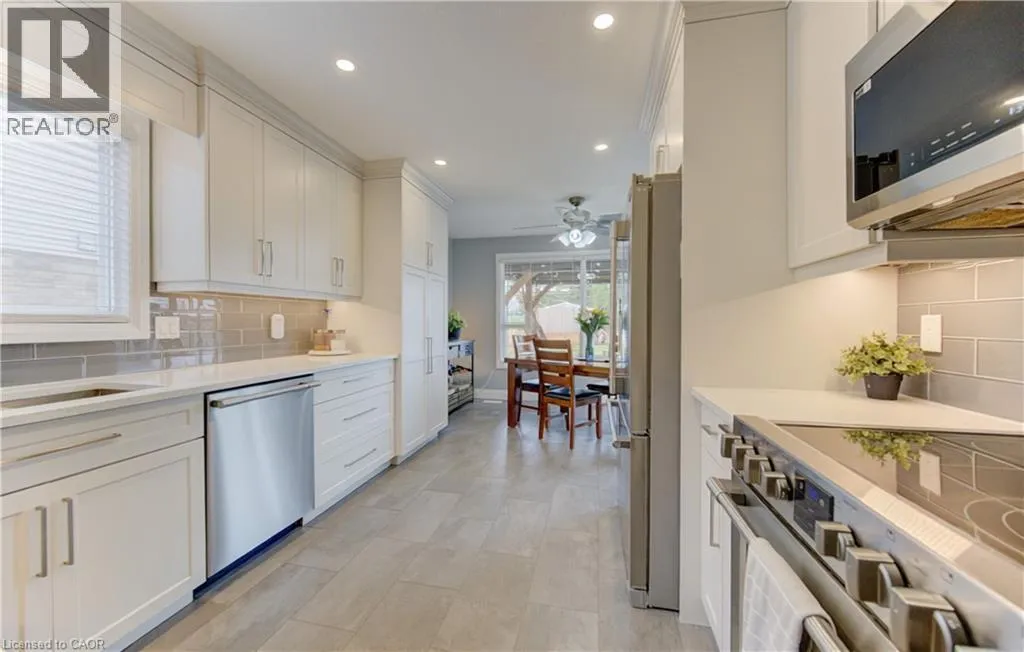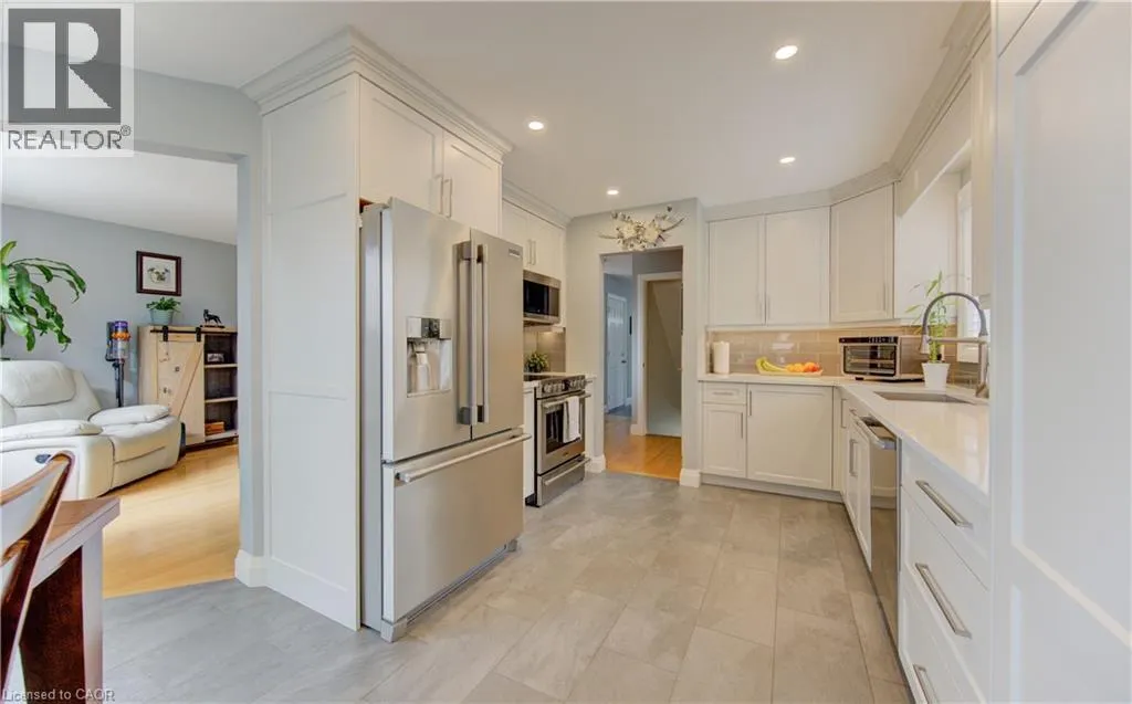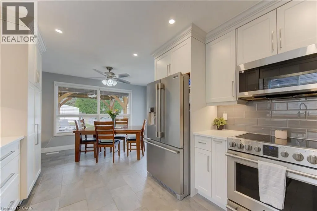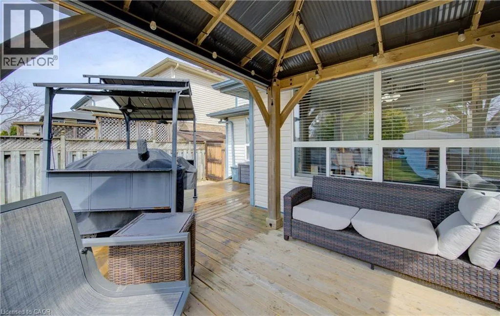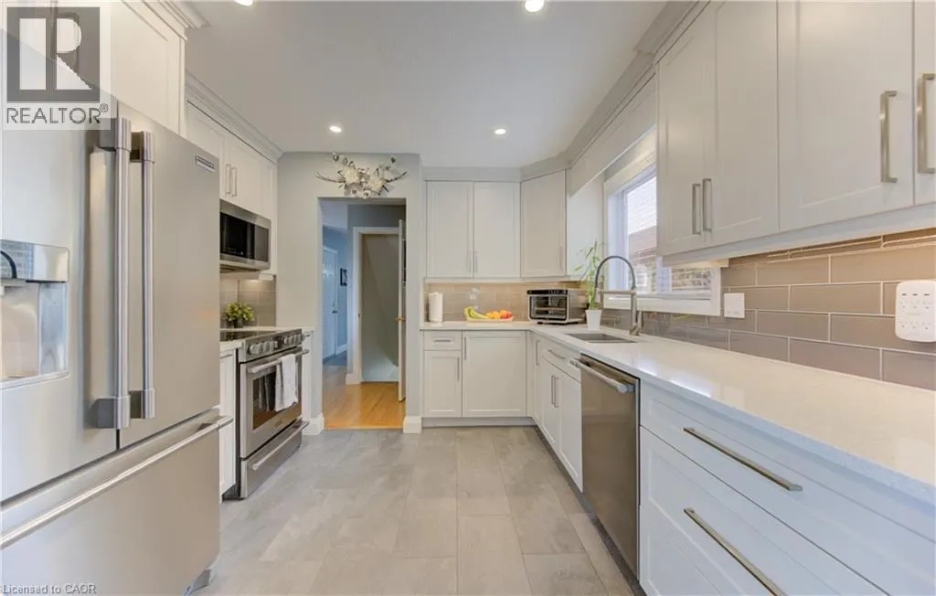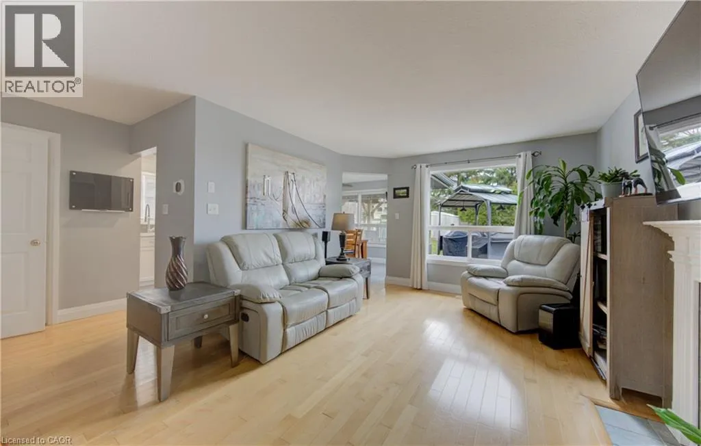Welcome to this stunning two-storey 3+1 bedroom home in highly sought-after North Galtâperfectly situated backing onto a fantastic school, making it an ideal choice for families! From the moment you arrive, youâll be impressed by the exceptional curb appeal, featuring an expanded concrete driveway, manicured lawns, and elegant concrete walkways. This home has been meticulously maintained and proudly shows like a model home. Step inside to a warm and inviting main floor, highlighted by a cozy living room with a gas fireplaceâperfect for relaxing evenings. The oversized eat-in kitchen is a true showstopper, boasting fresh Italian porcelain tile flooring, quartz countertops, high-end finishes, and gleaming stainless steel appliances. Itâs a space designed for both everyday living and effortless entertaining. Additional upgrades include new baseboards throughout the main floor, adding a fresh and modern touch. Upstairs, youâll find three spacious bedrooms, while the finished lower level offers a versatile fourth bedroomâideal for guests, a home office, or additional family space. Step outside to your own private backyard oasis! Fully fenced for privacy, this incredible outdoor living space features an above-ground heated swimming pool, a beautiful gazebo installed on the deck (2022), and plenty of room to entertain or unwind all summer long. Additional highlights include a heated garage, new roof (2015), and a new garage door (2018), offering peace of mind and added comfort year-round. Conveniently located just minutes from excellent schools, shopping, parks, nature trails, and with quick access to Hwy 401 for easy commutingâthis home truly has it all. A must-see propertyâdonât miss your opportunity to call this exceptional home yours! (id:27476)