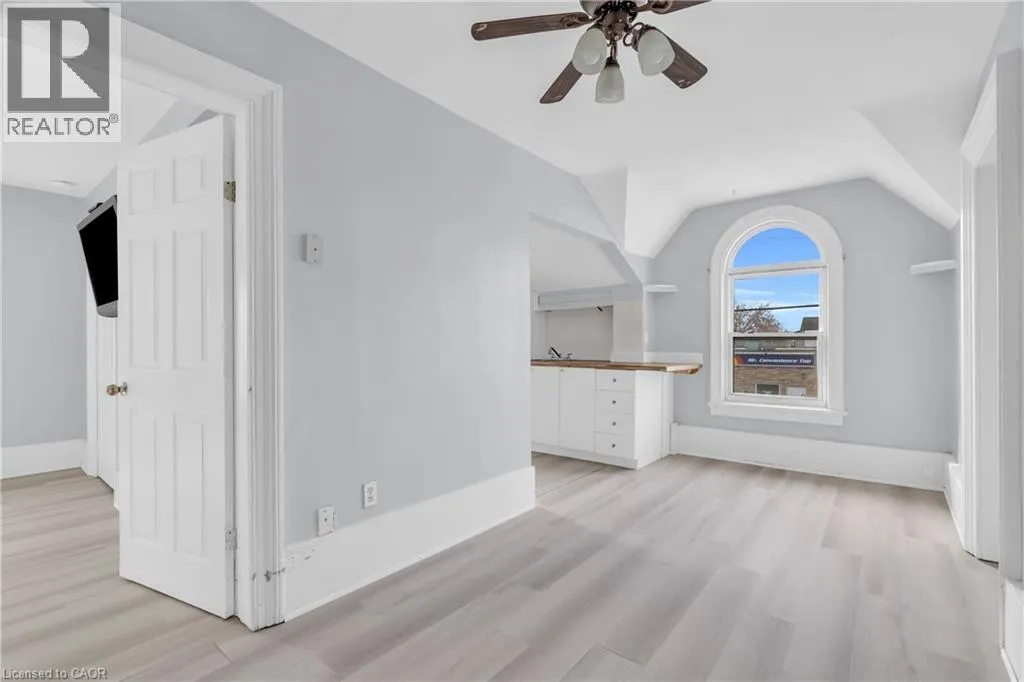 Kerr Street/ Beverly Street 2 BEDROOM + DEN unit in the heart of Galt, Cambridge! This BRIGHT and WELL-MAINTAINED home offers over 650 sq. ft. of FUNCTIONAL living space and includes 1 PARKING SPOT, with WATER AND HEAT INCLUDEDâtenants only pay HYDRO. Perfect for professionals, couples, or small families, the layout features two well-sized bedrooms plus a VERSATILE DEN that can easily be used as a main living area, home office, gaming room, or guest spaceâgiving you the FLEXIBILITY to suit your lifestyle. An additional front room adds even more value, ideal as a cozy sitting area, reading nook, or welcoming entry lounge. The kitchen offers a PRACTICAL layout with good cabinet storage, and the full bathroom is CLEAN and well maintained. Located just minutes from downtown Galt, youâll enjoy convenient access to shops, cafés, parks, schools, transit, and the scenic Grand River. Commuters will also appreciate the quick access to Highway 8. A FUNCTIONAL, AFFORDABLE, and WELL-LOCATED homeâbook your showing today! (id:27476)