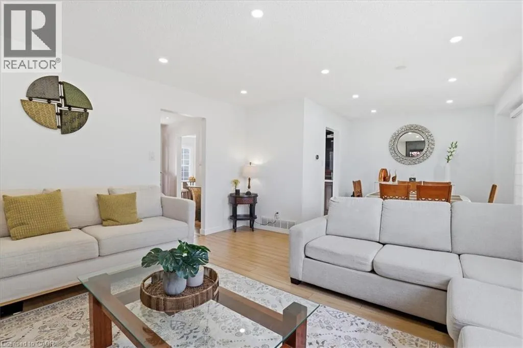 Foxbridge Dr to Holm St Welcome to this well-maintained family home in a highly sought-after, family-friendly neighbourhood, offering a spacious main floor layout with a bright living room, dining area, kitchen with breakfast nook, and a convenient 2-piece bathroom and designer hardwood doors. Upstairs features three comfortable bedrooms and a 3-piece bath, while the fully finished basement includes an in-law suite setup with a separate kitchen and 4-piece bathroom-ideal for extended family or potential added income. The home also offers a spacious attached garage, parking for up to four vehicles in the driveway, and a fully fenced yard backing onto a school with no rear neighbours! Located close to schools, all amenities, and with quick access to Highway 401, this property is an excellent opportunity for families seeking both comfort and convenience. (id:27476)