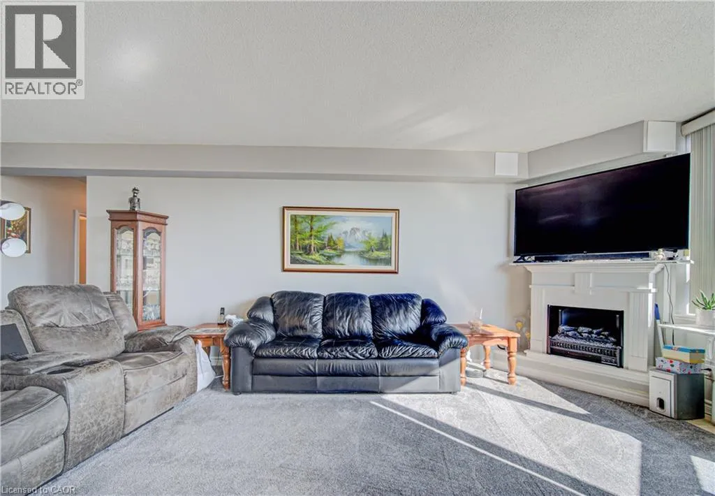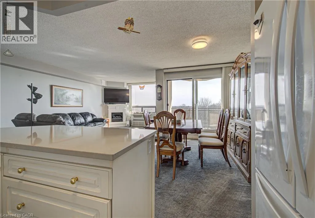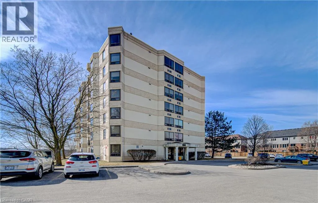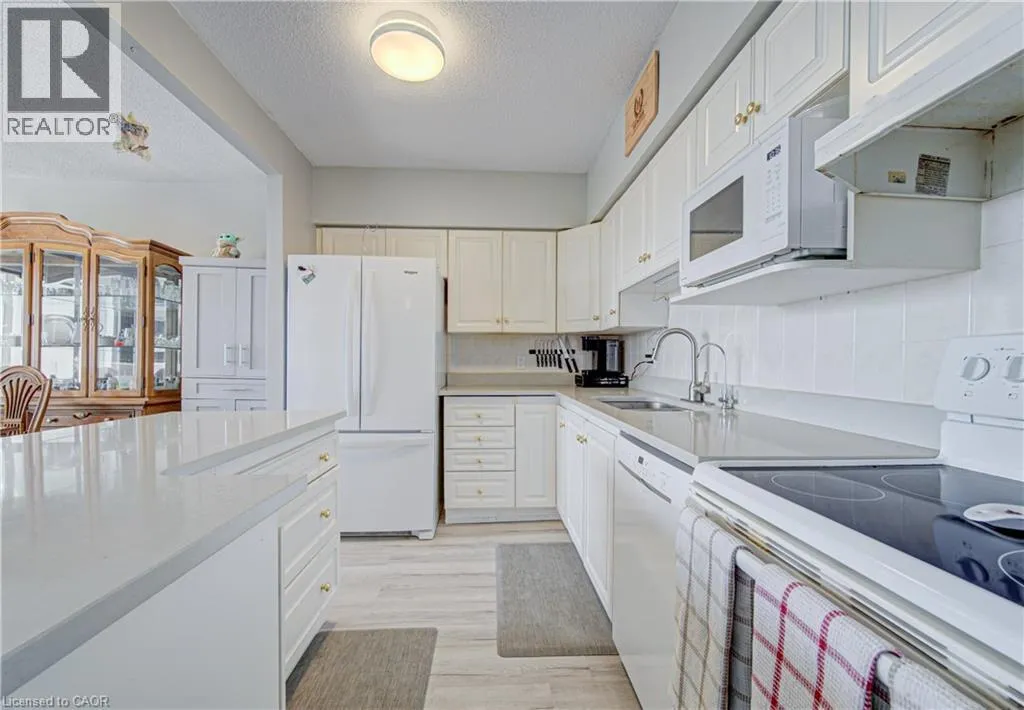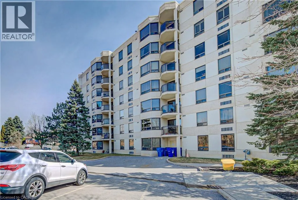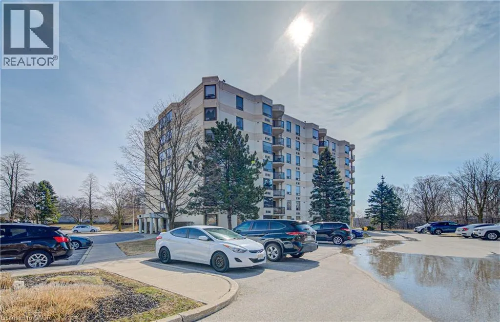 Shantz Hill to Preston Parkway RARE Offering! Spacious 7th floor 3 bedroom, 2 full bath, 2 car parking corner condo with view of Grand River from the 147 sq. ft. covered balcony. Located in a quiet building close to the 401, Conestoga College, shopping and trails on bus route. Building features workout room, party room, secure entrance, indoor bike storage with no pets and no smoking regulations. All three large bedrooms by any measure are unique on the market for condo living. The primary bedroom suite features large windows, walk in closet, with separate heating, private updated 4 piece ensuite bath with tiled heated floor with shower stall and storage. Corner bedroom could be used as a media room, bedroom or home office with large corner windows for city view. Open concept kitchen, dining room and living room feature laminate flooring in kitchen, island with high efficiency appliances overlooking patio doors to balcony and electric fireplace. Dining and living room are broadloomed carpeted with textured ceiling. The condo unit features exclusive in suite carbon water filter for all water and filtered tap water in kitchen. In suite seperate storage room is great for use as a pantry off kitchen for additional kitchen cabinet space. Large balcony is covered and open with expansive views over open space and the meandering Grand River. Two deeded parking spaces is a huge bonus and can be rented out. Monthly costs including utilities, condo fees, 2 car parking and property taxes currently total $1,290.00. Upgrades include kitchen, ensuite bath, flooring, patio door, filtration system, common areas, parking surface. The updated heat pumps are great for zone heating and all bedrooms and bathrooms have seperate heat controls. This is wonderful opportunity for those hoping to downsize or tenants looking for more room and ownership. (id:27476)