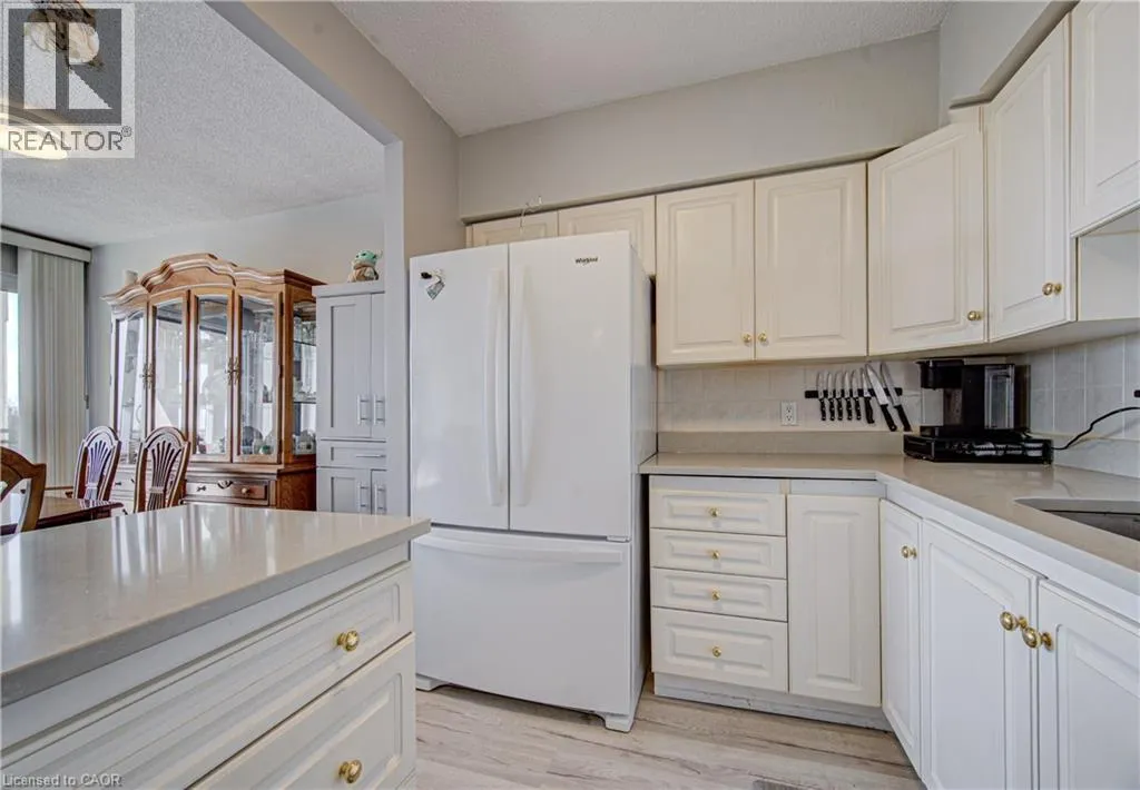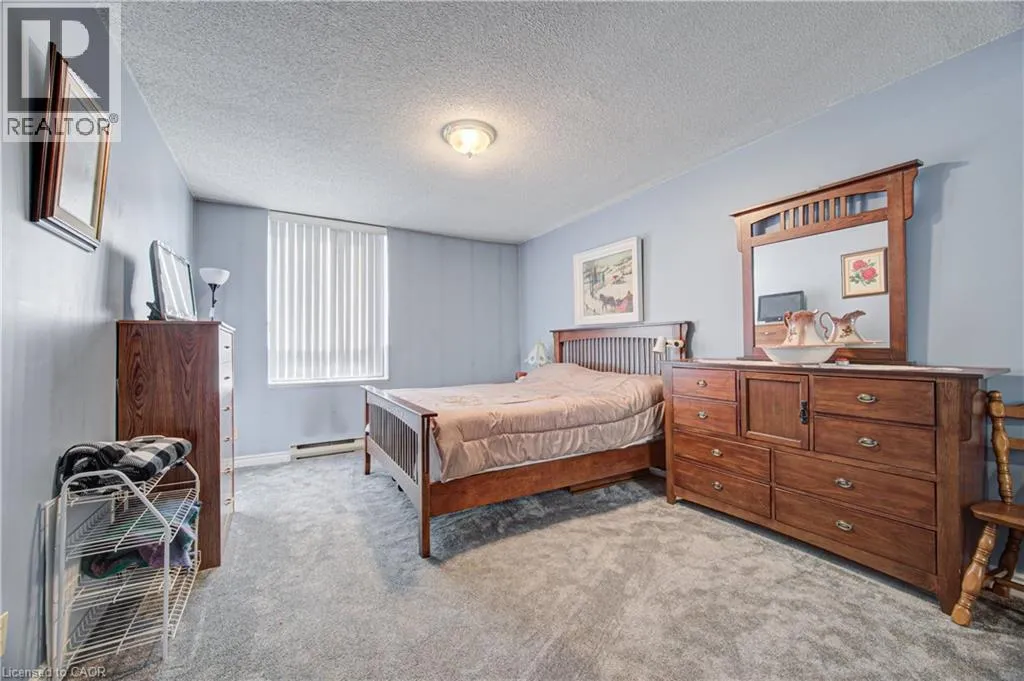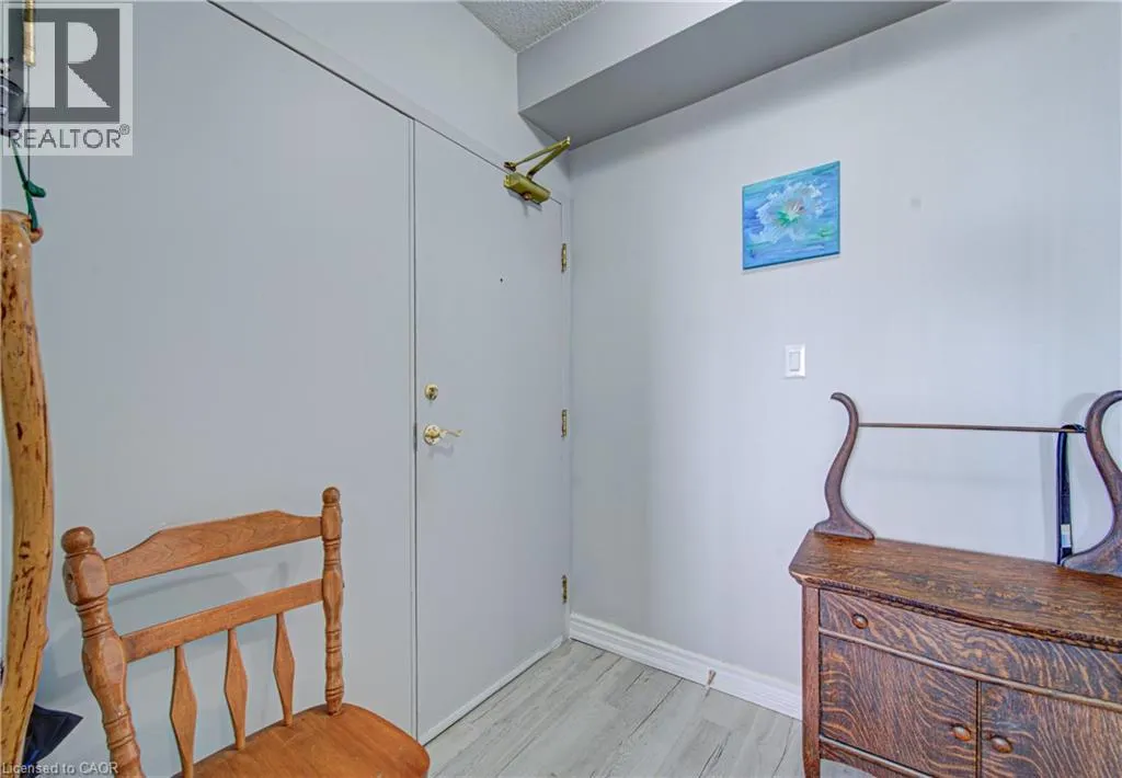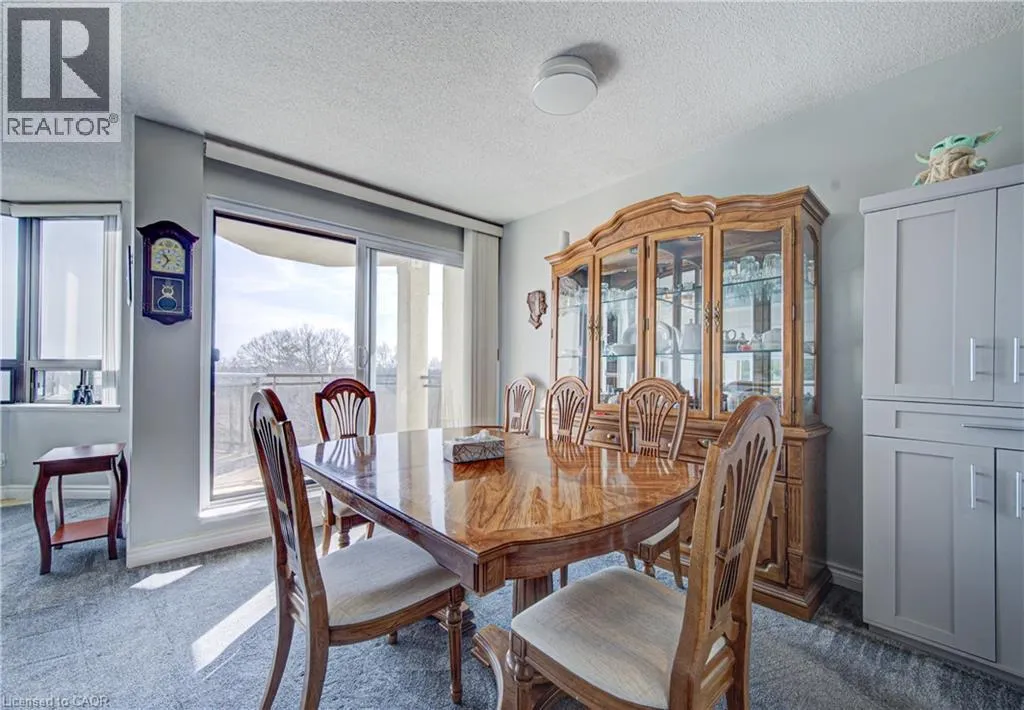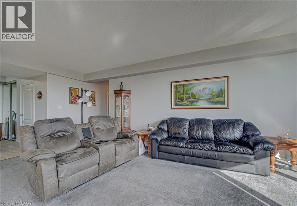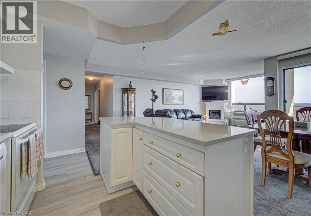 Shantz Hill to Preston Parkway RARE Offering! Spacious 7th floor 3 bedroom, 2 full bath, 2 car parking corner condo with view of Grand River from the 147 sq. ft. covered balcony. Located in a quiet building close to the 401, Conestoga College, shopping and trails on bus route. Building features workout room, party room, secure entrance, indoor bike storage with no pets and no smoking regulations. All three large bedrooms by any measure are unique on the market for condo living. The primary bedroom suite features large windows, walk in closet, with separate heating, private updated 4 piece ensuite bath with tiled heated floor with shower stall and storage. Corner bedroom could be used as a media room, bedroom or home office with large corner windows for city view. Open concept kitchen, dining room and living room feature laminate flooring in kitchen, island with high efficiency appliances overlooking patio doors to balcony and electric fireplace. Dining and living room are broadloomed carpeted with textured ceiling. The condo unit features exclusive in suite carbon water filter for all water and filtered tap water in kitchen. In suite seperate storage room is great for use as a pantry off kitchen for additional kitchen cabinet space. Large balcony is covered and open with expansive views over open space and the meandering Grand River. Two deeded parking spaces is a huge bonus and can be rented out. Monthly costs including utilities, condo fees, 2 car parking and property taxes currently total $1,290.00. Upgrades include kitchen, ensuite bath, flooring, patio door, filtration system, common areas, parking surface. The updated heat pumps are great for zone heating and all bedrooms and bathrooms have seperate heat controls. This is wonderful opportunity for those hoping to downsize or tenants looking for more room and ownership. (id:27476)