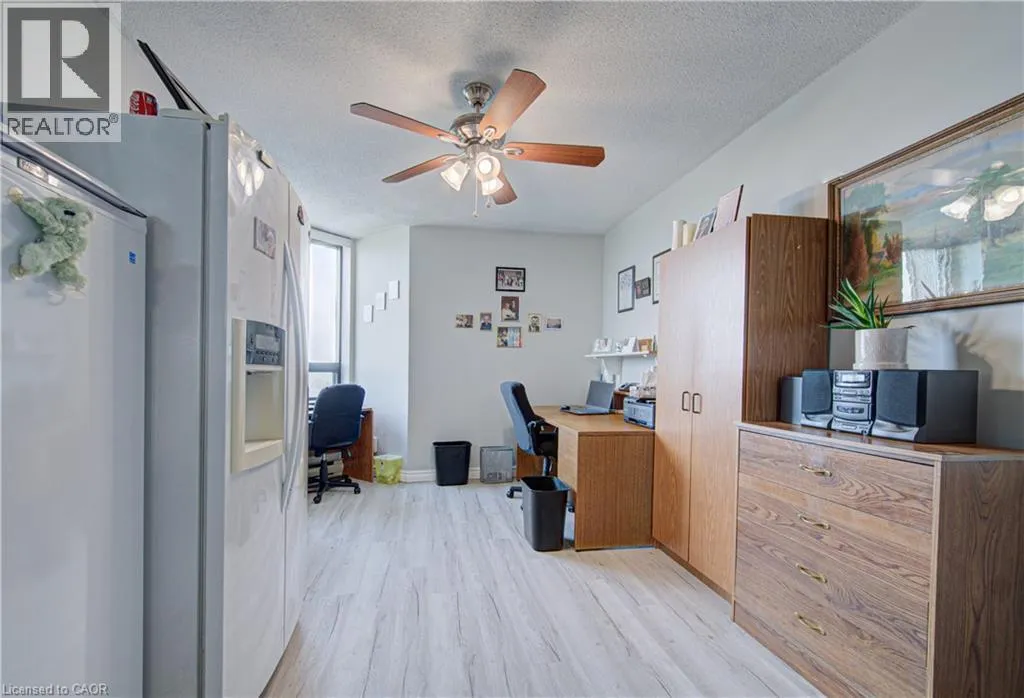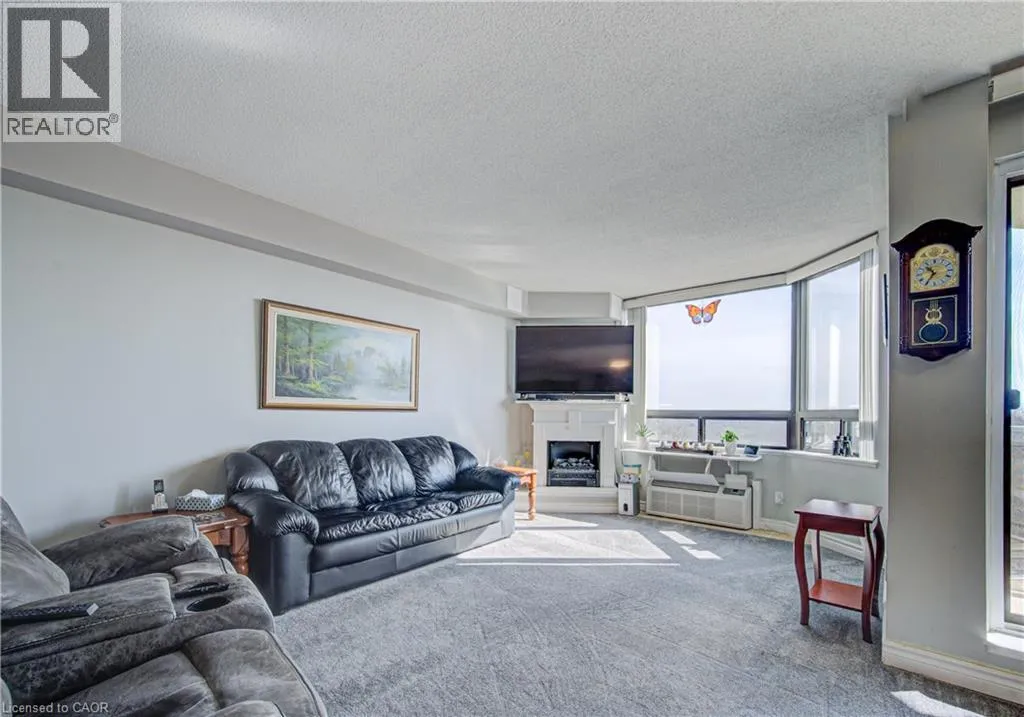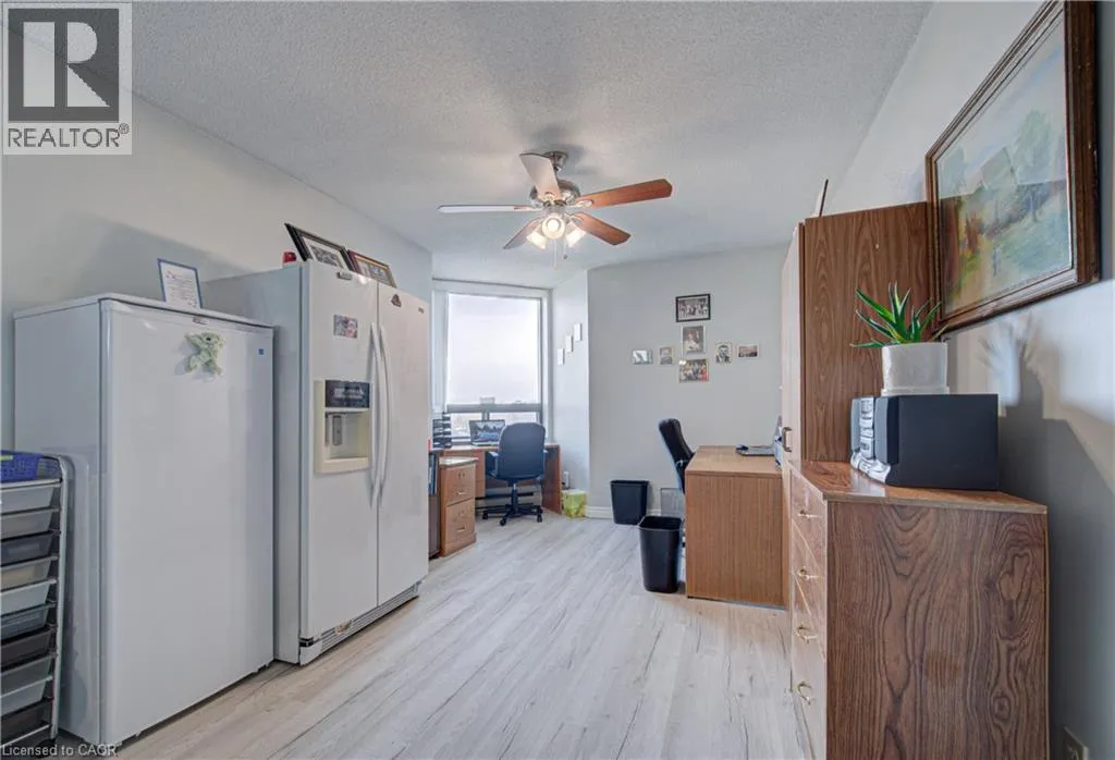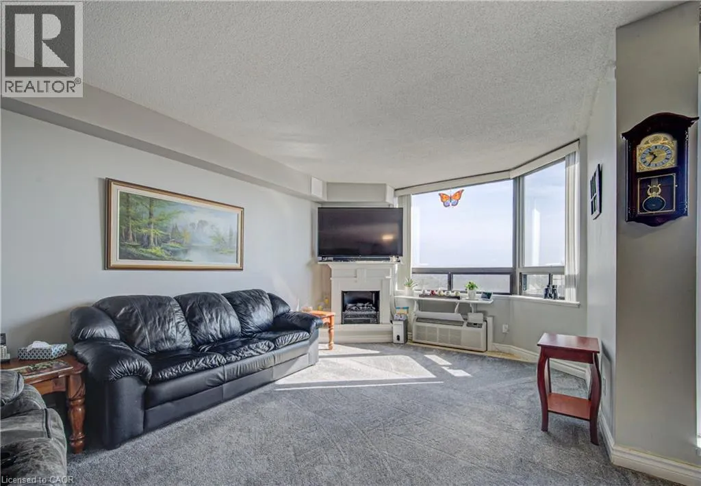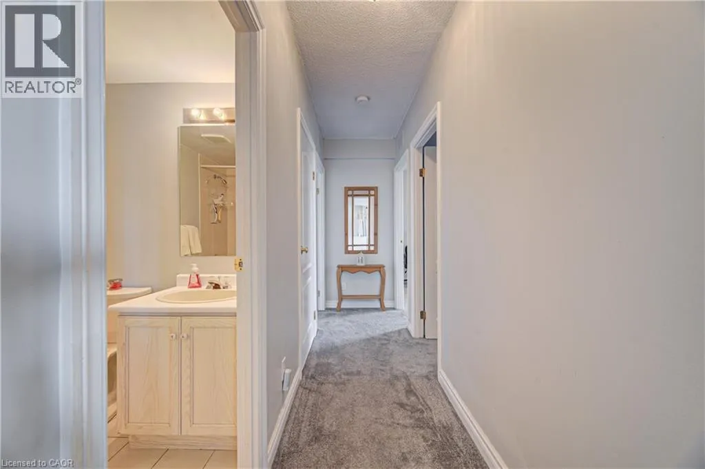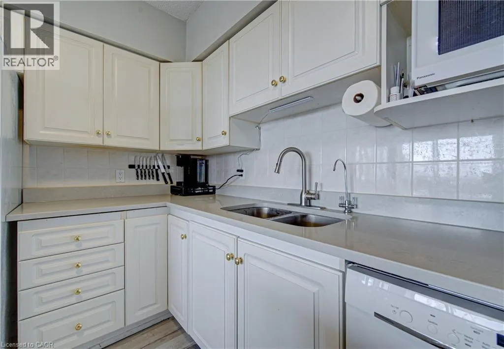 Shantz Hill to Preston Parkway RARE Offering! Spacious 7th floor 3 bedroom, 2 full bath, 2 car parking corner condo with view of Grand River from the 147 sq. ft. covered balcony. Located in a quiet building close to the 401, Conestoga College, shopping and trails on bus route. Building features workout room, party room, secure entrance, indoor bike storage with no pets and no smoking regulations. All three large bedrooms by any measure are unique on the market for condo living. The primary bedroom suite features large windows, walk in closet, with separate heating, private updated 4 piece ensuite bath with tiled heated floor with shower stall and storage. Corner bedroom could be used as a media room, bedroom or home office with large corner windows for city view. Open concept kitchen, dining room and living room feature laminate flooring in kitchen, island with high efficiency appliances overlooking patio doors to balcony and electric fireplace. Dining and living room are broadloomed carpeted with textured ceiling. The condo unit features exclusive in suite carbon water filter for all water and filtered tap water in kitchen. In suite seperate storage room is great for use as a pantry off kitchen for additional kitchen cabinet space. Large balcony is covered and open with expansive views over open space and the meandering Grand River. Two deeded parking spaces is a huge bonus and can be rented out. Monthly costs including utilities, condo fees, 2 car parking and property taxes currently total $1,290.00. Upgrades include kitchen, ensuite bath, flooring, patio door, filtration system, common areas, parking surface. The updated heat pumps are great for zone heating and all bedrooms and bathrooms have seperate heat controls. This is wonderful opportunity for those hoping to downsize or tenants looking for more room and ownership. (id:27476)