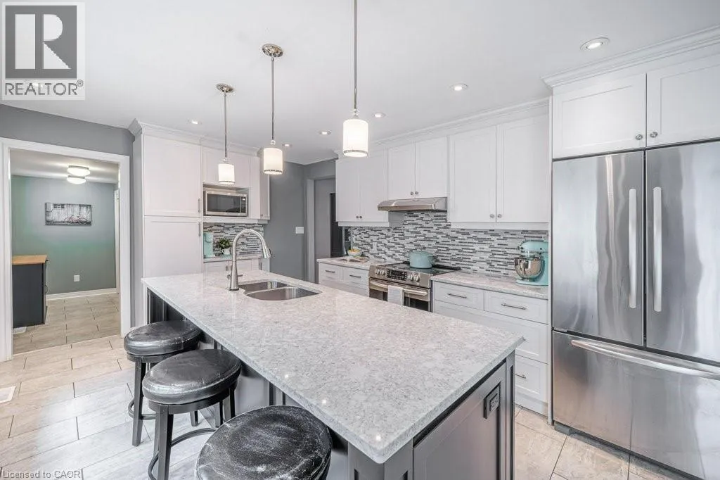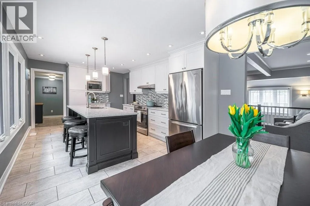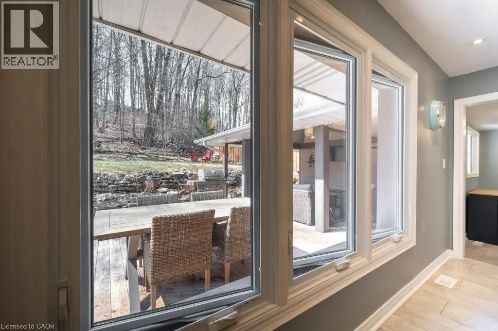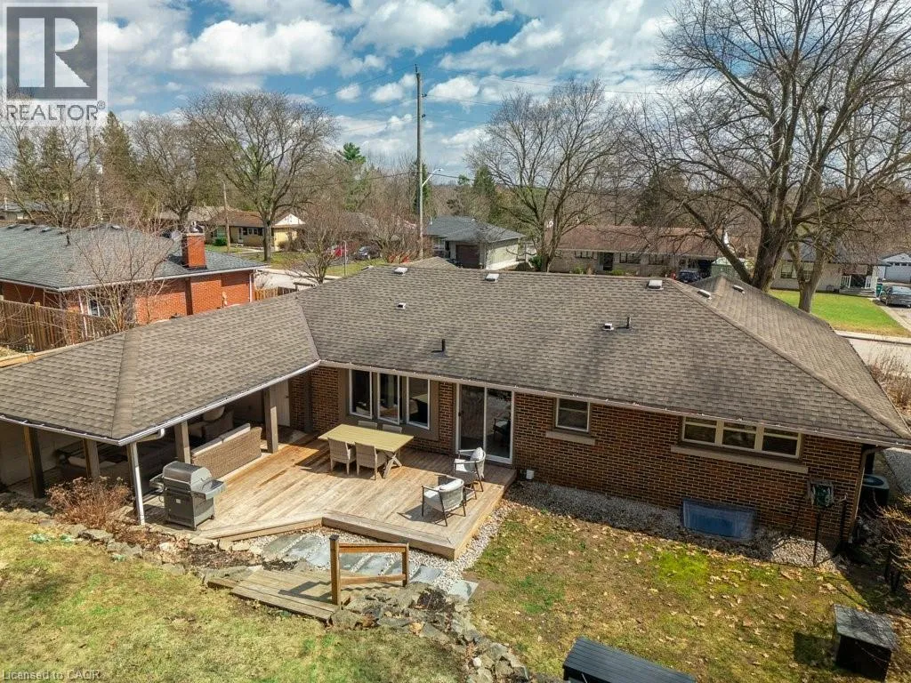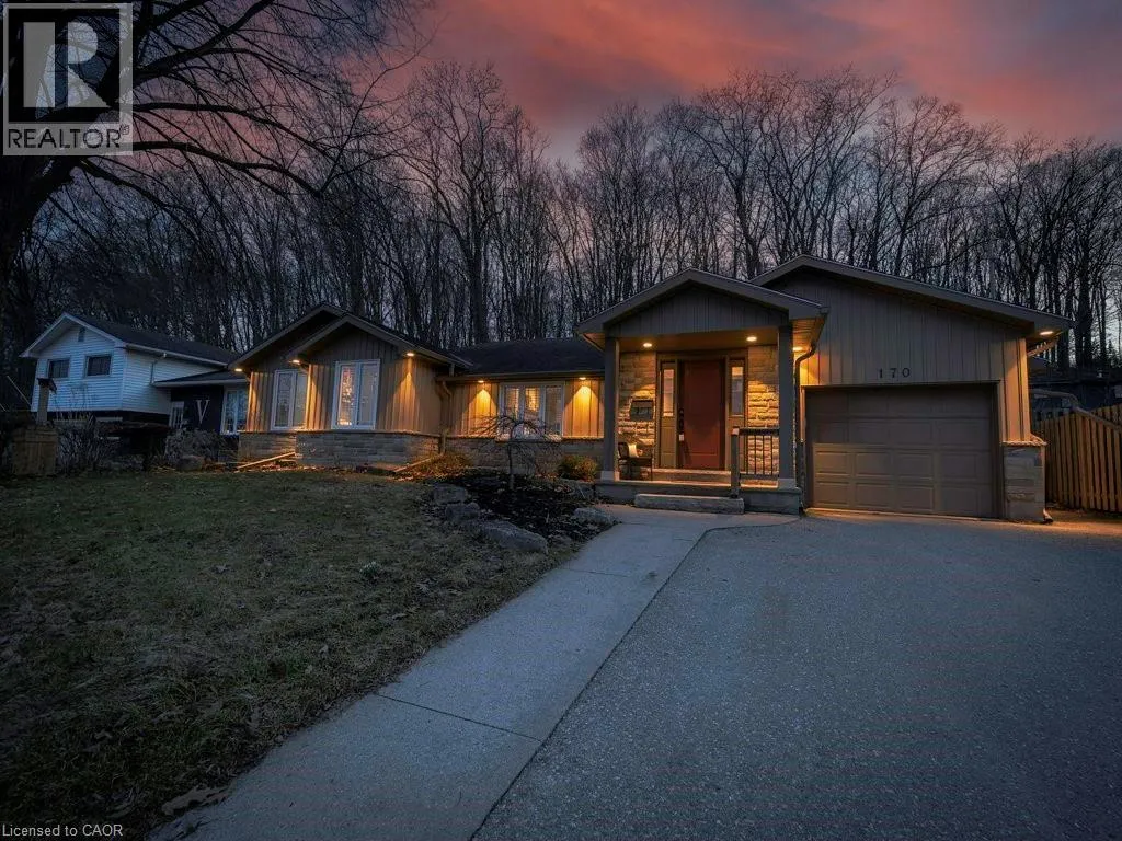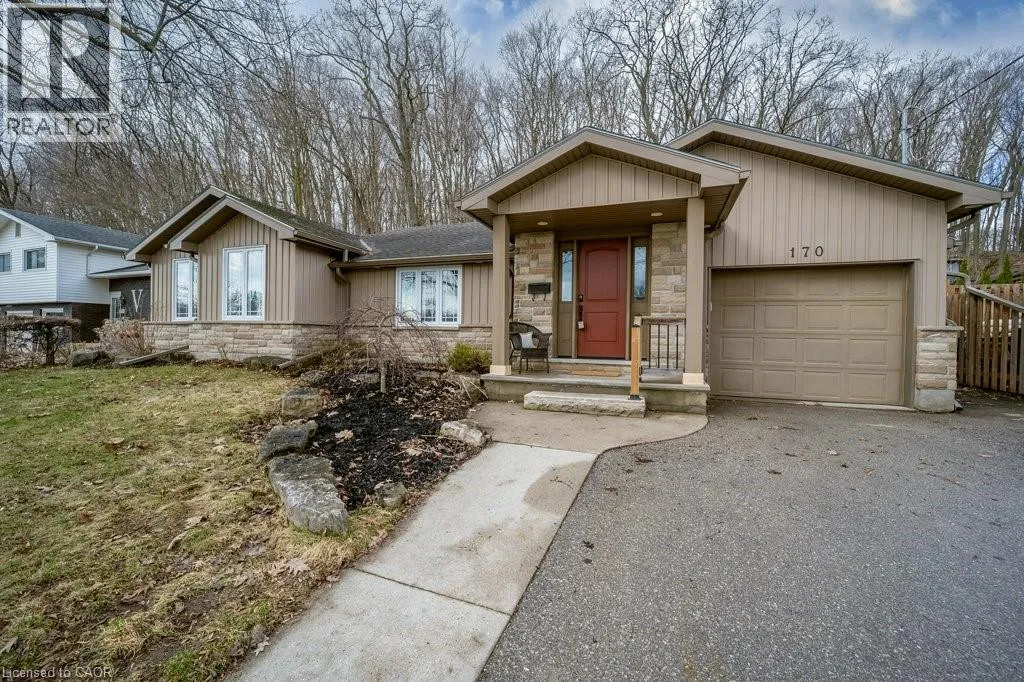 Welcome to 170 Tait Street, an exceptional turnkey bungalow located in one of Cambridgeâs most desirable neighbourhoods. Backing directly onto a picturesque forested greenspace, this beautifully updated home offers a rare combination of privacy, natural surroundings, and modern living. This thoughtfully upgraded residence features three spacious bedrooms and two well-appointed bathrooms, along with a seamless addition completed in 2013 that enhances both the living space and functionality. The modern kitchen, renovated in 2014, is designed for both everyday comfort and effortless entertaining. Extensive updates have been completed throughout the home, including the roof, furnace, air conditioning, 100-amp electrical service (2013) windows (2013), and upgraded attic insulation (2016)âproviding peace of mind. Ideally situated just steps from Tait Street Public School, which offers French immersion, as well as nearby parks and amenities, this home is perfectly suited for families, downsizers, or anyone seeking refined single-level living in a prime location. A rare opportunity to own a beautifully maintained home in the heart of West Galt. Book your private showing today. (id:27476)