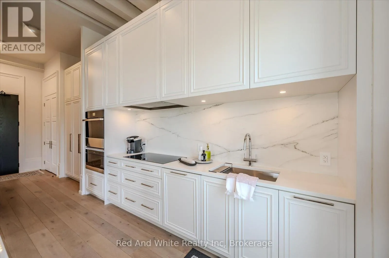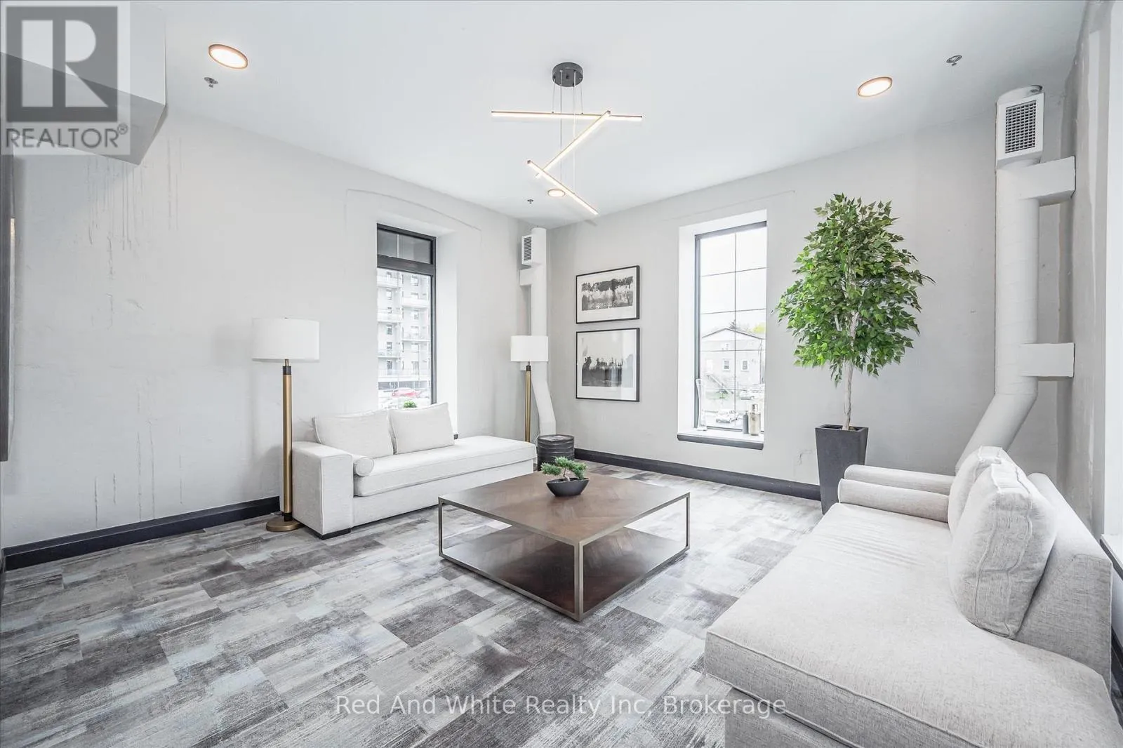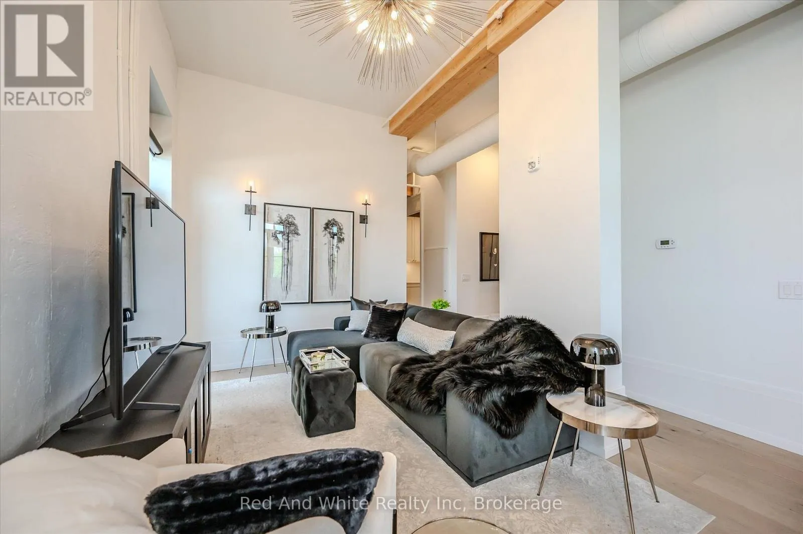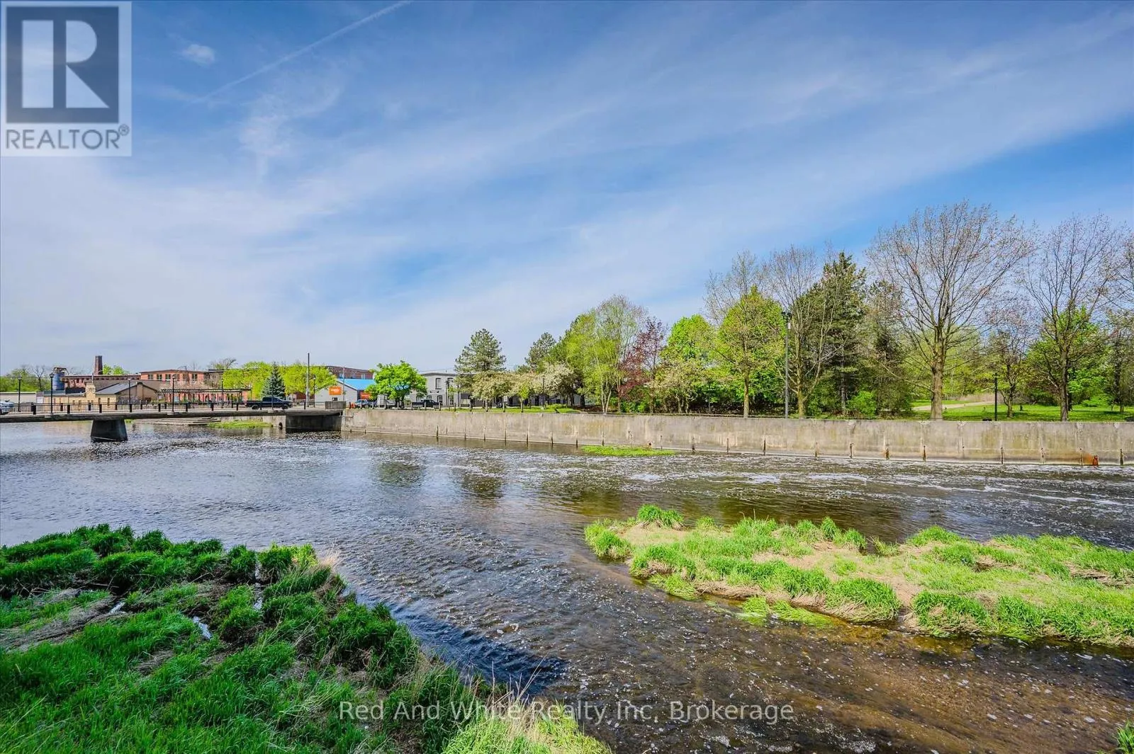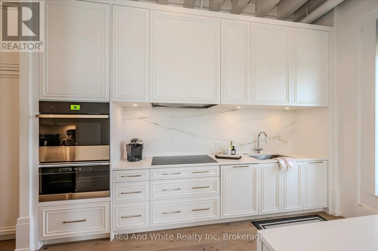 Cross Streets: Guelph Ave. South, on left before Queen Street Intersection. ** Directions: Queen Street to Guelph Ave. Welcome to Riverbank Lofts, a boutique historic stone conversion on the Speed River in the heart of Hespeler Village. This rare corner unit offers luxury with 12' ceilings, exposed beams, and oversized windows showcasing river and waterfall views. Featuring 2 bedrooms with private ensuites, a powder room, and a show-stopping 18' island kitchen with built-in appliances, servery, and pantry.High-end finishes include European white oak flooring, heated floors in baths and laundry, custom built-ins, automatic blinds, and designer lighting. One of only three units with a private river-view balcony and a 2-car garage. Enjoy amenities like a fitness centre, common lounges, bike storage, and direct access to trails and the river.Steps to shops, restaurants, and cafes, with easy access to Hwy 401-this is elevated loft living in one of Cambridge's most desirable locations. (id:27476)