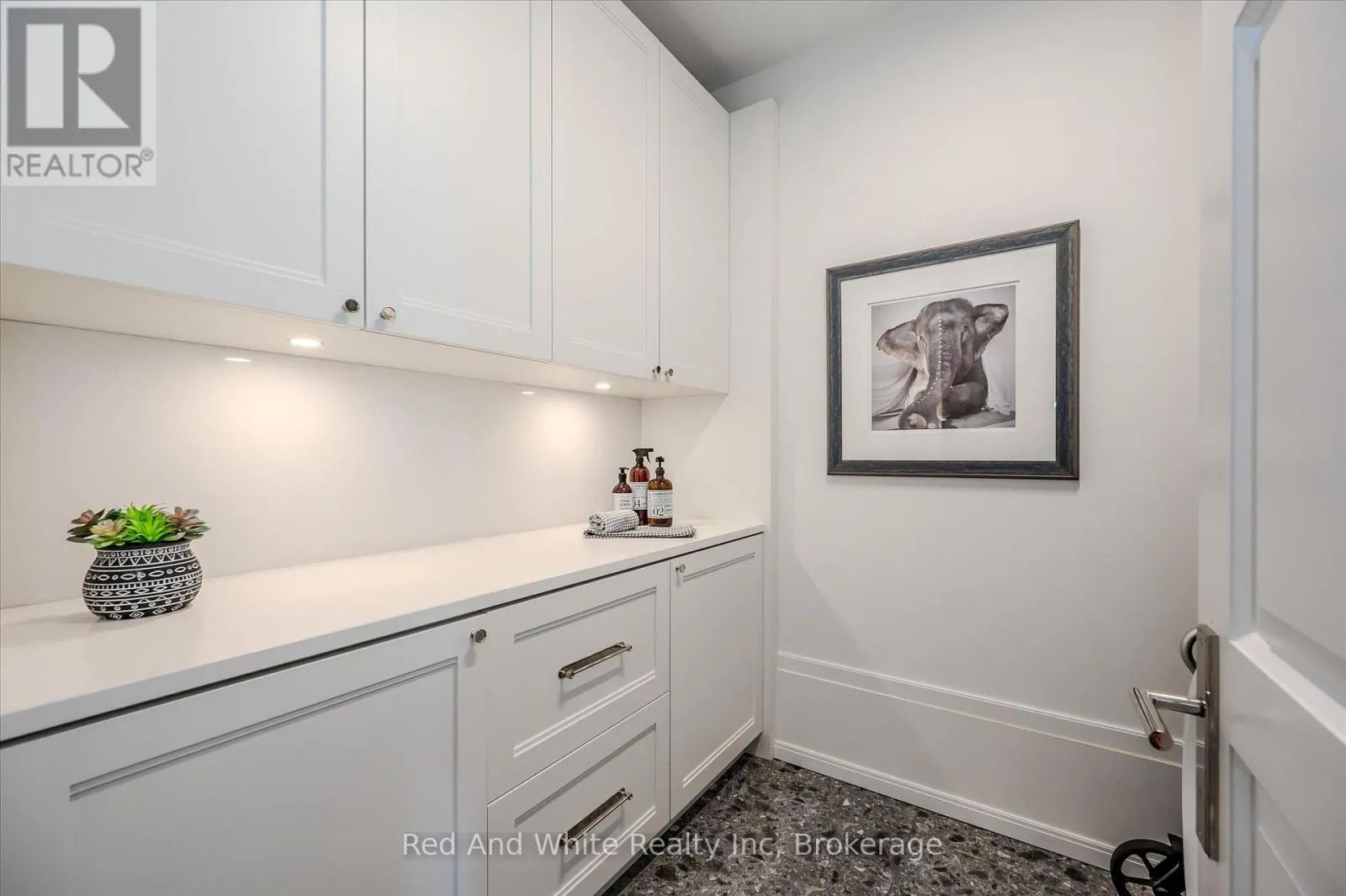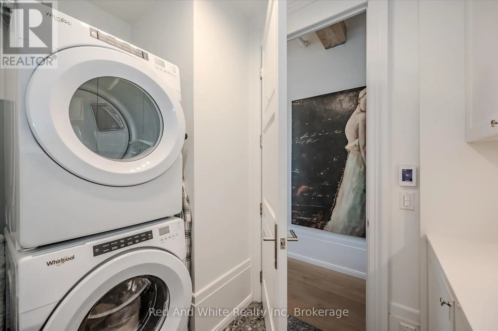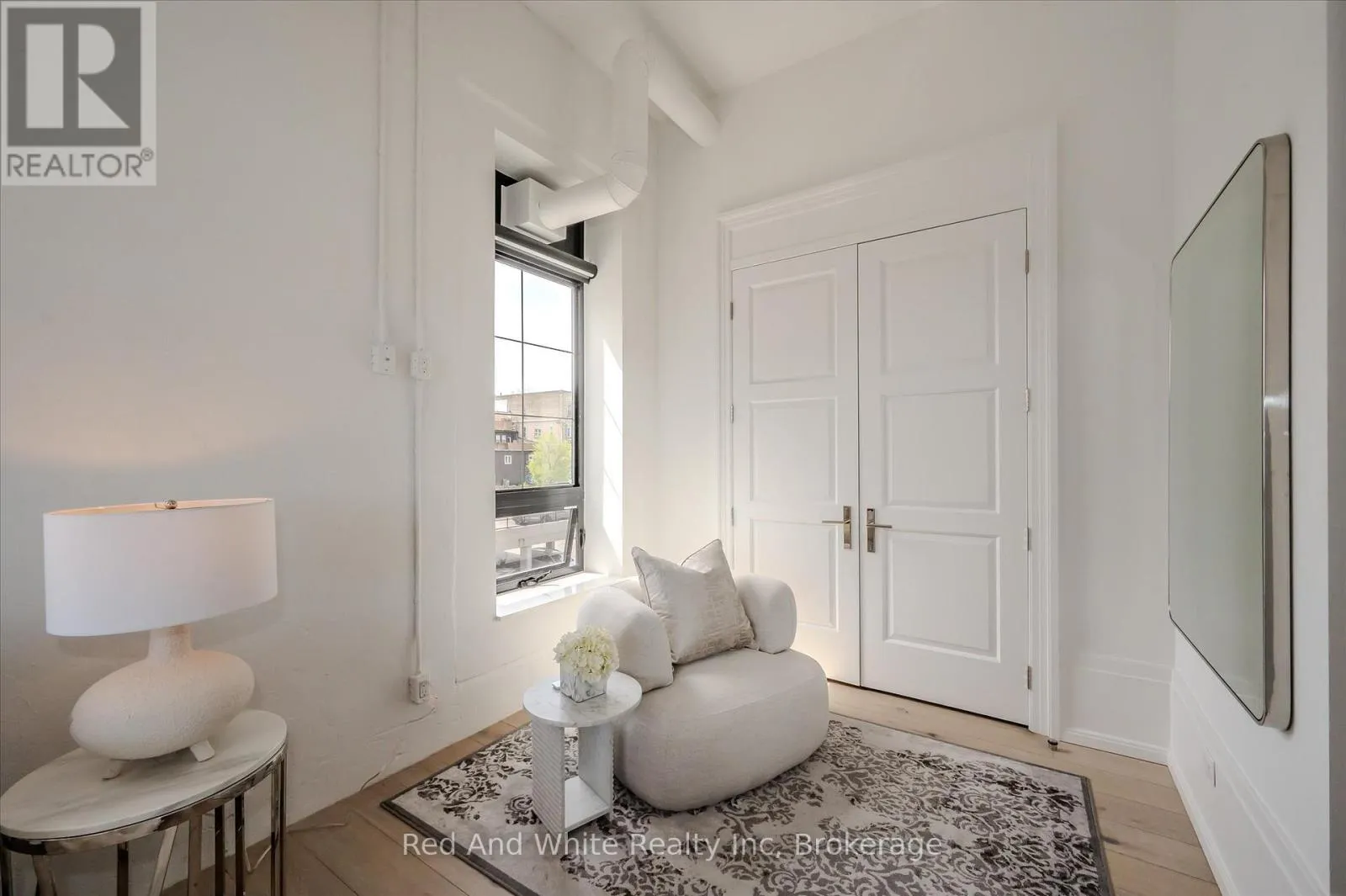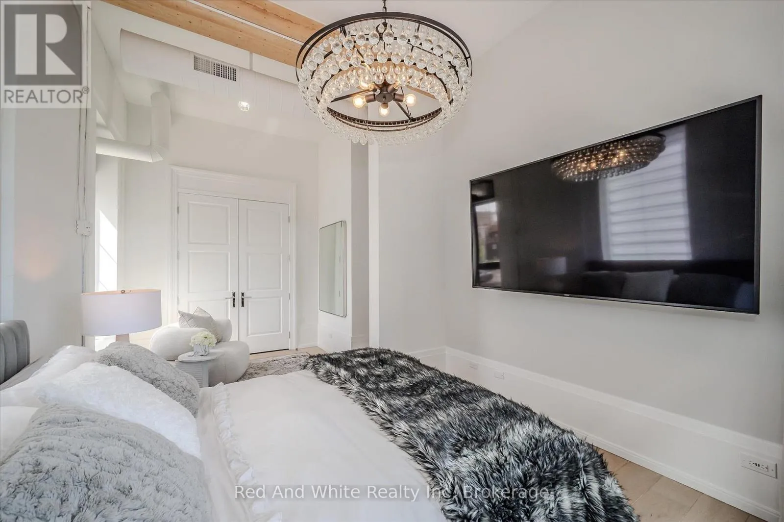 Cross Streets: Guelph Ave. South, on left before Queen Street Intersection. ** Directions: Queen Street to Guelph Ave. Welcome to Riverbank Lofts, a boutique historic stone conversion on the Speed River in the heart of Hespeler Village. This rare corner unit offers luxury with 12' ceilings, exposed beams, and oversized windows showcasing river and waterfall views. Featuring 2 bedrooms with private ensuites, a powder room, and a show-stopping 18' island kitchen with built-in appliances, servery, and pantry.High-end finishes include European white oak flooring, heated floors in baths and laundry, custom built-ins, automatic blinds, and designer lighting. One of only three units with a private river-view balcony and a 2-car garage. Enjoy amenities like a fitness centre, common lounges, bike storage, and direct access to trails and the river.Steps to shops, restaurants, and cafes, with easy access to Hwy 401-this is elevated loft living in one of Cambridge's most desirable locations. (id:27476)