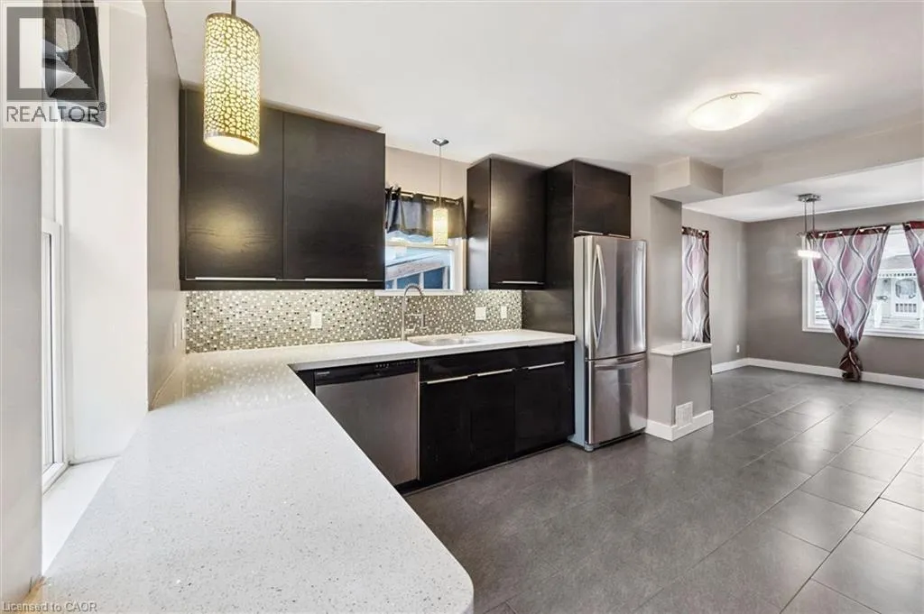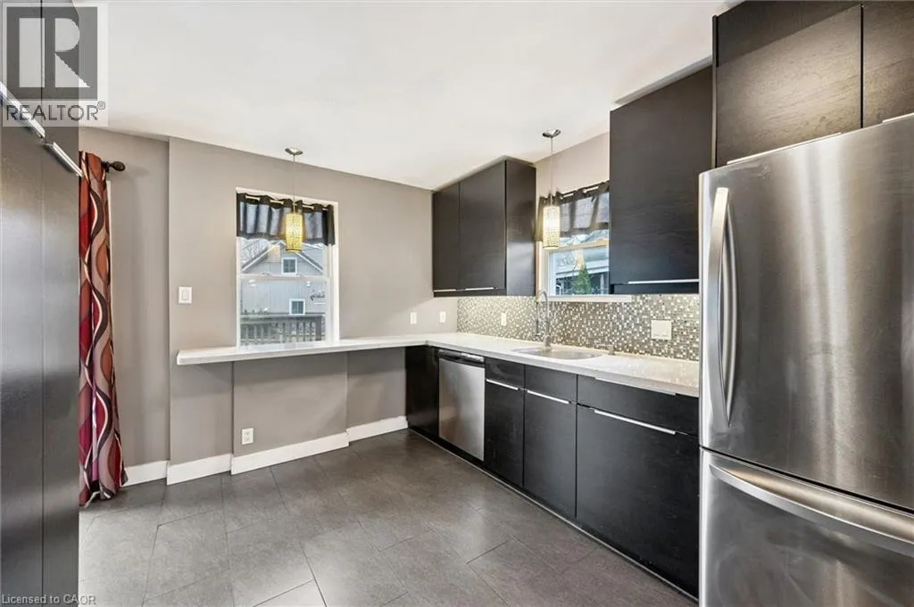 QUEEN STREET TO ADAM STREET TO BERGEY STREET Presenting 16 Bergey Street - a cute 2 storey house in storied Hespeler where simplicity and affordability is melded into one nice package. This home is ideal for first time owner-occupants looking for an accessory unit to help with the mortgage. It's also a good option for an avid investor looking to add a low maintenance asset to their portfolio. The front door enters into a hallway that divides the 2 separate units. Main floor and lower level of house is the primary unit (A). And that comes with a nicely fitted kitchen, open concept living, 2 bedrooms, 2 large den that could easily be converted to additional bedrooms, a powder room and a large 4pc bathroom with an ensuite laundry. The upper floor (Unit B) has a fair size bedroom, a large Den, eat-in kitchen and 4pc bathroom with a tub. Affordable. Steel roof, private yard and newer deck. Beats living in a constricted condo/apartment! (id:27476)