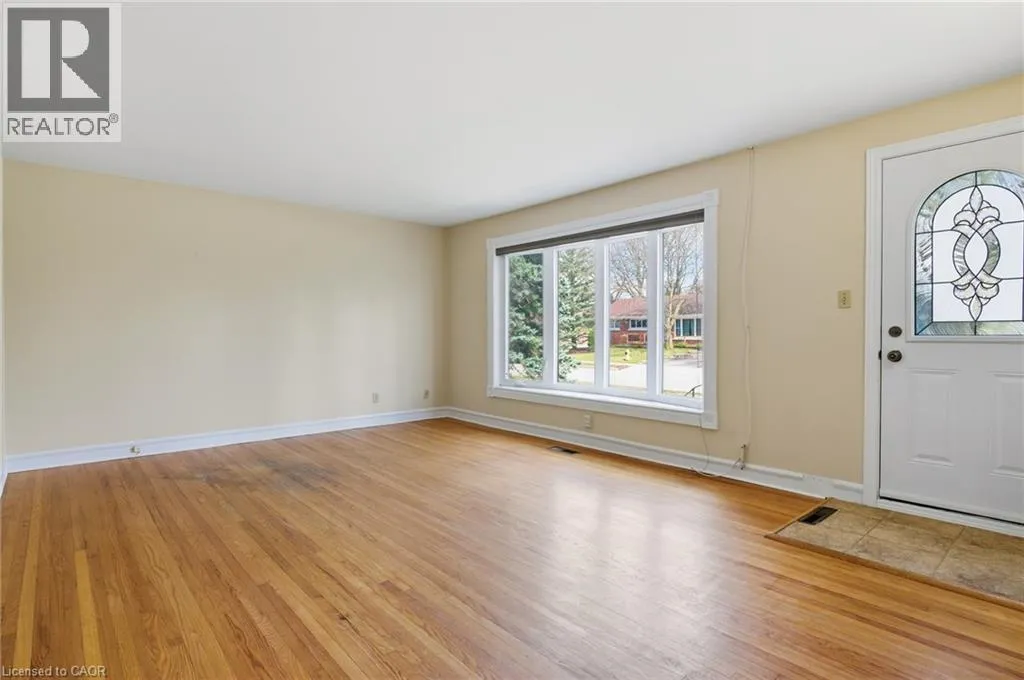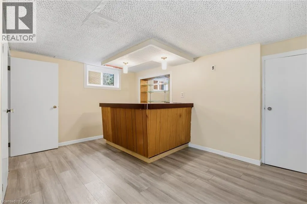 CHAMLBERS ST. S. TO BALLANTYNE AVE. TO LOWREY ST. S. Welcome to this charming 2-bedroom bungalow in sought-after East Galt. Featuring original hardwood floors and fresh paint throughout, this home blends character with thoughtful updates. The renovated kitchen is equipped with a gas range and offers convenient side-door accessâideal for those exploring in-law or secondary suite potential with the existing finished basement. Major updates include windows (2015), roof (2015), furnace and A/C (2022), water softener and on-demand water heater (2022), and an updated electrical panel with breakers. The fully finished basement expands your living space with a spacious rec room, stone fireplace feature, dedicated office, bar area, 2-piece bath, and laundry in the utility roomâperfect for work, relaxation, or entertaining. Outside, enjoy a private, landscaped lot with a flagstone patio, partial fencing, and a mature treed area. A detached garage with hydro adds even more versatility. Located within walking distance to downtown, schools, and parks, and just 10â15 minutes to Highway 401, this home offers excellent access for commuters to Hamilton, Brantford, and beyond. (id:27476)
