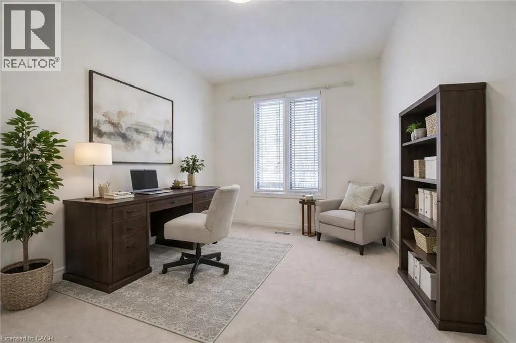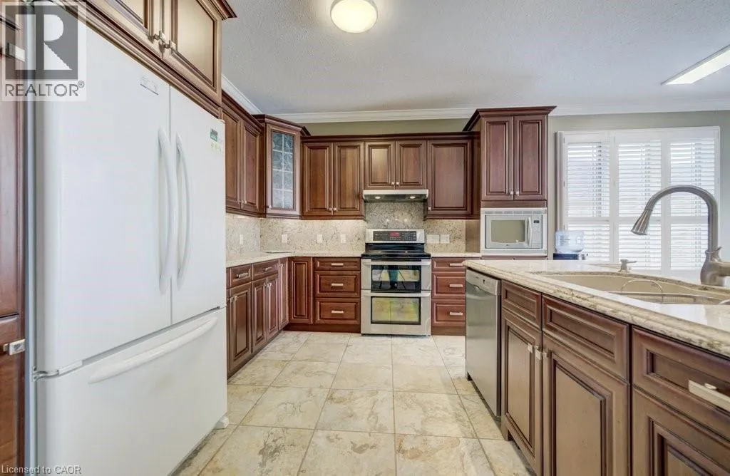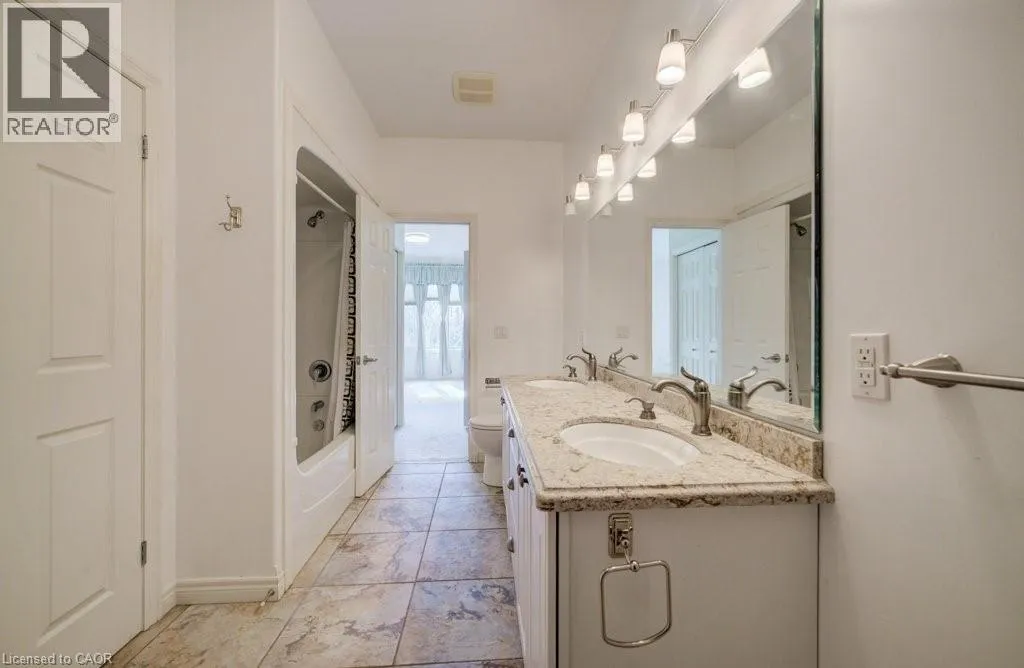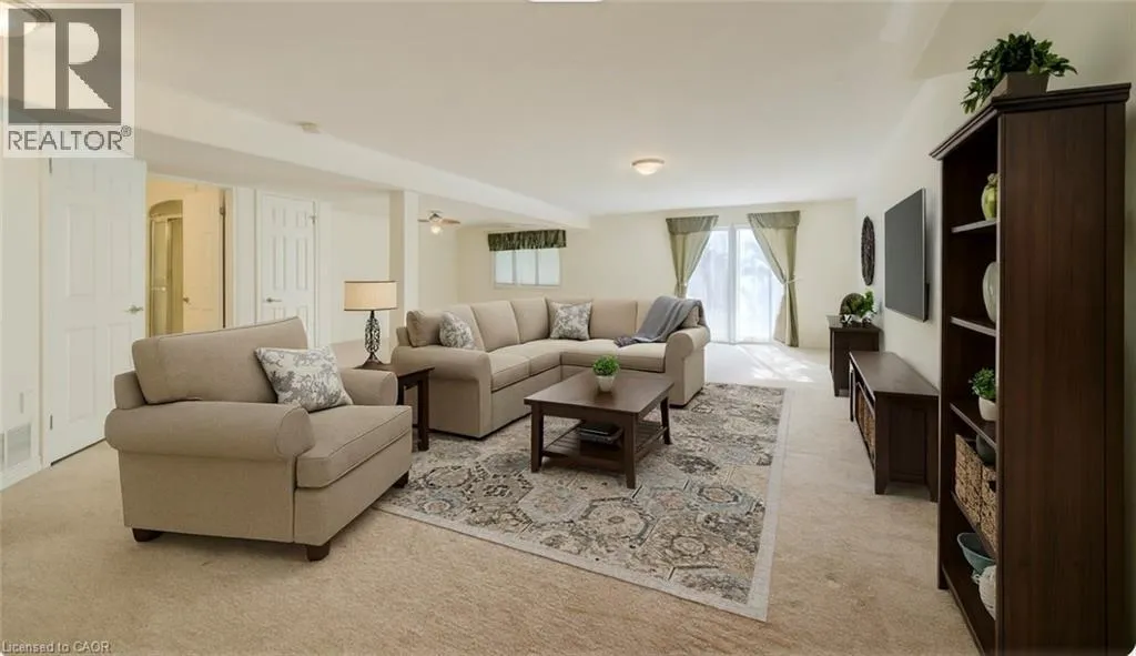 Bright and beautifully maintained end-unit condo offering rare features including a double car garage with a long driveway, and walk-out basement! The condo boasts 9' ceilings, hardwood in living and dining area, gas line for bbq on 10x16 deck, and oversized lower window in family room allowing for a possible 3rd bed. The updated kitchen showcases granite counters, a convenient breakfast bar with custom built-in desk with charging power, and all appliances included. The spacious primary bedroom features his & her closets with direct access to the updated main bathroom and main floor laundry for total convenience. A second bedroom provides the perfect space for guests, hobbies or office space. The open lower level includes a 3-piece bath, huge family room, a separate exercise/hobby room, utility room with great storage space, and a walk-out to a private patio overlooking some green space with mature treesâa perfect spot to relax and entertain outdoors. This desirable end unit offers exceptional privacy, modern updates, and functional design in a well-kept adult lifestyle community. Move-in ready and ideal for those looking for low-maintenance living without compromise! Some photos are virtually staged as noted. (id:27476)