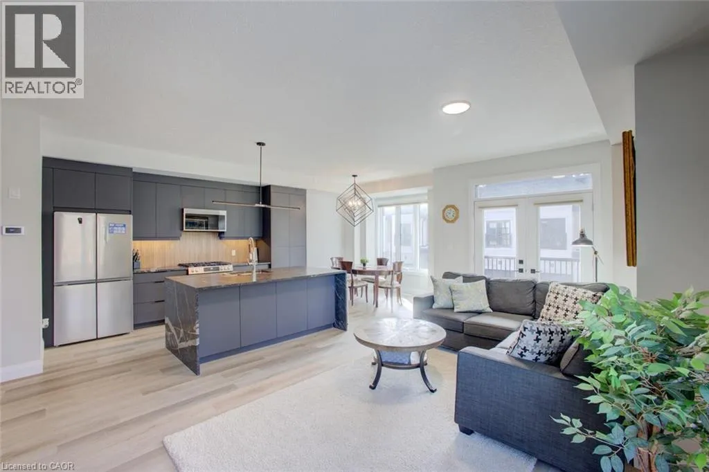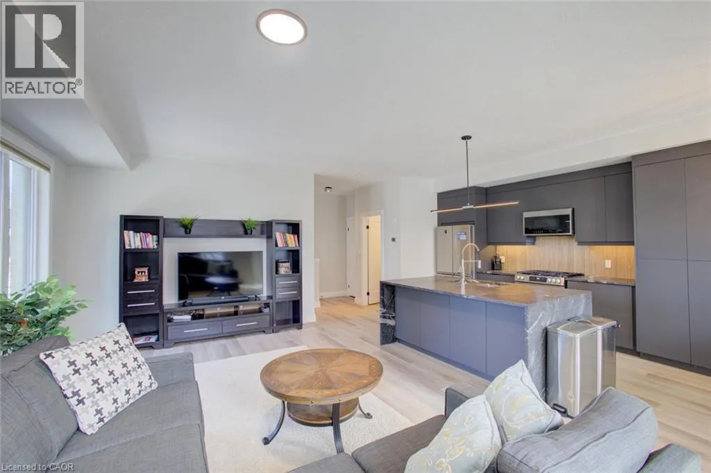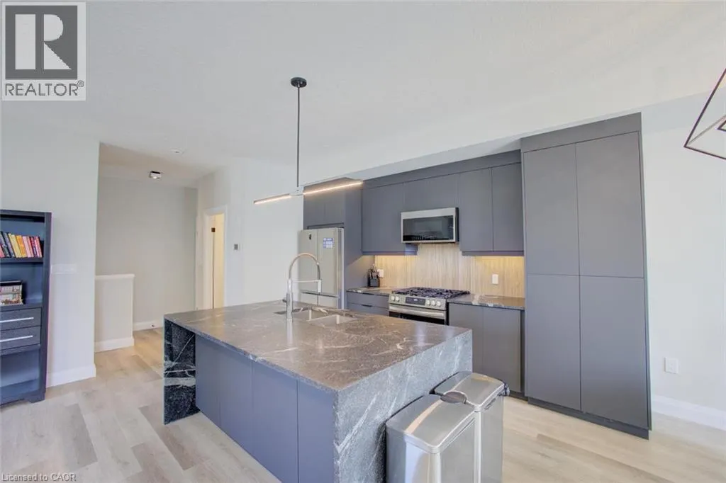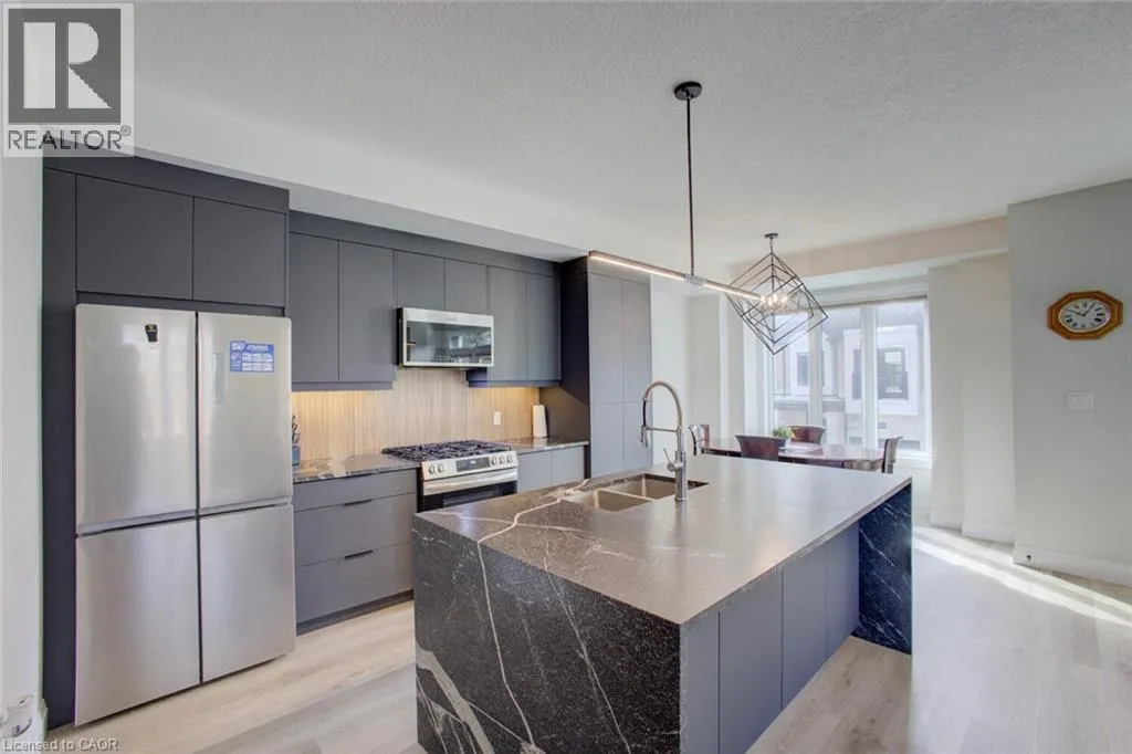 APPOINTMENT ONLY. This stylish modern home offers a bright open-concept main floor layout with a large Livingroom, dining, and chefsâ kitchen with oversized eat at island that overlooks the living space. The main floor features 9' main-floor ceilings, convenient laundry, and walkout to private balcony. The kitchen offers sleek flat-panel cabinetry with crown moulding, under-cabinet lighting, stone countertops, a striking black island with waterfall features, stainless steel appliances with gas range, microwave hood fan, stylish backsplash, soft-close drawer, and an added upgraded pantry (25). Upstairs, the home continues its clean, contemporary design with well-appointed bedrooms and updated bathrooms, including a primary bath with glass-enclosed marble-look shower, modern vanity with stone counters, and water-saving fixtures. Additional features include a second stylish bathroom, triple-glazed windows, ERV system, smart thermostat, 200-amp service, luxury vinyl and ceramic flooring throughout the entire home (carpet free). As an added bonus, youâll appreciate the bright main floor space that could be utilized as a family room, office, playroom, workout room, etc. Quality finishes, thoughtful upgrades, and a polished presentation, this home delivers exceptional value for buyers seeking modern living in a well-designed space. (id:27476)