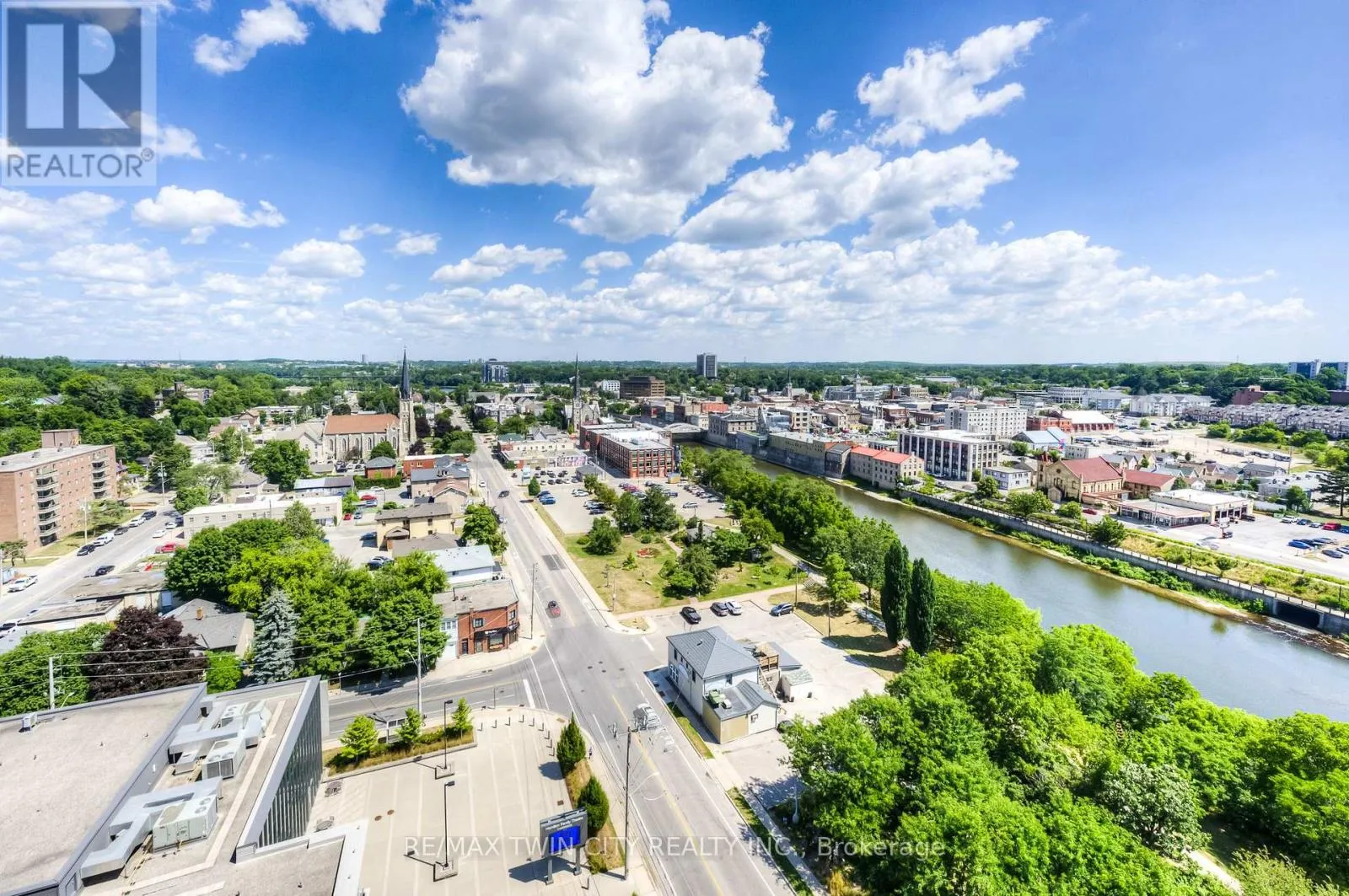 Cross Streets: St Andrews. ** Directions: Water St. S to Cedar St. to Grand Ave S. GASLIGHT DISTRICT! Cambridge's "must live" residence. This 2-bdrm/2 bathroom condo is available for occupancy immediately. Located in historic downtown Galt, Gaslight is home to residential, commercial, retail, art, dining, community, and culture. You will be able to live and work right where you live. Situated on the East side of the building, this unit has a SPECTACULAR VIEW of the Grand River, East Galt, the Grand River Valley, and a Southerly exposure through the wall-to-wall windows and from the extra-long balcony. This stunning open-concept unit features a modern kitchen with quartz counters and S/S fridge, stove, dishwasher and exhaust, in-suite laundry (washer & dryer included), and a full-privilege ensuite bath spacious bedroom features a large walk-in closet, two walk-outs to the balcony, one parking spot provided in the underground garage, complete with an electric car charger. Building amenities will include a lobby with ample seating space, a secure video-monitored entrance, a fitness room with a yoga/pilates studio, a games room, a party room with a kitchen and a large private dining area, and a library. There is an indoor lounge area and an outdoor terrace with a lounge area, overlooking Gaslight Square, and featuring BBQs and private workplace pods. EV car charger included! (id:27476)