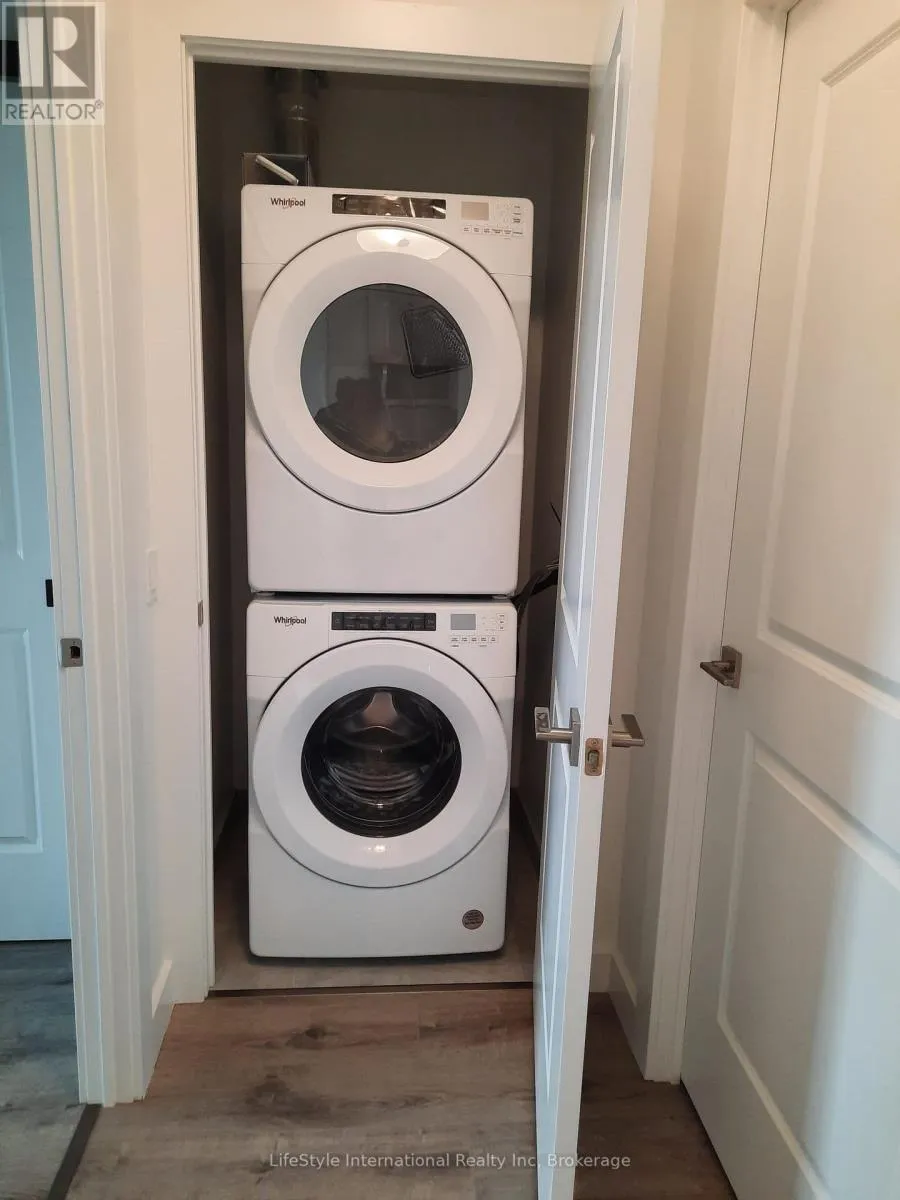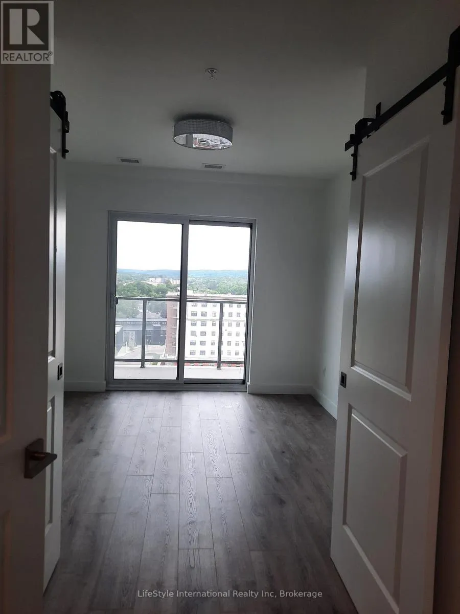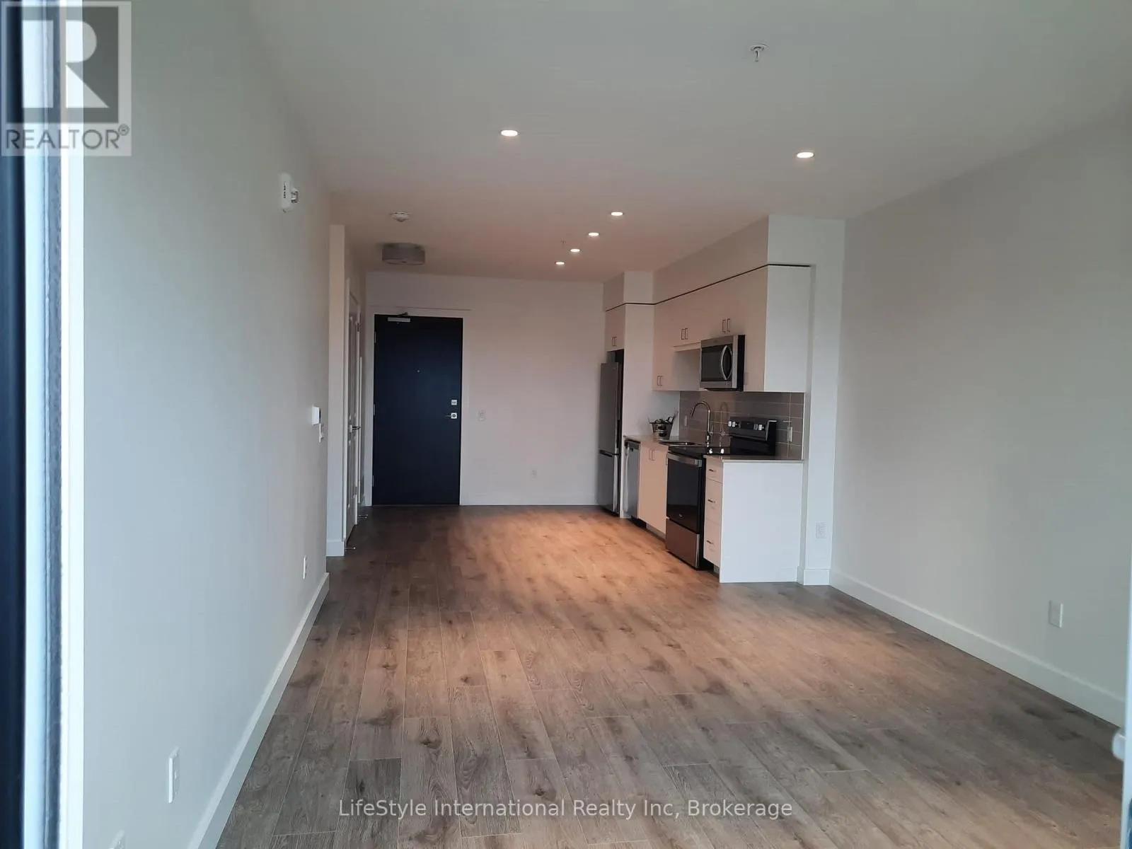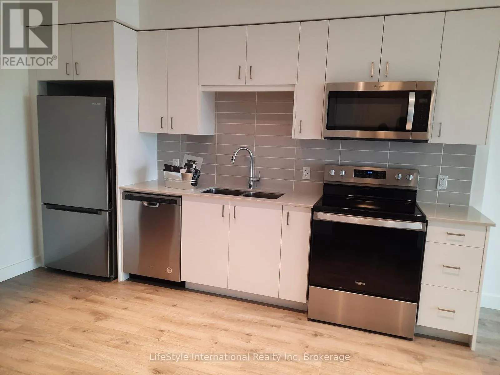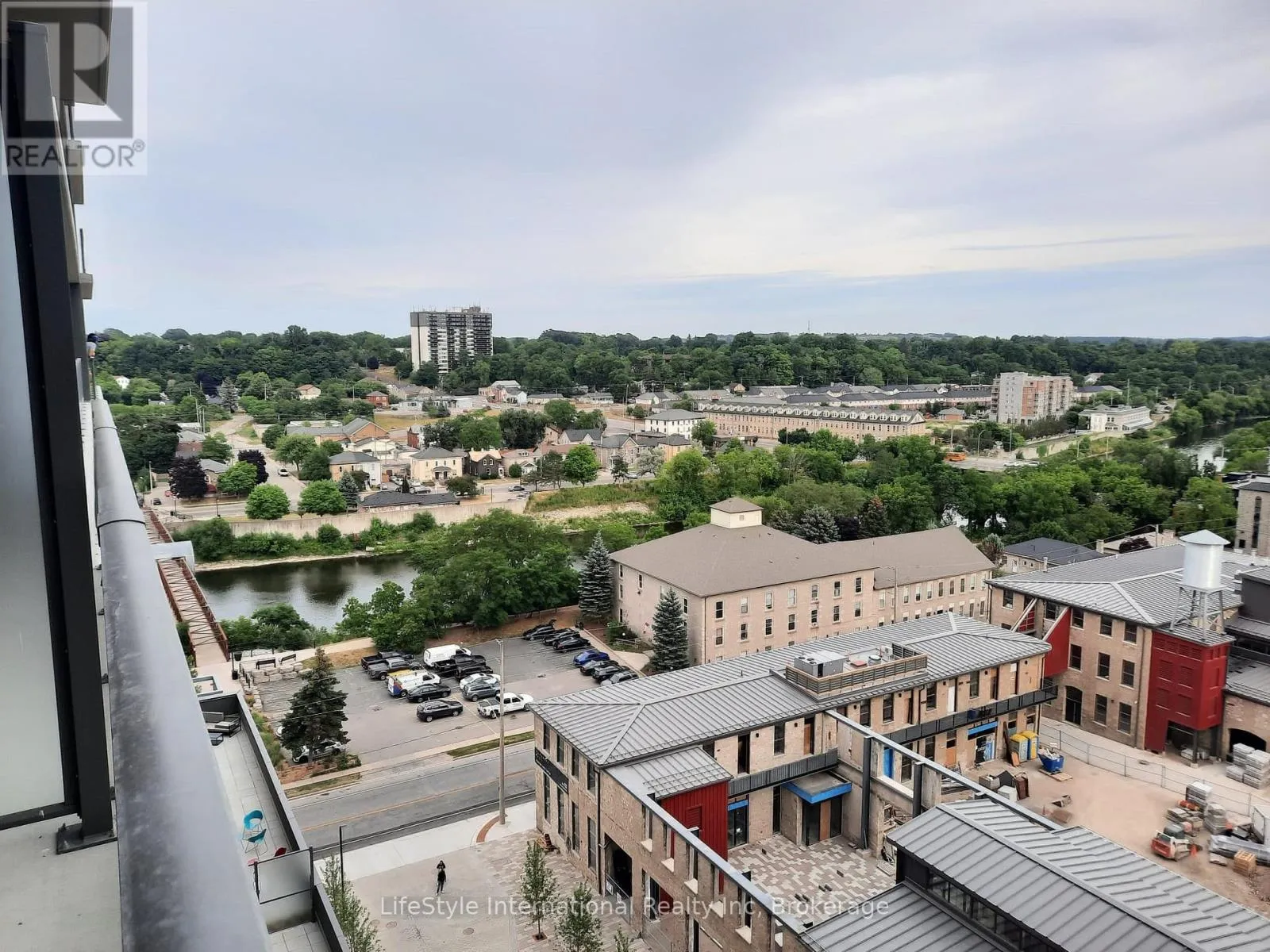 Cross Streets: Hwy 24 to Park Hill Rd W to Grand Ave. ** Directions: Hwy 24 to Park Hill Rd to Grand Ave. This one-bedroom, one-bathroom condominium offers an exceptional opportunity to experience modern urban living in the heart of downtown Galt, ideally located within the vibrant Gas Light District and just steps from an array of dining, shopping, and entertainment options. The suite features a thoughtfully designed open-concept layout with 9-foot ceilings, elegant quartz countertops, and high-quality finishes throughout, complemented by a contemporary kitchen with stainless steel appliances and the convenience of in-suite laundry. A private balcony extends the living space, providing a peaceful outdoor retreat. Residents also enjoy access to premium building amenities, including a secure monitored entrance, a welcoming lobby, a fully equipped yoga and fitness studio, and a comfortable resident lounge-making this an outstanding opportunity for sophisticated, low-maintenance living in one of Galt's most desirable communities. (id:27476)
