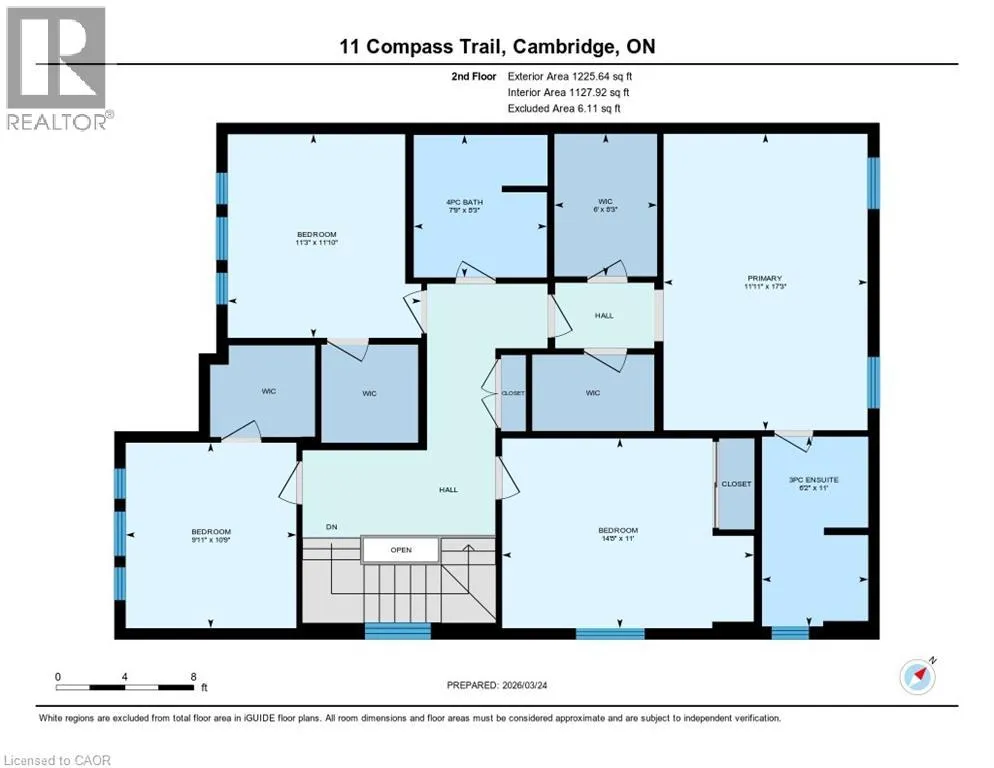 HESPELER RD - MAPLE GROVE RD - COMPASS TRAIL Welcome to 11 Compass Trail, a beautifully upgraded detached home offering exceptional interior finishes and a thoughtfully designed layout for modern living. The bright open-concept main floor features spacious living and dining areas, 9-foot ceilings, hardwood flooring, interior and exterior pot lights, and a convenient 2 piece bathroom. The upgraded chefâs kitchen is complemented by a walk-in pantry, ideal for everyday living and entertaining. Elegant wood stairs with iron railings lead to the second level, where youâll find four generously sized bedrooms and two well-appointed bathrooms with cultured marble counters. The primary bedroom retreat boasts a luxurious ensuite and multiple walk-in closets. Situated on a premium 36 x 108 ft lot, this home features a fully fenced backyard, double car garage, and parking for four vehicles. Enjoy a rare setting fronting onto protected green space with a flowing river stream, scenic views, nearby pond, nature trails, and parks, all while being ideally located in a prime Cambridge neighborhood close to major amenities and highways. A perfect blend of luxury, nature, and convenience. The home is freshly painted and ready to move in, book your showing today! (id:27476)