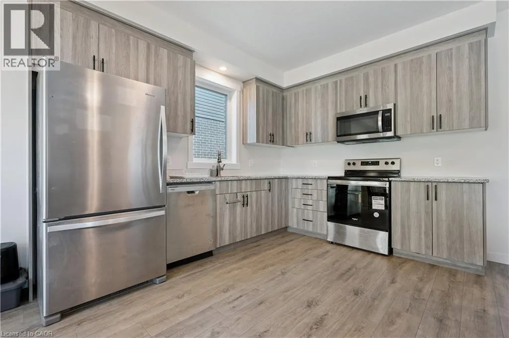 Blair Rd to Princess Street to Newman Dr Welcome to modern living at its finest in the SOUGHT-AFTER COMMUNITY of Westwood Village! Built in 2025 by Huron Creek Developments, this stunning 1793sqft 3-bedroom, 2.5-bathroom home offers an EXCEPTIONAL BLEND OF STYLE, SPACE, AND FUTURE POTENTIALâperfectly designed for todayâs lifestyle. From the moment you arrive, the charming covered front porch invites you into a BRIGHT AND WELCOMING FOYER that opens into a beautifully designed open-concept great room. Sunlight pours through expansive windows, creating a WARM AND AIRY AMBIANCE that flows seamlessly into the contemporary kitchenâcomplete with sleek granite countertops, stainless steel appliances, stylish grey cabinetry, a convenient pantry, and an over-the-range microwave. The adjoining dining area features sliding doors, OFFERING THE PERFECT OPPORTUNITY to create your dream outdoor deck and entertaining space. Upstairs, retreat to a SPACIOUS PRIMARY SUITE featuring a walk-in closet and a private 3-piece ensuite. Two additional generously sized bedrooms, a modern 4-piece family bathroom, and the convenience of upper-level laundry complete this thoughtfully designed second floor. The walkout basementâboasting over 833 sqft of UNSPOILED SPACEâis a rare and valuable bonus, offering endless possibilities to customize to your needs, whether it be a future in-law suite, recreation area, or additional living quarters, all enhanced by LARGER WINDOWS AND DIRECT BACKYARD ACCESS. Set within the scenic and family-friendly Westwood Village Preserve community, youâre ideally located between Kitchener, Blair, and Cambridgeâjust minutes to Conestoga College, Highway 401, and a full range of shopping and everyday amenities. Surrounded by top-rated schools, parks, walking trails, and the natural beauty of the Grand River, this quiet crescent location offers the perfect balance of convenience and lifestyle. A truly exceptional opportunity to own a nearly new home in a thriving communityâthis is one you wonât want to miss! (id:27476)