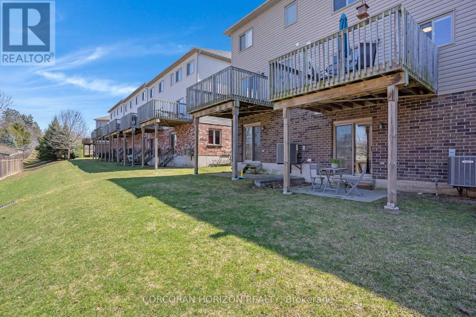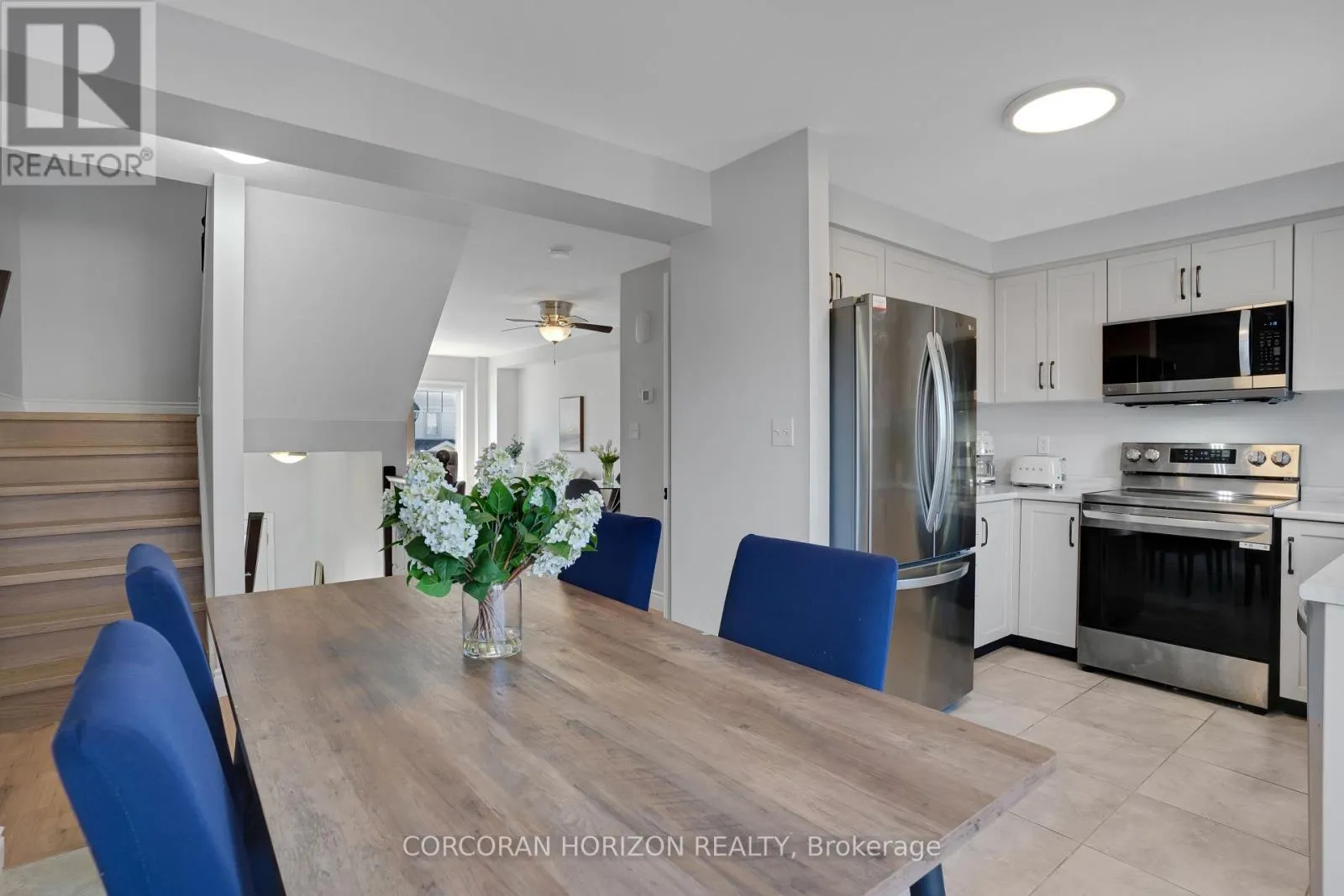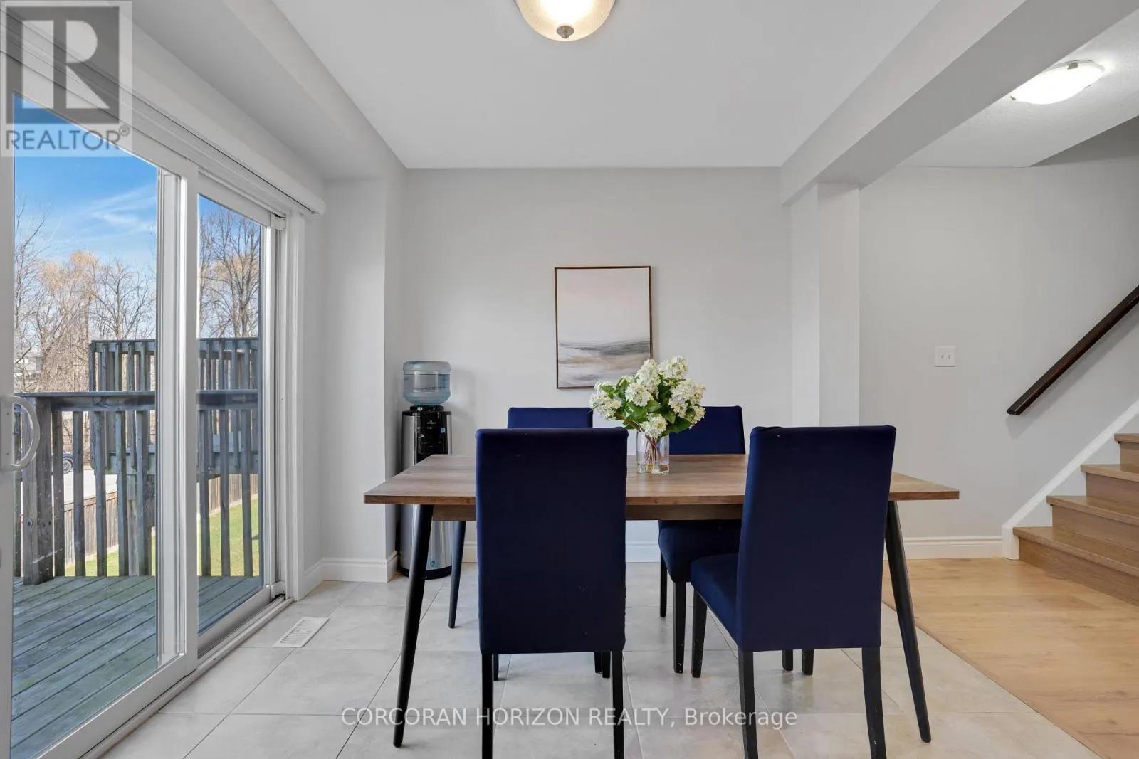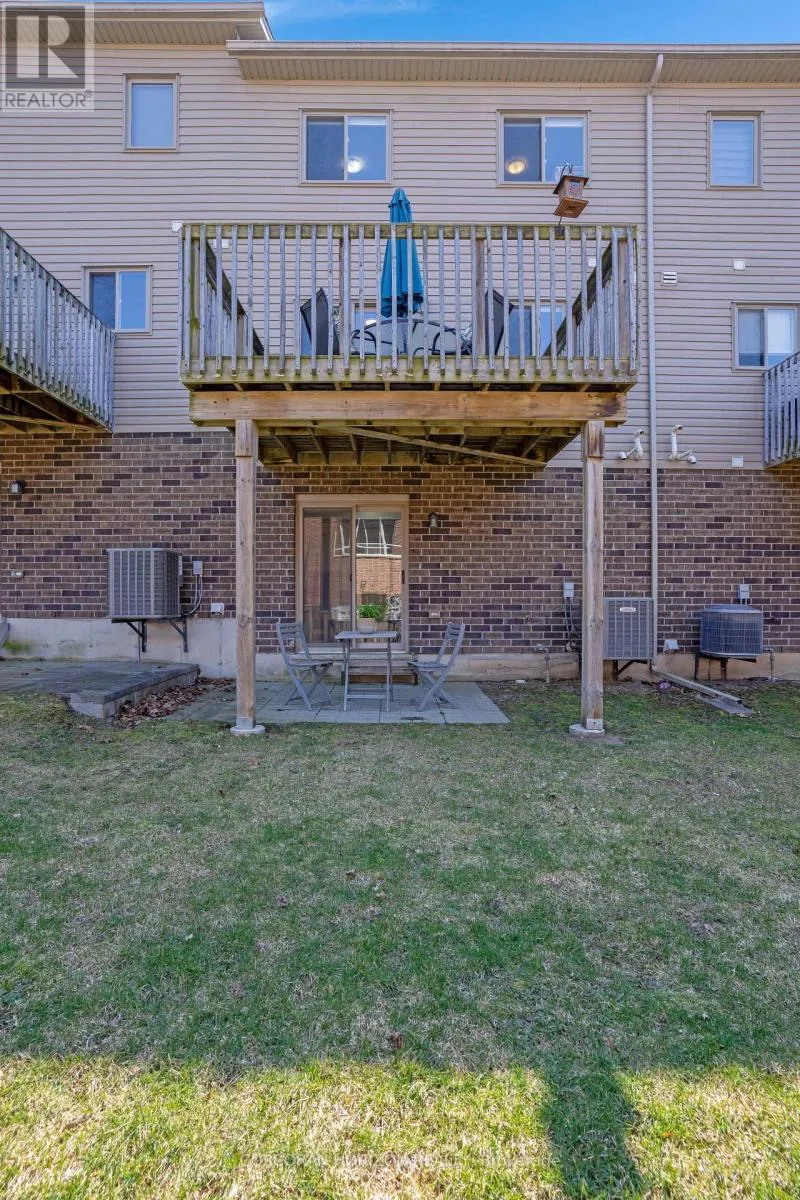 Cross Streets: Garden St. ** Directions: Garden St to Lawrence St. This beautifully upgraded and stylish 3-bedroom, 2-bathroom townhome offers a private garage, driveway parking, and plenty of visitor parking. This home is ideal for both everyday living and entertaining. As you step inside, the first thing you'll notice is the stunning upgraded wood stairs and elegant flooring that flow throughout the home. The kitchen is filled with natural light and offers plenty of space for an eat-in table-perfect for family meals or hosting guests. Step right onto your upper deck, the perfect place for your morning coffee, soaking up the sun, or enjoying outdoor dining. This main level also features a spacious living area with room for a formal dining setup, if desired. The flexible layout allows you to truly customize the space to suit your needs. Upstairs, you'll find three generously sized bedrooms. The primary suite includes a large walk-in closet, offering plenty of storage. The lower level is fully finished, providing an expansive bonus space perfect for a family room, home office, or recreation area. Sliding doors allow in tons of natural sunlight and lead out to the backyard patio and outdoor space-ideal for giving kids or pets room to play. This family-friendly townhouse complex includes a children's play area, making it a great option for growing families. Located just minutes from schools, parks, shopping, and dining, you can enjoy walking to local favorites like the Wavemaker Brewery or exploring the local farmers market in the summer. With easy access to Highway 401 and everything you need close by, this home offers the perfect combination of location and lifestyle. Don't miss this opportunity to make it yours! (id:27476)