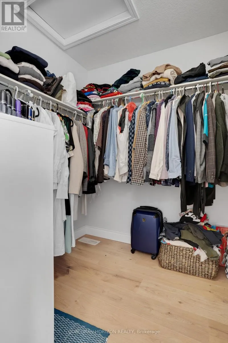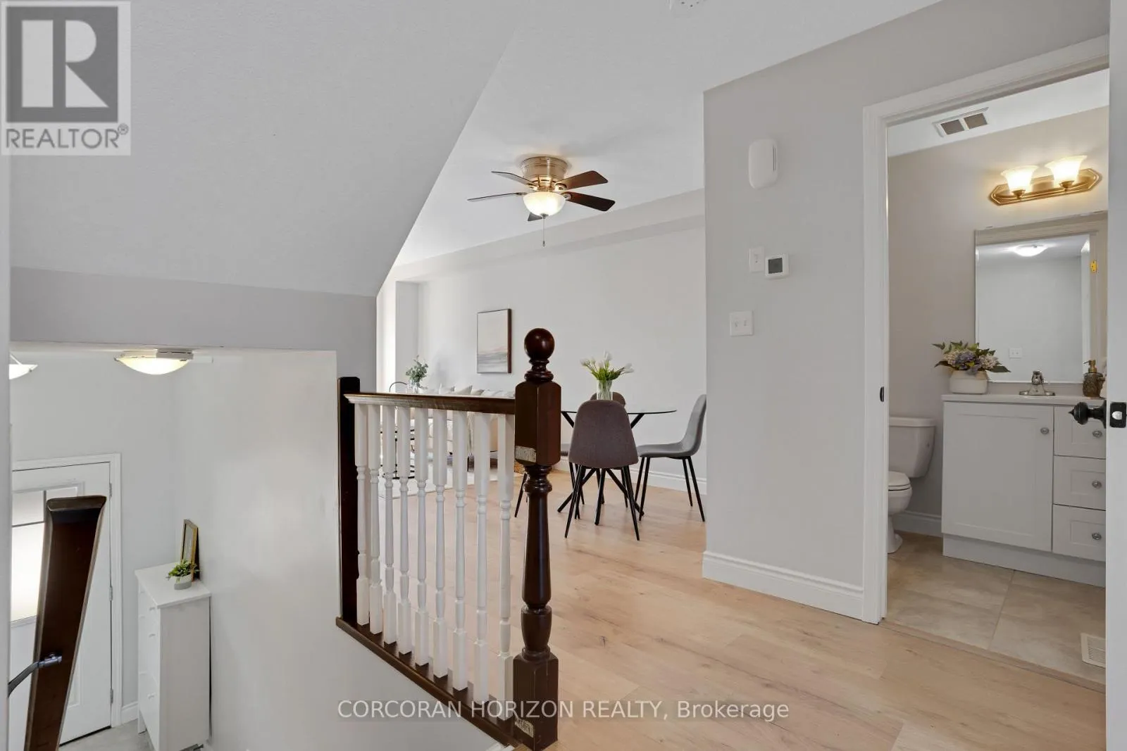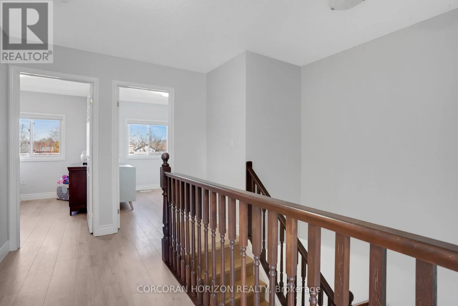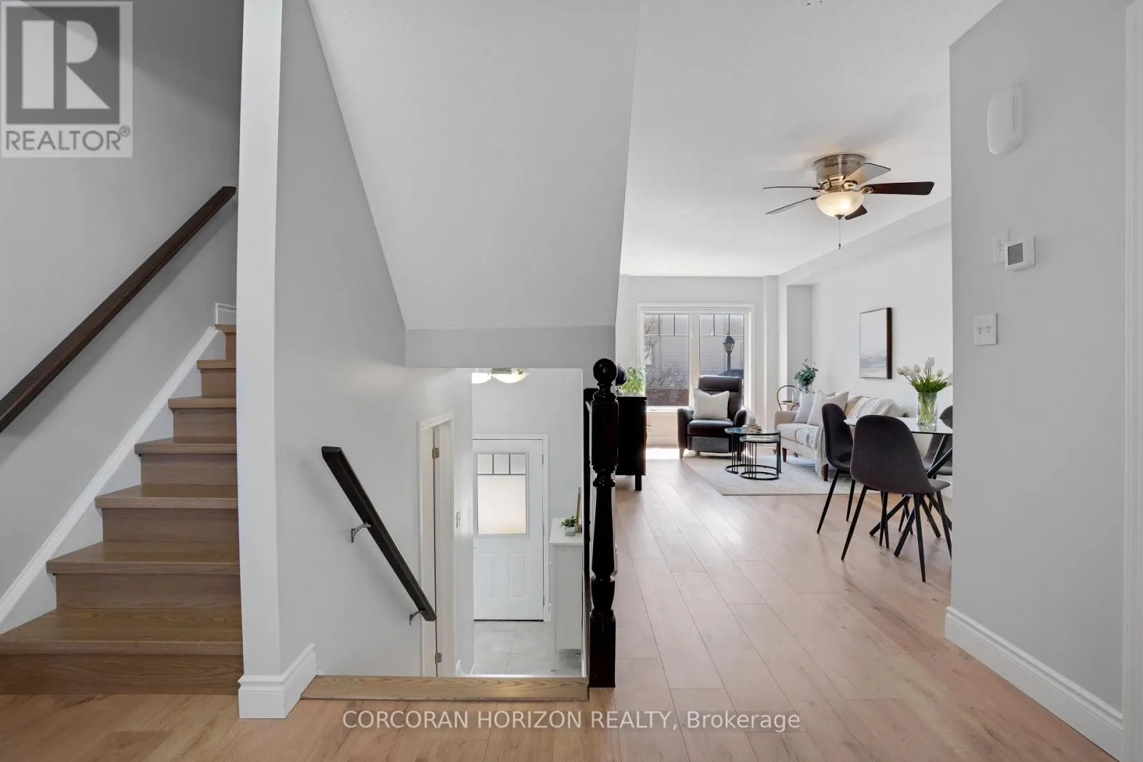 Cross Streets: Garden St. ** Directions: Garden St to Lawrence St. This beautifully upgraded and stylish 3-bedroom, 2-bathroom townhome offers a private garage, driveway parking, and plenty of visitor parking. This home is ideal for both everyday living and entertaining. As you step inside, the first thing you'll notice is the stunning upgraded wood stairs and elegant flooring that flow throughout the home. The kitchen is filled with natural light and offers plenty of space for an eat-in table-perfect for family meals or hosting guests. Step right onto your upper deck, the perfect place for your morning coffee, soaking up the sun, or enjoying outdoor dining. This main level also features a spacious living area with room for a formal dining setup, if desired. The flexible layout allows you to truly customize the space to suit your needs. Upstairs, you'll find three generously sized bedrooms. The primary suite includes a large walk-in closet, offering plenty of storage. The lower level is fully finished, providing an expansive bonus space perfect for a family room, home office, or recreation area. Sliding doors allow in tons of natural sunlight and lead out to the backyard patio and outdoor space-ideal for giving kids or pets room to play. This family-friendly townhouse complex includes a children's play area, making it a great option for growing families. Located just minutes from schools, parks, shopping, and dining, you can enjoy walking to local favorites like the Wavemaker Brewery or exploring the local farmers market in the summer. With easy access to Highway 401 and everything you need close by, this home offers the perfect combination of location and lifestyle. Don't miss this opportunity to make it yours! (id:27476)