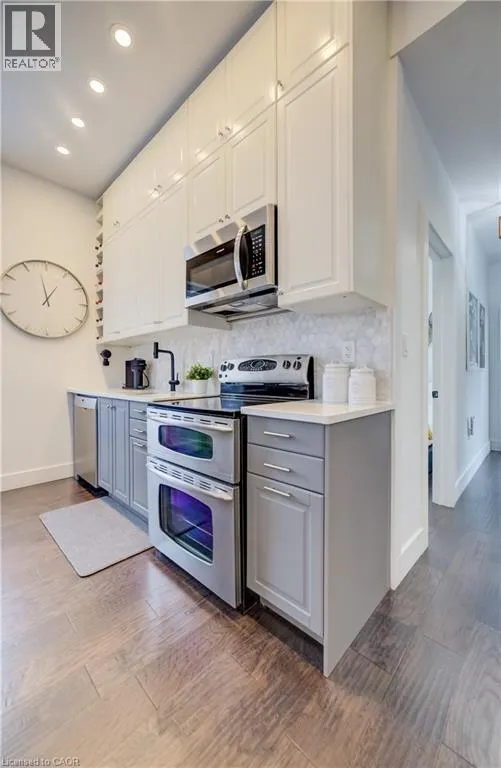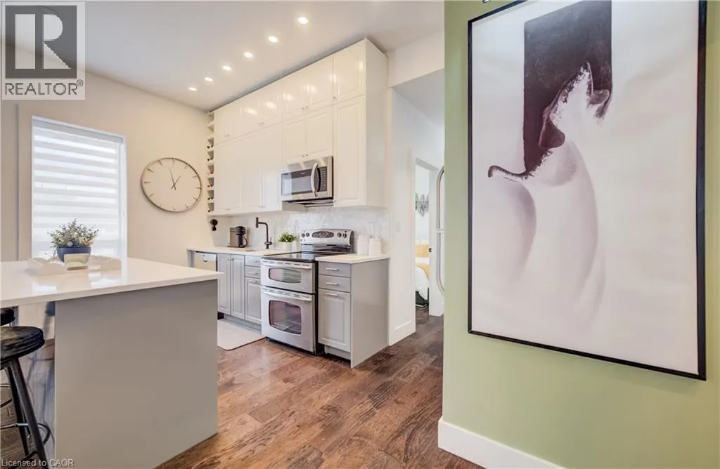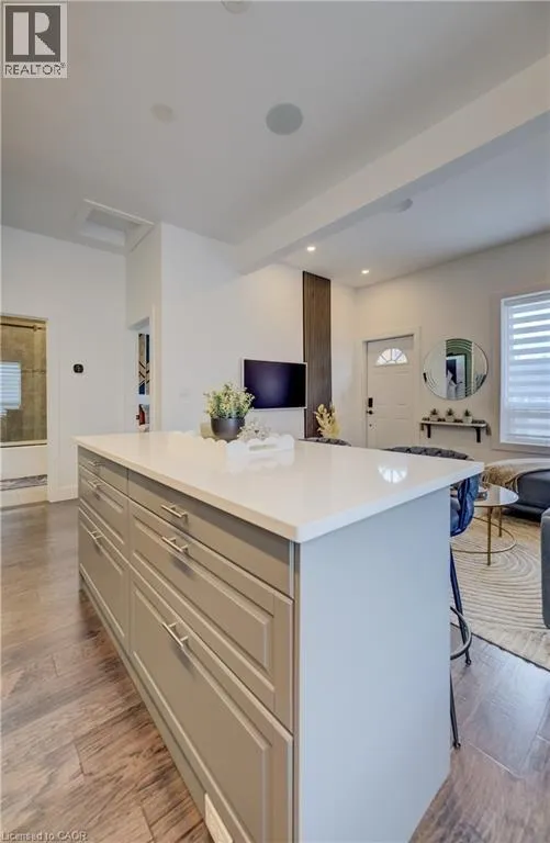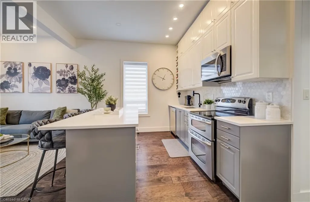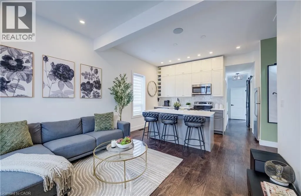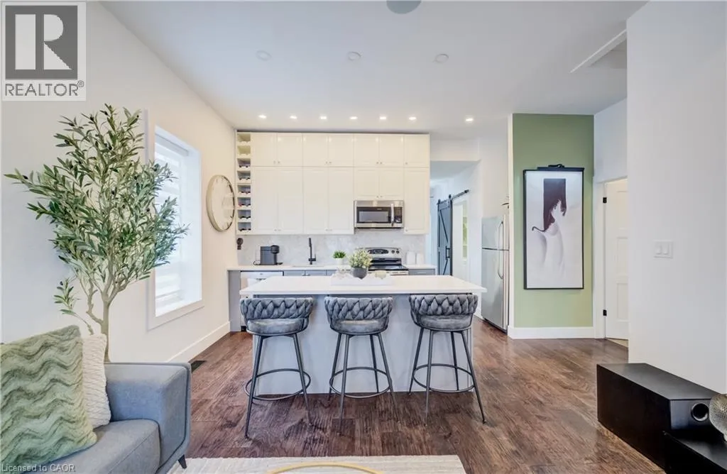 Water Street to Cedar Street Perched in the heart of Old Galt's historic Gaslight District and an easy stroll from the diverse amenities of downtown is this uniquely chic semi-detached bungalow. With the original home dating from the 19th century, here's your opportunity to settle into your own piece of Waterloo Region history - all in a beautifully updated two-bedroom package with more than a few modern tricks up its sleeve! 19 Cedar Street has been custom-fit just this past year with state-of-the-art smart home systems (including an indoor/outdoor voice controlled sound system designed with the audiophile in mind, a Blink doorbell system, smart locks, and more), while boasting stylish finishes that wouldn't look out of place in the newest of luxury condos. Why pay condo fees, when an urban lifestyle has never looked better right here? From sleek quartz counters and abundant custom cabinetry in the kitchen to a trendy hex tile backsplash, and from soaring 10-foot ceilings throughout the main floor to the gracefully finished main four-piece bathroom with convenient stacked laundry inside, the appeal instantly generated by this home is evident wherever you look. Plus, way more space than your average balcony could be all yours with the fully fenced rear yard, complete with deck and storage shed - a great venue for entertaining friends and family with summer now around the corner. More versatility is on hand in the dry and cozy basement, currently fitted out as a barber's studio with additional entertaining space set up to the side. Private parking can be found at the side with direct gate access to the back yard, with loads more free weekend public parking available just across the street. This distinctive home won't be available for long - schedule a viewing today to see it for yourself! (id:27476)