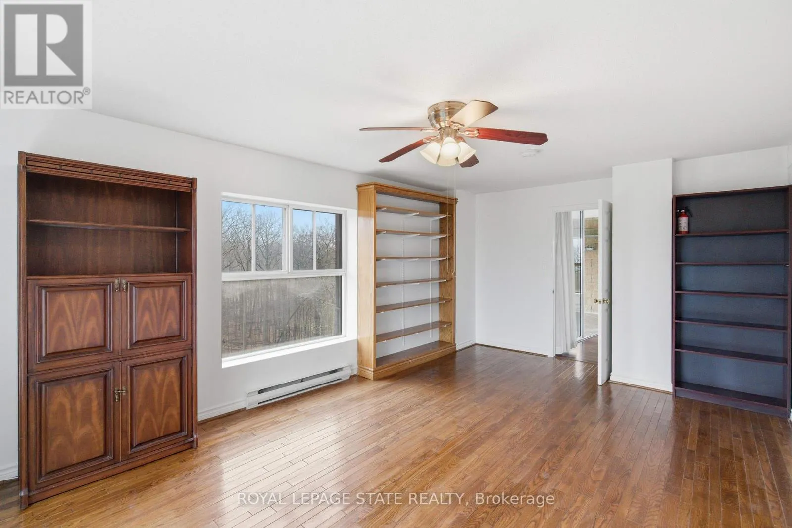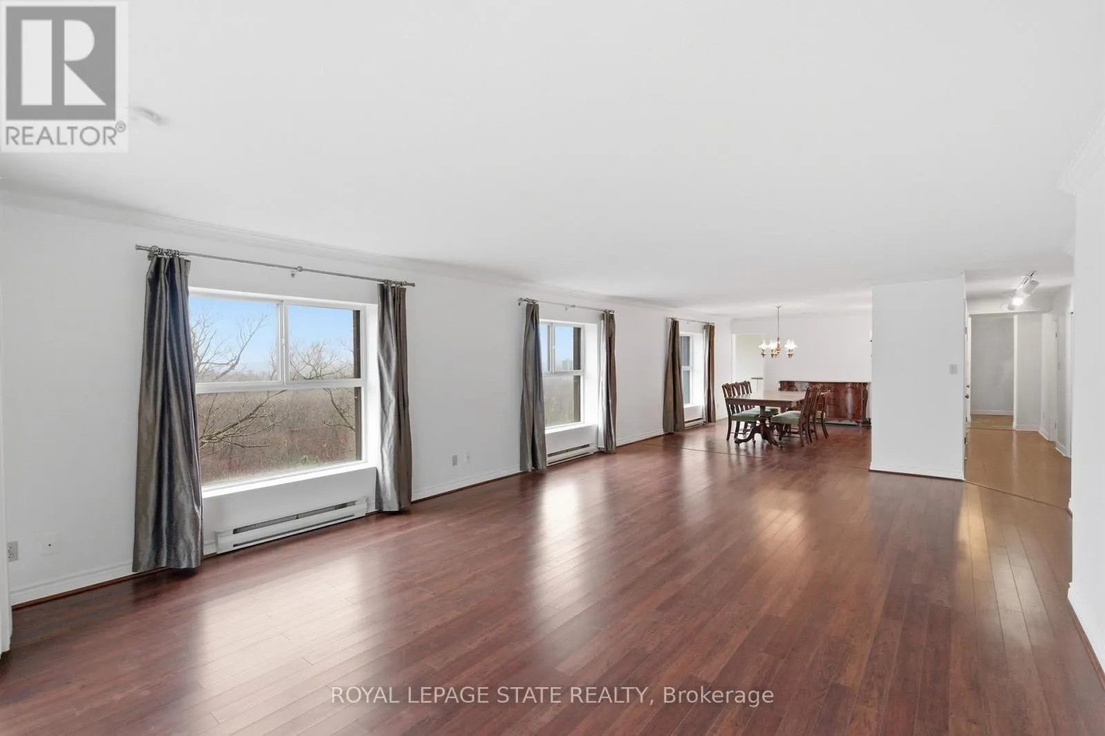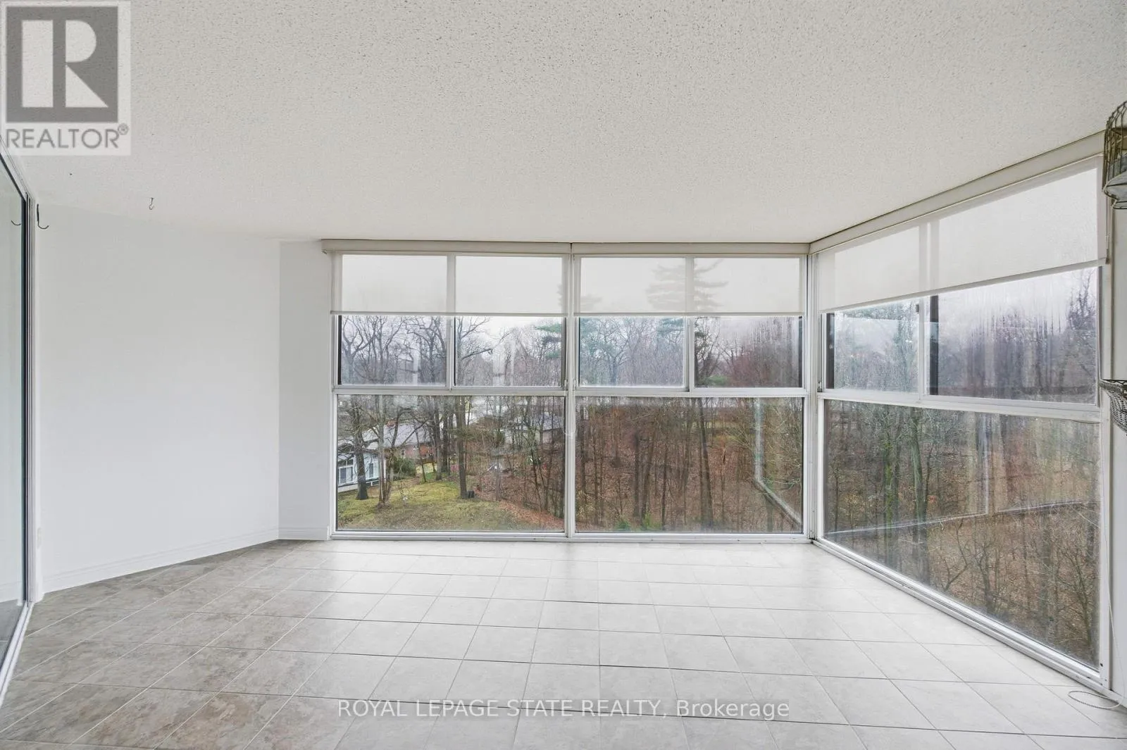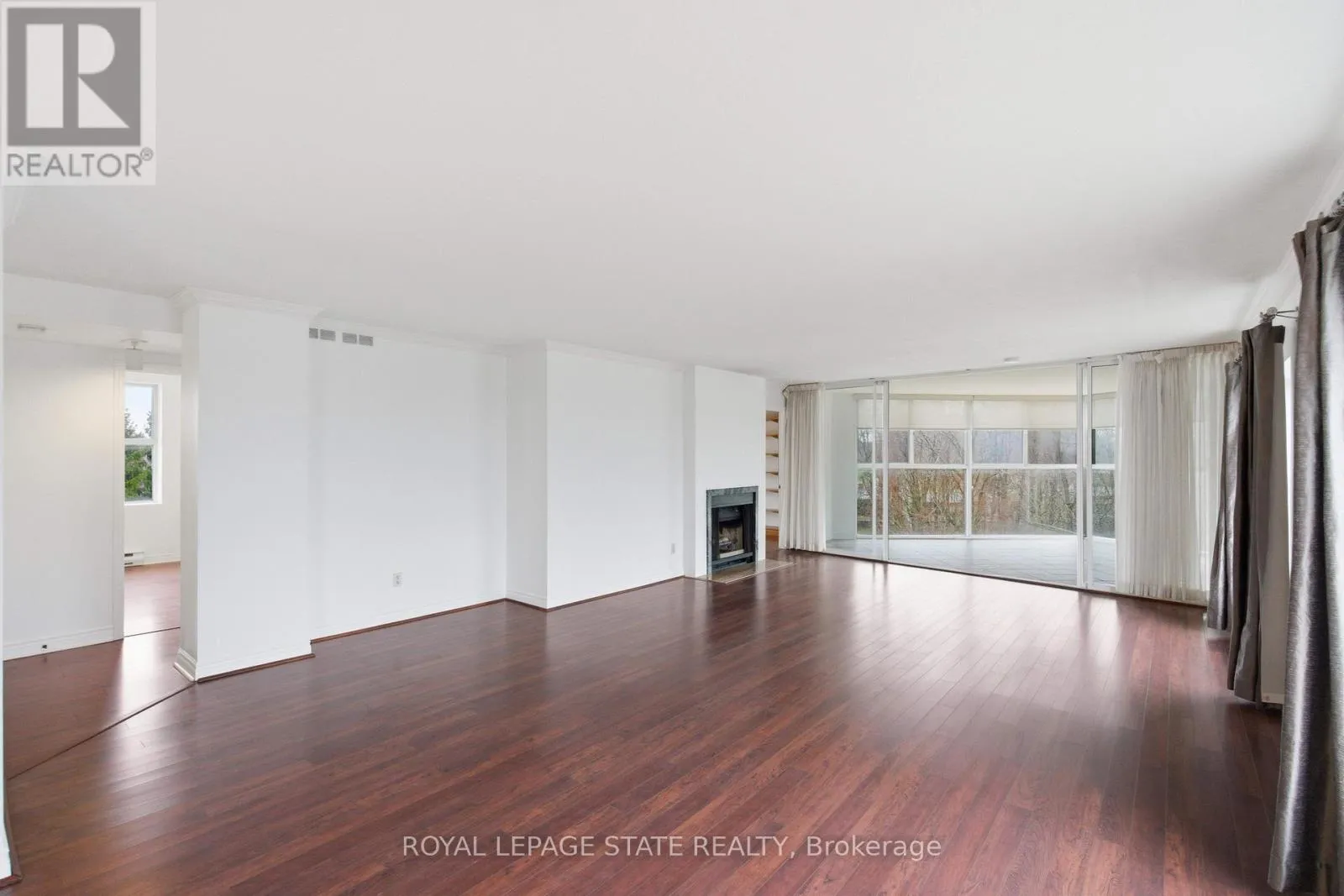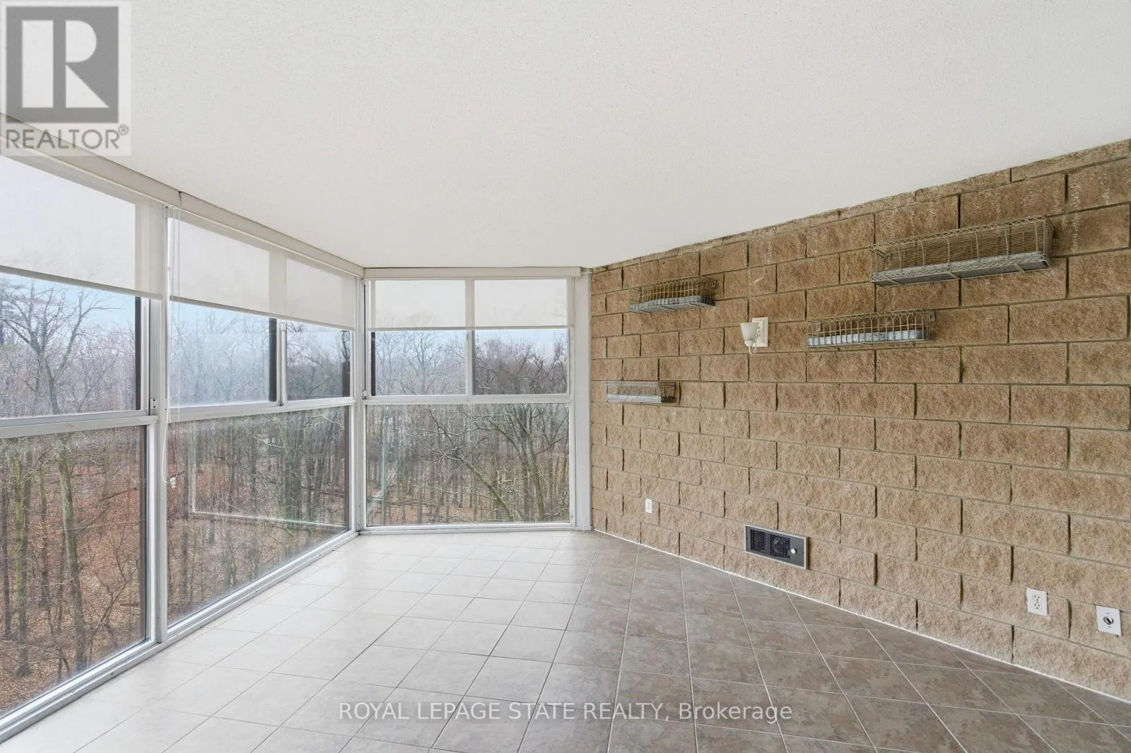 Cross Streets: Gladstone Avenue. ** Directions: From St. Andrews/Cedar, W on Cedar St, N on Berkley St, located at the end of Berkley St on the left hand side. Welcome to The Highlands by the Park; 20 Berkley Road. Nestled atop a hill at the end of a quiet cul-de-sac in historic West Galt, this prestigious condominium offers tranquility, privacy, and sweeping views of nature and the city skyline. Overlooking a majestic woodlot, Victoria Park and beyond, this building is one of Cambridge's hidden gems. This spacious 2,418 sq ft, carpet-free unit offers a rare combination of size, layout, and natural light. With 3 generously sized bedrooms, 2 full bathrooms, and a thoughtfully designed floor plan, it's ideal for those seeking comfort and functionality. Step into an impressive foyer with mirrored walls and a large closet before entering the bright eat-in kitchen, complete with ceramic tile, crisp white cabinetry, built-in range top, track lighting and a cozy breakfast nook overlooking lush greenery. The kitchen opens into a formal dining room with laminate flooring and elegant wall sconces; perfect for entertaining. The adjacent oversized living room features a wood-burning fireplace (sold as-is) and leads to a bright all-season solarium with floor-to-ceiling windows, ideal as a den, office, or creative space. Down the hallway are three spacious bedrooms, including a large primary suite with two windows, an expansive walk-in closet, and a 5-piece ensuite. A second 4-piece guest bath serves the remaining bedrooms. The in-suite laundry is tucked off the main hallway. Recent updates include new toilet in guest bath (2026) & fresh paint throughout (2026). Building amenities include a rooftop terrace with panoramic views, seating and barbecue, a party room with full kitchen and lounge, meeting room, exercise room, and well-maintained common spaces. Includes one underground parking spot with tandem storage locker. Don't miss this rare opportunity to live in a peaceful, elevated community surrounded by nature, minutes from West Galt. (id:27476)