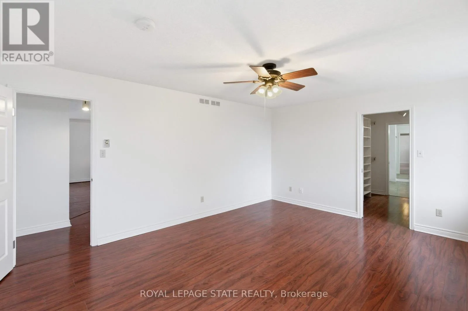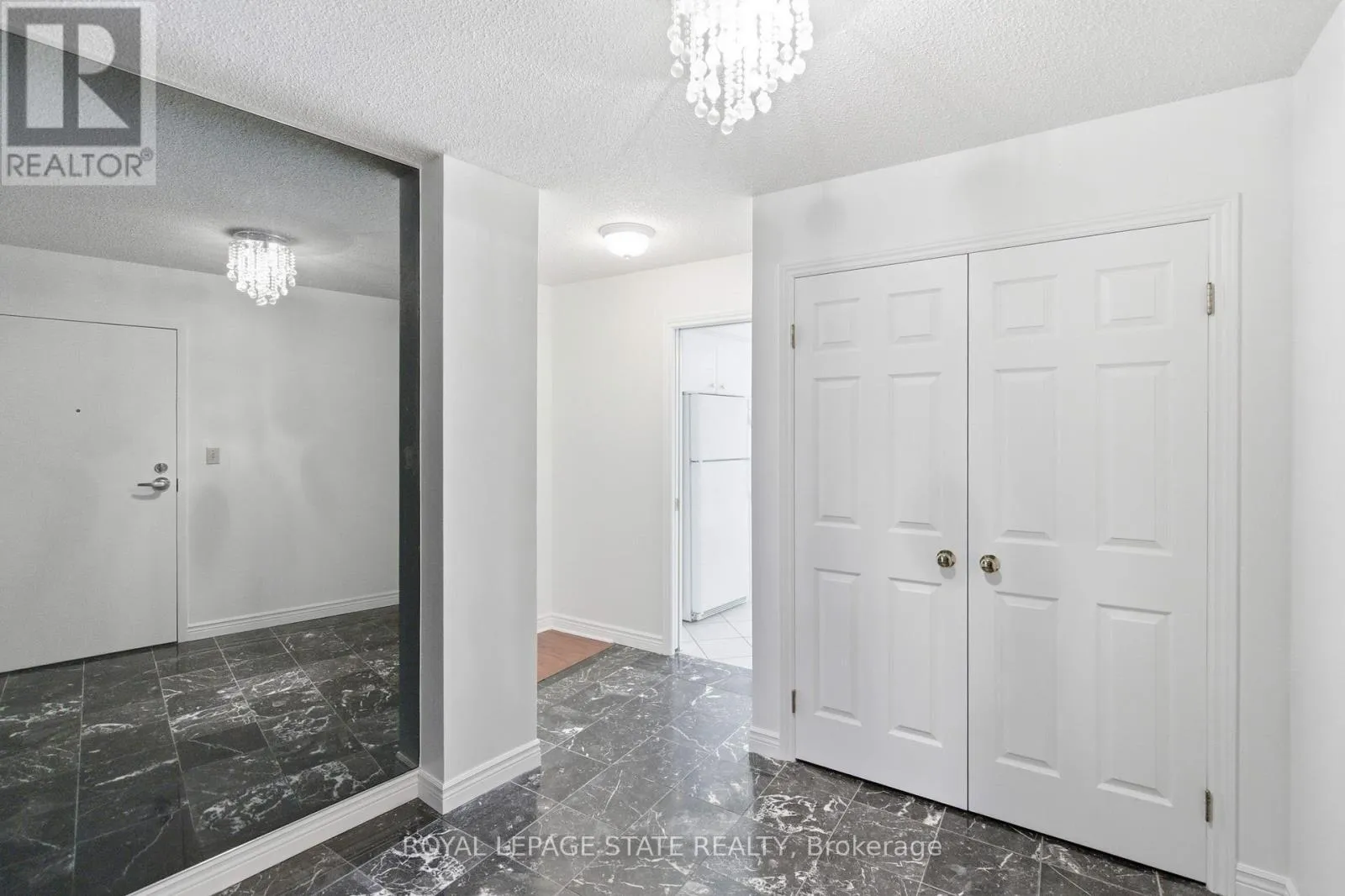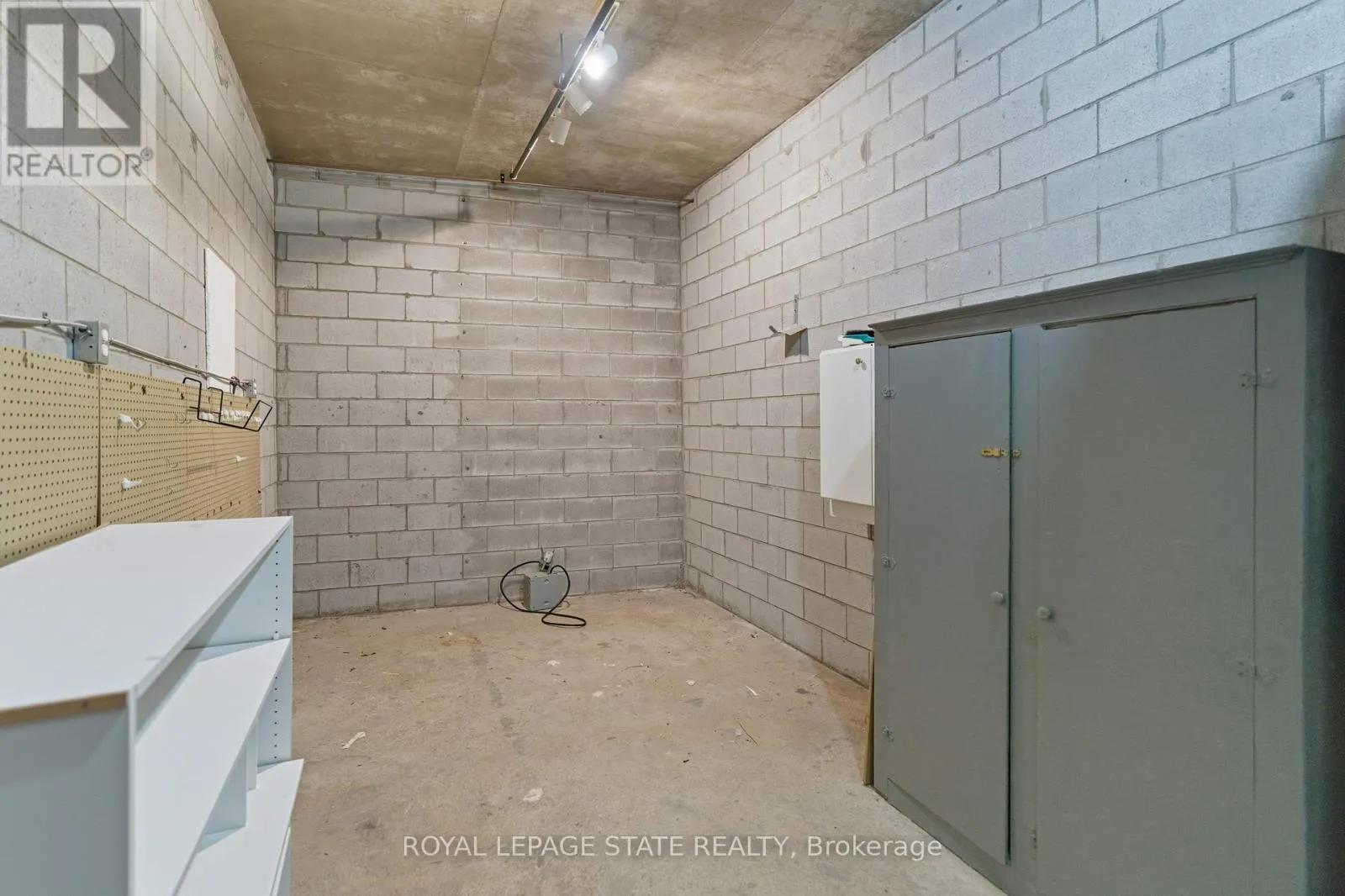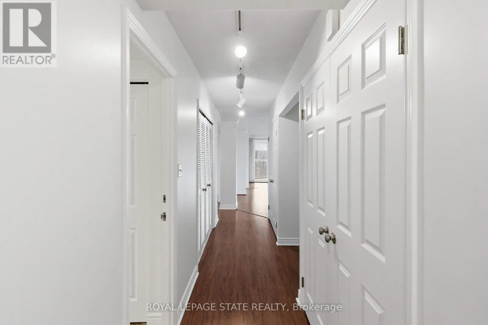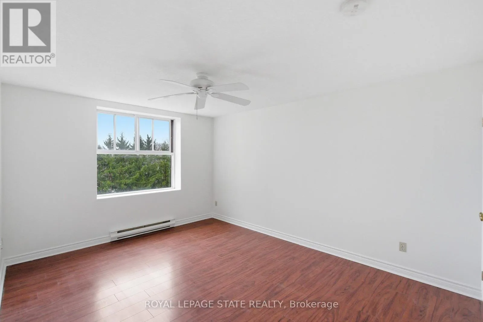 Cross Streets: Gladstone Avenue. ** Directions: From St. Andrews/Cedar, W on Cedar St, N on Berkley St, located at the end of Berkley St on the left hand side. Welcome to The Highlands by the Park; 20 Berkley Road. Nestled atop a hill at the end of a quiet cul-de-sac in historic West Galt, this prestigious condominium offers tranquility, privacy, and sweeping views of nature and the city skyline. Overlooking a majestic woodlot, Victoria Park and beyond, this building is one of Cambridge's hidden gems. This spacious 2,418 sq ft, carpet-free unit offers a rare combination of size, layout, and natural light. With 3 generously sized bedrooms, 2 full bathrooms, and a thoughtfully designed floor plan, it's ideal for those seeking comfort and functionality. Step into an impressive foyer with mirrored walls and a large closet before entering the bright eat-in kitchen, complete with ceramic tile, crisp white cabinetry, built-in range top, track lighting and a cozy breakfast nook overlooking lush greenery. The kitchen opens into a formal dining room with laminate flooring and elegant wall sconces; perfect for entertaining. The adjacent oversized living room features a wood-burning fireplace (sold as-is) and leads to a bright all-season solarium with floor-to-ceiling windows, ideal as a den, office, or creative space. Down the hallway are three spacious bedrooms, including a large primary suite with two windows, an expansive walk-in closet, and a 5-piece ensuite. A second 4-piece guest bath serves the remaining bedrooms. The in-suite laundry is tucked off the main hallway. Recent updates include new toilet in guest bath (2026) & fresh paint throughout (2026). Building amenities include a rooftop terrace with panoramic views, seating and barbecue, a party room with full kitchen and lounge, meeting room, exercise room, and well-maintained common spaces. Includes one underground parking spot with tandem storage locker. Don't miss this rare opportunity to live in a peaceful, elevated community surrounded by nature, minutes from West Galt. (id:27476)