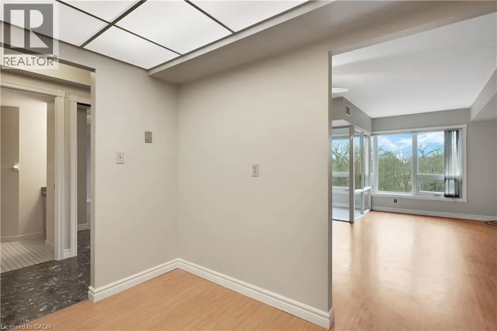 Welcome to Unit 908 at Kressview Springs â where lifestyle meets opportunity. Perched on the 9th floor of one of Prestonâs most sought-after condominium communities, this 1-bedroom, 1.5-bathroom unit is perfect for first-time buyers, investors, or those looking to downsize into a vibrant, social community. Freshly painted and available for immediate possession. With neutral paint throughout and a clean, well-maintained interior, this is the perfect entry-level opportunity to get into a premium building. The building has recently undergone extensive upgrades to the common areas, including the lobby, hallways, and windows. Residents enjoy an unparalleled collection of amenities: An indoor heated pool, hot tub, saunas, and a well-equipped fitness centre. A large party room for family gatherings, a library, a games room with a pool table, and a rare resident workshopâthe ideal space for DIY projects and hobbies. Secure underground parking, a dedicated storage locker, and plenty of visitor parking for your guests. Kressview Springs is nestled alongside the Grand River and Riverside Park, offering instant access to beautiful walking trails, boardwalks, and green spaces. You are just minutes from the shops and restaurants of downtown Preston, and commuters will love the 3-minute drive to Highway 401. Experience the perfect blend of quiet comfort and active community living. Book your private showing today and start planning your future at Kressview Springs! (id:27476)