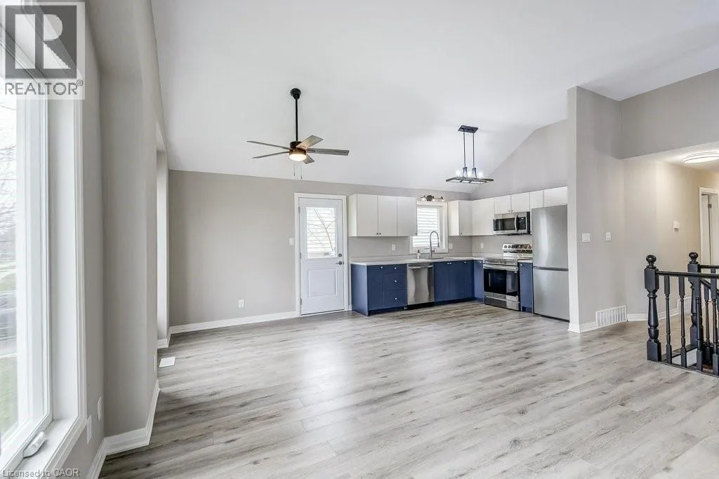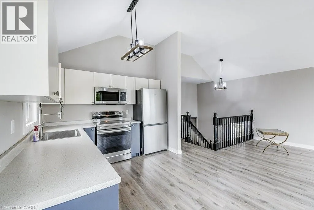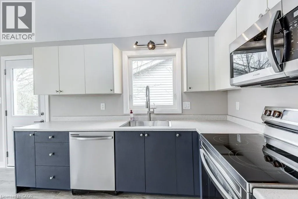Welcome home to this BEAUTIFUL raised bungalow in the heart of Prestonâtruly MOVE-IN READY and like new throughout. This stunning home features a BRAND-NEW KITCHEN complete with modern cabinetry, new countertops, BRAND-NEW stainless steel APPLIANCES, and a large, deep sink, perfect for everyday living and entertaining. Enjoy TWO FULLY UPDATED BATHROOMS, all-new WINDOWS, interior and exterior DOORS, trim, casings, and stylish light fixtures, along with NEW FLOORING throughout. The home has been FRESHLY PAINTED, creating a bright and inviting atmosphere from top to bottom. The OPEN-CONCEPT MAIN FLOOR showcases a spacious kitchen, living, and dining area, highlighted by CATHEDRAL CEILINGS in the living room. The fully renovated LOWER LEVEL has been COMPLETELY REDONE, including new insulation, walls, floors and offers oversized windows that flood the space with natural lightâso much so, it hardly feels like a basement. It also includes a large bedroom with a WALK-IN CLOSET and ENSUITE PRIVILEGES. This space could be perfect for your primary bedroom, a separate space for a teenager, in-laws, and guests or rent the bedroom to a student or friend. Lots of storage space under the entrance landing and a separate walk-in storage closet. Step outside to enjoy the yard and deck â ideal for relaxing or hosting family and friends for summer barbecues. BRAND NEW CENTRAL AIR conditioning system has just been installed. Conveniently located in a FAMILY-FRIENDLY NEIGHBOURHOOD. Close to parks, schools, shopping, and everyday amenities. Enjoy scenic walking and biking trails along the Grand Riverâperfect for an active lifestyle. Commuters will love this location - just minutes to the Highway 401. A beautiful home âsimply move in and enjoy. (id:27476)