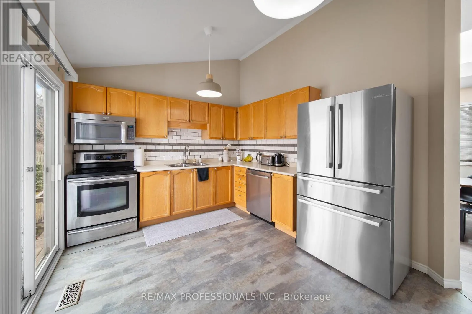 Providence/Mortimer/Concession Situated in the welcoming, family-friendly neighbourhood of Langs Farm in Cambridge, and just minutes from Highway 401, this well maintained move-in ready home offers the perfect blend of comfort, space, and everyday living. Step inside to a bright and airy open-concept main floor w/ Vinyl throughout, featuring soaring cathedral ceilings, an upgraded skylight, and soft neutral tones throughout. With two spacious bedrooms and a well-appointed bathroom, this home is ideal for young families, first-time buyers, or those looking to downsize without compromise. The lower level features a spacious finished family room, along with excellent potential for additional living space. Whether you envision a third bedroom, home office, or in-law suite, the possibilities are endless. Complete with large walk-up basement windows, generous ceiling height, and a bathroom rough-in, this space is ready to be customized to your needs. Sliding glass doors lead to a charming side and rear deck with pergola-your own massive private backyard retreat, with well appointed landscaping perfect for relaxing or entertaining. With driveway newly paved to fit multiple cars in the driveway. Enjoy being just moments from parks, schools, shopping, and everyday amenities, as well as nearby scenic walking and biking trails along the Grand River-perfect for outdoor enthusiasts and active lifestyles. (id:27476)
