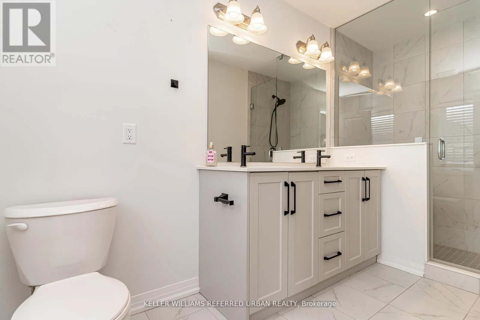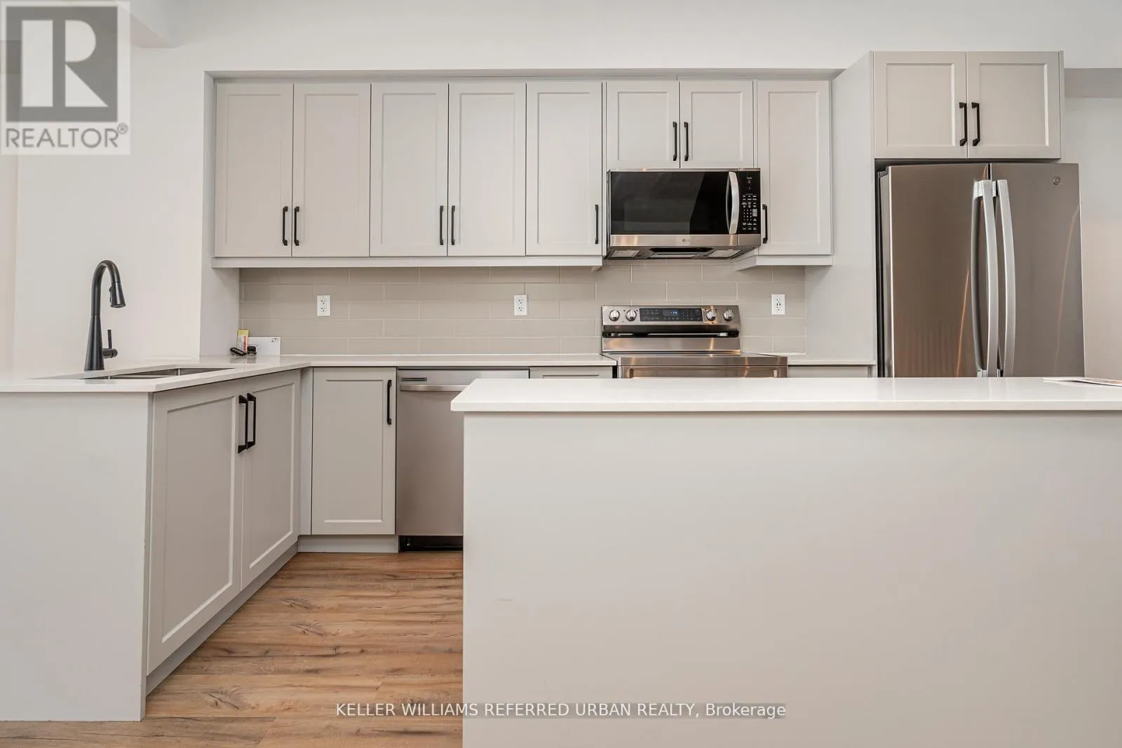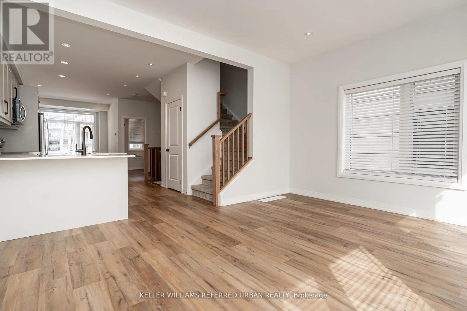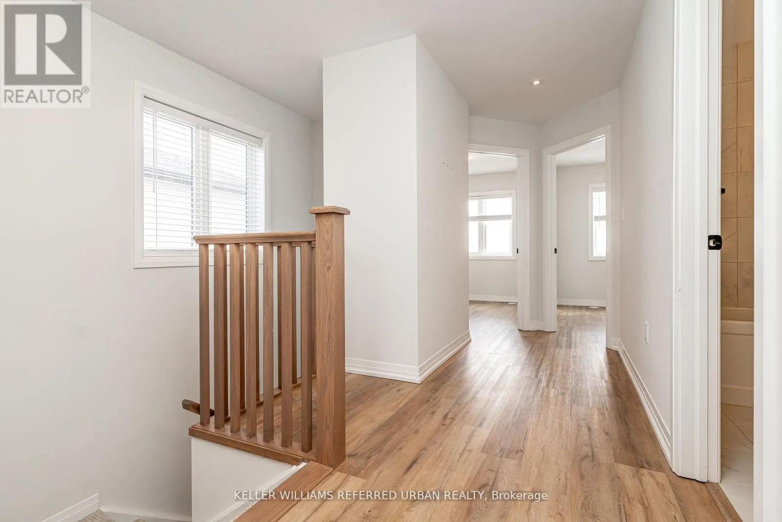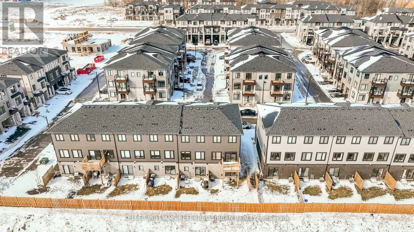 Cross Streets: Equestrian Way & Ridge Rd. ** Directions: HWY 401 to HWY 24 to Maple Grove Rd to Compass Trail toEquestrian Way. A sophisticated, impeccably maintained 3-bedroom, 3-bathroom townhouse offering approximately 1,500 sq ft of beautifully finished, turnkey living in one of Cambridge's most desirable communities. Thoughtfully designed with both style and functionality in mind, the open-concept main level is filled with natural light and enhanced by 9-foot ceilings, wide plank flooring, and expansive windows that create an airy, elevated atmosphere. The seamless flow is ideal for both everyday living and refined entertaining. The chef-inspired kitchen serves as the heart of the home, showcasing designer finishes including crisp white cabinetry, quartz countertops, stainless steel appliances, a timeless subway tile backsplash, and a generous centre island perfect for gathering.The dining area overlooks the backyard and private deck through oversized windows, creating a bright and inviting setting for family meals or hosting guests. Step outside to the deck an ideal extension of the living space, perfect for summer barbecues, morning coffee, or relaxed evenings outdoors. Upstairs, well-proportioned bedrooms offer comfort and privacy, including a spacious primary retreat. The smart layout maximizes space and functionality, delivering low-maintenance luxury without compromise. Complete with both garage and driveway parking, this home offers rare convenience and everyday practicality an exceptional advantage in townhouse living. Ideally situated in a family-friendly neighbourhood close to parks,top-rated schools, shopping, and major commuter routes, this home offers the perfect balance of upscale living and everyday convenience. An exceptional opportunity for discerning buyers seeking designer style, comfort, and long-term value in Cambridge. (id:27476)