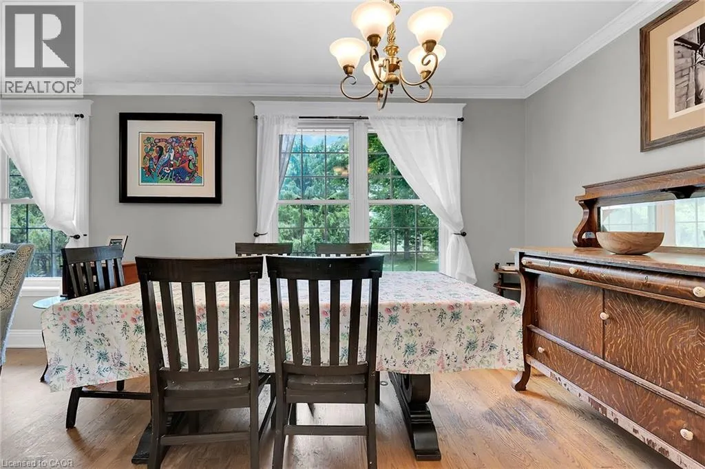 Highway 56 to West on Concession 1 Road Experience nature at itâs finest here at 118 Concession 1 North located less than 10 minute commuting distance to the rapidly expanding town of Binbrook - 10 minutes further north up the road are all of Hamilton Mountain & Stoney Creek amenities. Positioned majestically on 1.21 acre wooded lot (229.66ft x 229.66ft) nested under towering pines & hardwoods is 1975 built elevated ranch bungalow introducing 1,248sf of functional living space, 1,248sf in-law style basement plus 495sf attached garage. Follow quiet, paved Concession Road. then turn down hidden, tree- lined, driveway & discover this natural sanctuary - with deer, wild turkey & most every other form of wildlife as your only neighbor. The solid brick home incs on grade foyer ftrs walk-out to private rear deck w/6 stairs leading to upper level ftrs living room & dining room offering oversized windows enjoying picturesque rural views overlooking natural pond on adjacent east property. Continues w/fully equipped kitchen, 3 roomy bedrooms & 4pc bath. Original hardwood flooring enhance country style décor. Large family room highlights lower level accented w/rustic pine feature walls & cozy wood stove set on reclaimed brick hearth - segues to spacious 4th bedroom, laundry/utility room & multiple storage rooms. Extras inc - metal roof, p/g furnace/AC/hot water heater-2024 (rented), 200 amp hydro service, 3000 gal water cistern, independent septic system, private rear deck, several sheds & more. Stress free Rural life-style, less than 20 mins from the big city hustle & bustle - is ready & waiting just for you. (id:27476)