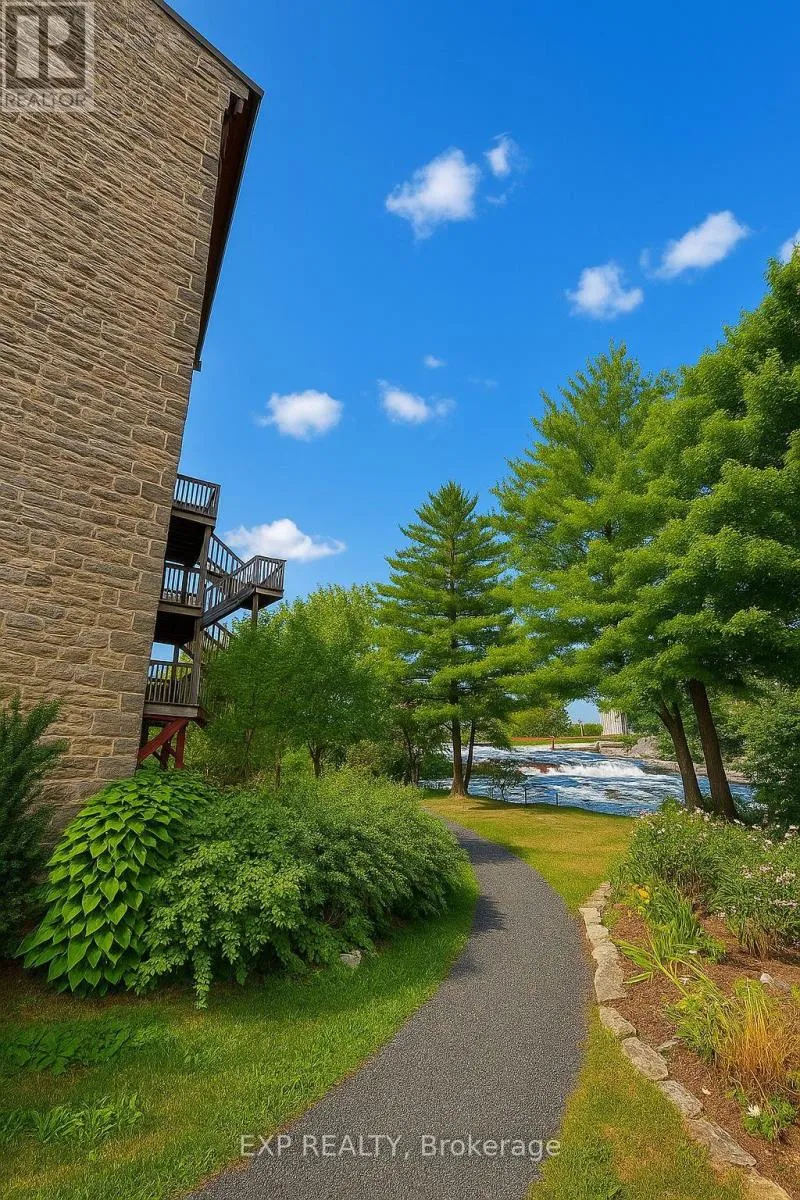Cross Streets: Bridge St and Mill St. ** Directions: From Ottawa, take the 417 west to HWY 7. Turn right andcontinue on Franktown Rd. Take Princess St to Mill Street.Property is on the left hand side. Welcome to 49 Mill Street Suite 6, an extraordinary Penthouse condominium set within the historic Boulton Brown Mill, one of Carleton Places most cherished heritage landmarks. Perfectly positioned in the heart of downtown, this home blends character, comfort, and an unbeatable riverside setting.Step inside to discover a bright and spacious open-concept living and dining area, highlighted by exposed stone walls, soaring 9-foot ceilings, and oversized windows that fill the space with natural light. The kitchen offers excellent functionality with generous cabinetry, a walk-in pantry/storage room, and convenient in-suite laundry, while a stylish 2-piece powder room is perfect for guests. Upstairs, youll find two generously sized bedrooms and a full 4-piece bathroom. The primary bedroom is a true retreat with its private waterfront balcony, where you can unwind while enjoying unobstructed views of the Mississippi River a peaceful backdrop of nature right at your doorstep. This sought-after location gives you the best of both worlds: steps to boutique shops, cafés, and restaurants in vibrant downtown Carleton Place, yet surrounded by scenic walking paths and the tranquility of the river. One parking space and a separate storage unit are included for your convenience. Experience heritage charm, modern comfort, and waterfront living all in one. (id:27476)
