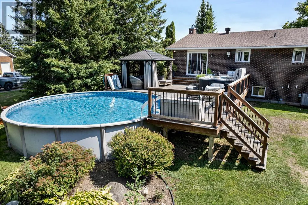 Cross Streets: Napoleon St and Hwy 7. ** Directions: Hwy 7 to Carleton Place. North on Napoleon St to Pin 376. Country living, in town. On big treed acre, immaculate brick home offers wonderful family spaces both inside and out. The upgraded 3 +1 bedroom, 3 full bath home also has attached single garage plus detached double garage. You will be pleased with the tasteful palette found thru-out the home, creating sense of calm while enhancing all the natural light. Bright welcoming foyer has ceramic floor and double closet. Light-filled spacious living room opens to dining room, with patio doors to deck and BBQ gas hookup. Adjacent to dining and living room, modern contemporary kitchen sparkling with updates of ceramic floor, quartz countertops, pantry wall, island-breakfast bar and appliances. This home provides your family with ample storage such as the hallway's three closets. Primary suite overlooks private peaceful backyard and has double closet along with new 2025 luxury 3-pc ensuite with porcelain flooring. Two more good-size bedrooms, both have extra-large windows and closets. Main floor 4-pc bathroom marble vanity and ceramic floor. Lower level French doors open to generous family room with wall of windows and gas fireplace. You also have flex space for home office or gym. Lower level bedroom with closet; 3-pc bathroom has marble vanity and is combined with laundry centre that has storage. Family-sized mudroom provides more storage and door to attached garage. Upgrades include main floor windows 2022, lower level windows 2021 and front door 2022. Detached double garage insulated, heated and has hydro plus floor drains. Backyard a staycation oasis with large deck that includes hot tub and gazebo. The deck extends to above-ground 2021 pool, for endless summer fun. Large shed for storing garden gear and toys; the shed also has fenced area. In the evening, the family will enjoy gathering about the firepit for some s'mores. Hi-speed and cell service. Near all amenities, including schools and Mississippi River for boating and swimming. And, quick 20 min commute to Ottawa (id:27476)