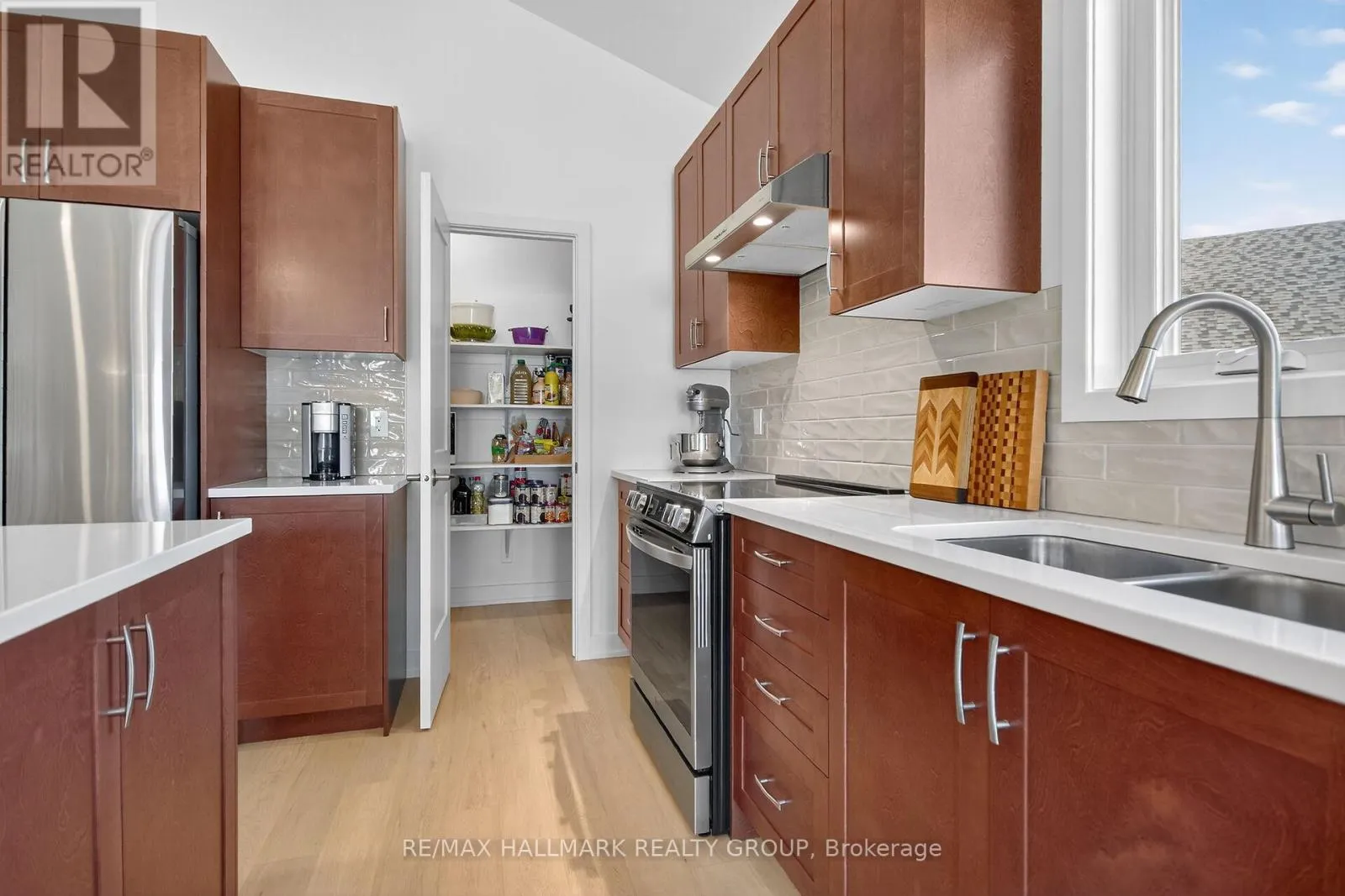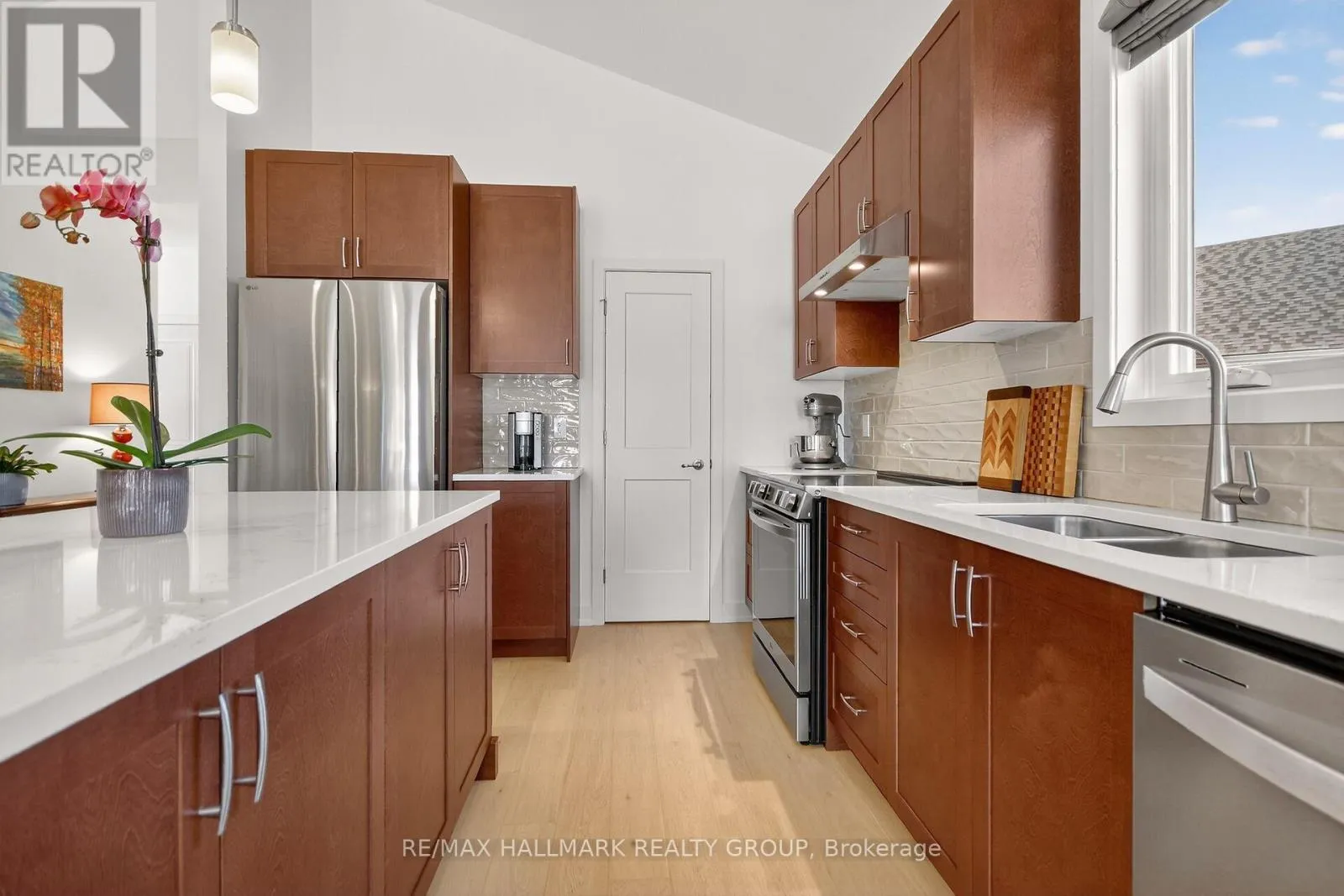 Cross Streets: Mississippi. ** Directions: Mississippi Rd to Doucett Dr, left on O'Donovan, right on Grifith, left on O'Donovan. Welcome to this beautifully crafted bungalow, ideally situated just minutes from downtown Carleton Place and a short stroll to the serene Mississippi River. Thoughtfully designed and impeccably maintained, this 2+1 bedroom, 3 full bathroom home blends style, comfort, and quality upgrades throughout.The open-concept main level is bright and inviting, featuring hardwood flooring, pot lights, and a welcoming den - perfect for a home office or cozy reading nook. The kitchen showcases quartz countertops, a large pantry with a convenient electrical outlet, and a water line to the fridge for everyday ease. The spacious living and dining areas flow effortlessly, creating an ideal space for hosting family and friends.Both main floor bathrooms feature quartz counters, adding a cohesive and upscale touch. The main floor laundry room is designed for everyday function, complete with upper cabinets for added storage. Built with attention to detail inside and out, this home includes R60 attic insulation and a fully insulated garage for year-round comfort and efficiency. Set on a premium lot, the property offers plenty of outdoor space to relax and enjoy the peaceful surroundings. The finished lower level expands your living area with a warm family room for movie nights a hobby area perfect for crafting, games or creative projects. A third bedroom, a brand-new full bathroom (completed in 2025), and a generous storage space that can easily adapt to your needs.Backed by a Tarion warranty for peace of mind, this exceptional bungalow combines modern finishes, smart design, and a prime location - ready to welcome you home. (id:27476)