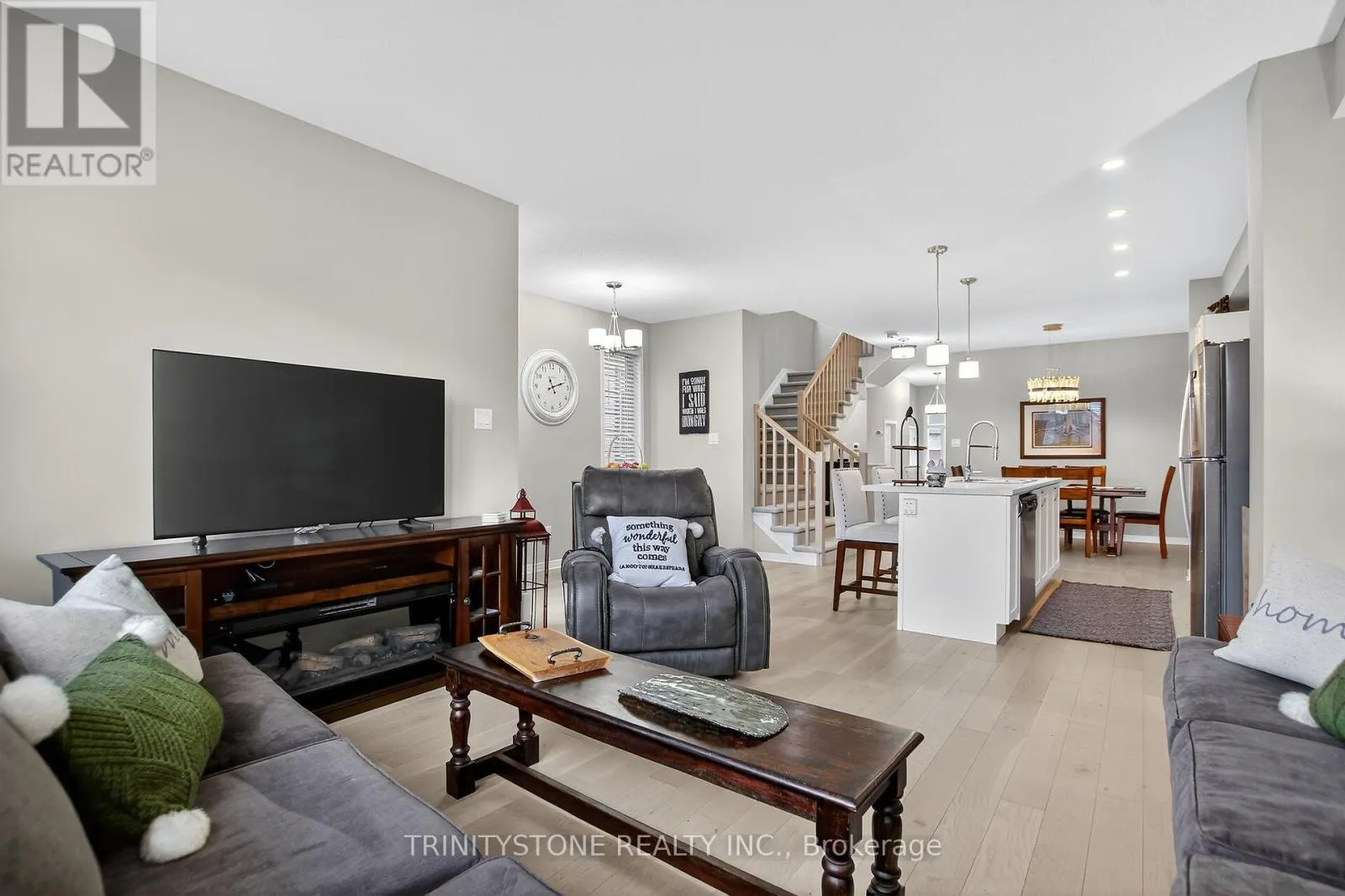 Cross Streets: Riddell St and Flegg way. ** Directions: Take McNeely Ave past the roundabout, Left on Flegg then Left on Riddell. House is on the right. Welcome to this stunning 3-bedroom end-unit townhome located in the Millers Crossing community of Carleton Place. Offering the perfect blend of comfort, convenience, and modern design, this property is ideal for families, professionals, or anyone looking for a move-in-ready home in a great location. From the moment you arrive, you'll be greeted by a charming covered front porch. Step inside to a lovely front foyer with a convenient powder room and a bright, open-concept main level designed for modern living. Beautiful floors flow throughout the main space, complementing the neutral tones and large windows that fill the home with natural light. The kitchen is both stylish and functional, featuring modern cabinetry and stainless steel appliances. The open layout seamlessly connects the kitchen to the dining and living areas, making it ideal for entertaining or spending time with family. Upstairs, the large primary bedroom offers a peaceful retreat complete with a walk-in closet and a luxurious ensuite. Two additional bedrooms provide plenty of room for family or guests, and the versatile upper level den space makes a perfect home office, study area, or second TV room. Convenient second-level laundry adds to the ease of everyday living.The bright lower level offers plenty of potential - a second family room, a home gym, recreation room, and lots of additional storage. Outside, you'll enjoy a partly fenced backyard with room to garden, play, or unwind. Newer shed included for bonus storage. This home also includes a Generac generator for peace of mind, and is located steps away from a family-friendly splash pad and playground. Just minutes from Walmart, Independent, and Home Depot, and with quick access to Highway 7, this location makes commuting to Ottawa simple while keeping all the conveniences of Carleton Place close to home. (id:27476)