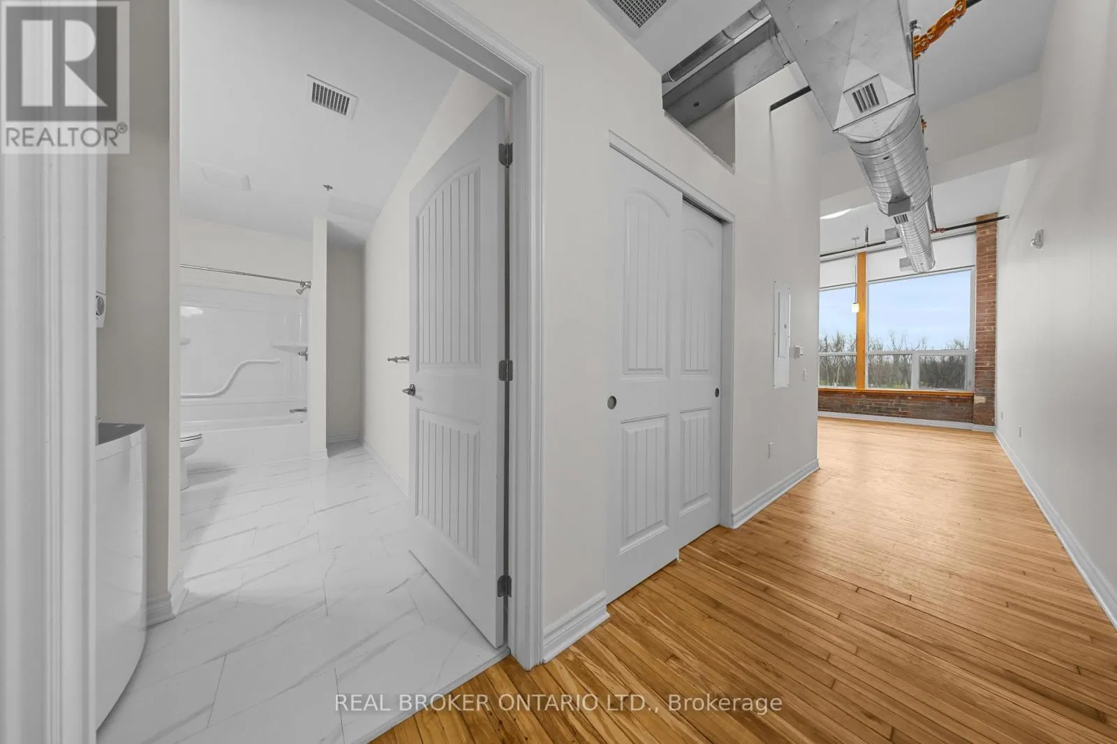 Cross Streets: Princess and Mill. ** Directions: from Lake, turn left onto princess then right onto Mill. Discover a one-of-a-kind 1 bedroom + den apartment in a beautifully restored historic mill on McArthur Island, right in the heart of Carleton Place. This unique space blends century charm with modern comfort, featuring exposed brick, original hardwood floors, and soaring ceilings that highlight the building's heritage. Large windows brighten the space with natural light and offer a partial view of the Mississippi River, adding to the atmosphere and appeal.The open living area feels warm and inviting, while the bedroom provides a comfortable retreat and the den offers flexible use - ideal for a home office, studio, or guest nook. The layout makes smart use of every square foot, balancing functionality with style.Just steps away, enjoy Bridge Street's shops, cafés, restaurants, scenic trails, and riverfront pathways - all within easy walking distance. A rare opportunity for those who appreciate history, architecture, and a walkable lifestyle in one of Carleton Place's most sought-after locations.Extras: Free surface parking for the first year + Hydro and Water included for the first 3 months of the lease. (id:27476)
