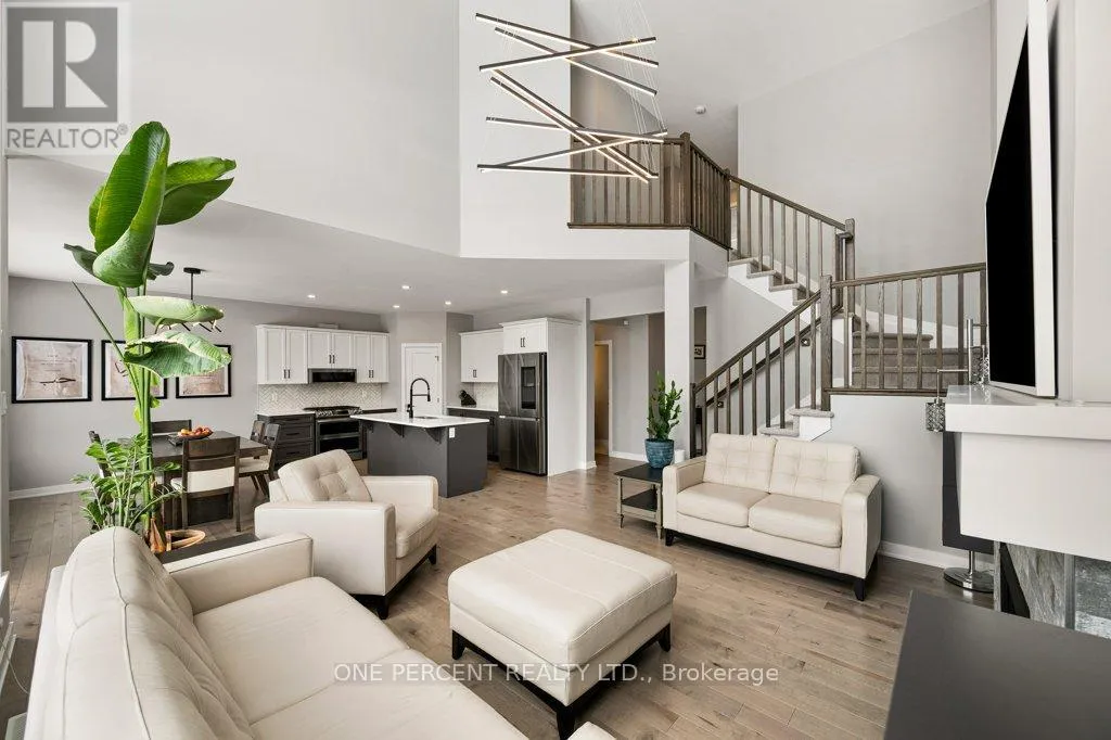 Cross Streets: Stanzel Dr & Rathwell St. ** Directions: Heading West on Hwy 7, turn Left onto McNeely Ave, turn Left onto Flegg Way, turn Right onto Fanning St, turn Left onto Stanzel Dr. Premium pie-shaped lots in Miller's Crossing rarely become available, and this one arrives as a blank canvas with room for a pool, a dream backyard, or whatever the next owner envisions. Cardel's Devonshire II is one of the most sought-after models in the area, and this one raises the bar on finish and value. Built in 2022 with over $30,000 in builder upgrades, this four-bedroom, 3.5-bath home has been meticulously maintained and is truly move-in ready. Soaring vaulted ceilings, floor-to-ceiling windows with motorized blinds, and a gas fireplace define the great room, while hardwood floors run through the main level. The stylish chef's kitchen features maple cabinetry, quartz countertops, an upgraded backsplash, a walk-in pantry, and high-quality smart stainless steel appliances including a gas stove. A mudroom and main floor den keep daily life organized. The second floor offers four bedrooms, three with walk-in closets, a convenient laundry room, and a primary suite with a spa-like ensuite featuring a double vanity, soaker tub, and glass shower. The finished basement adds a full bathroom and a media room wired with in-wall and in-ceiling speakers built for the full cinematic experience, or easily used as a fifth bedroom. For growing families ready to stop compromising, this is the home that checks every box in one of Carleton Place's most sought-after communities, close to parks, trails, and everyday amenities, with straightforward access to Ottawa via Hwy 7. This one won't last. Check out the virtual tour and book your showing today. (id:27476)