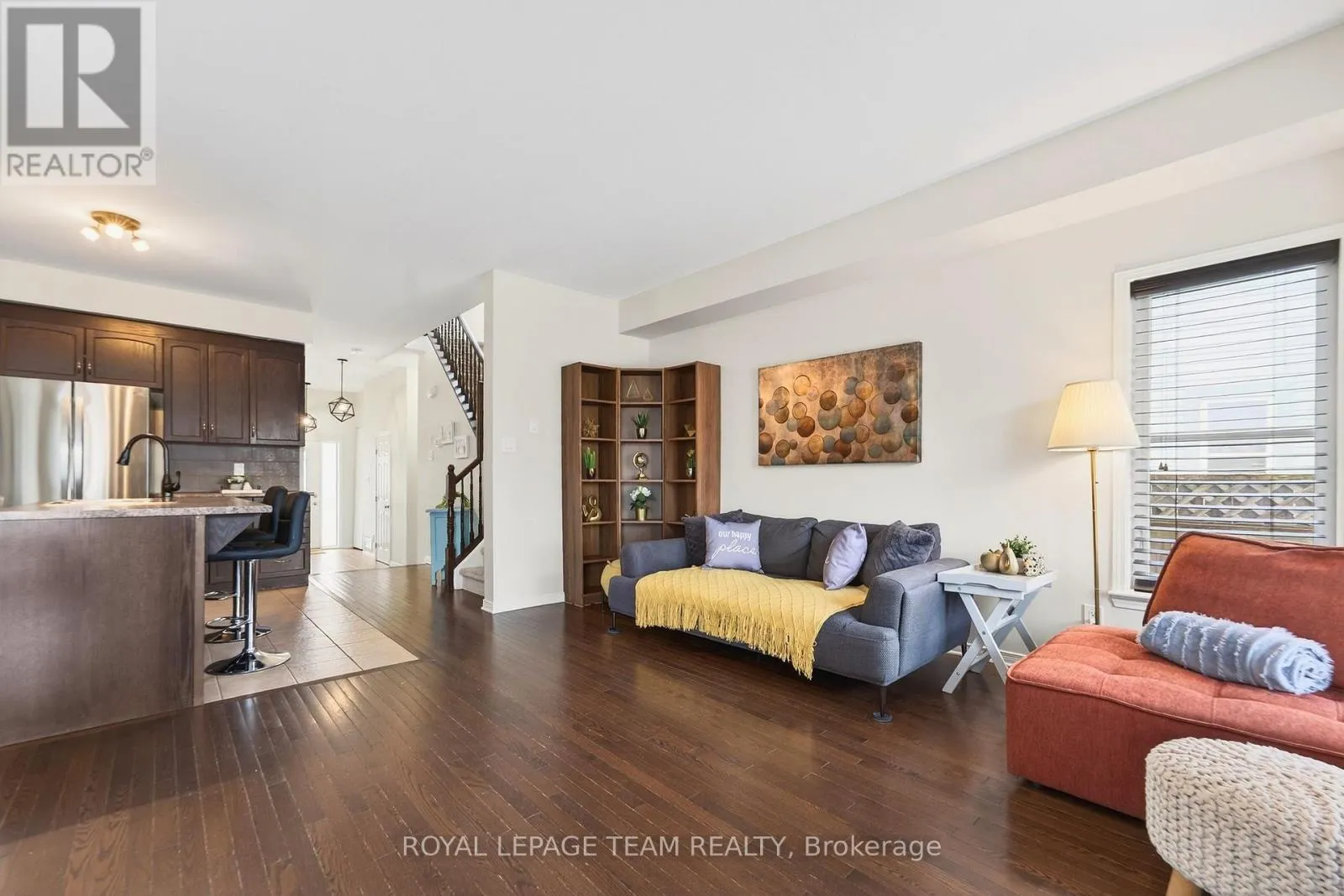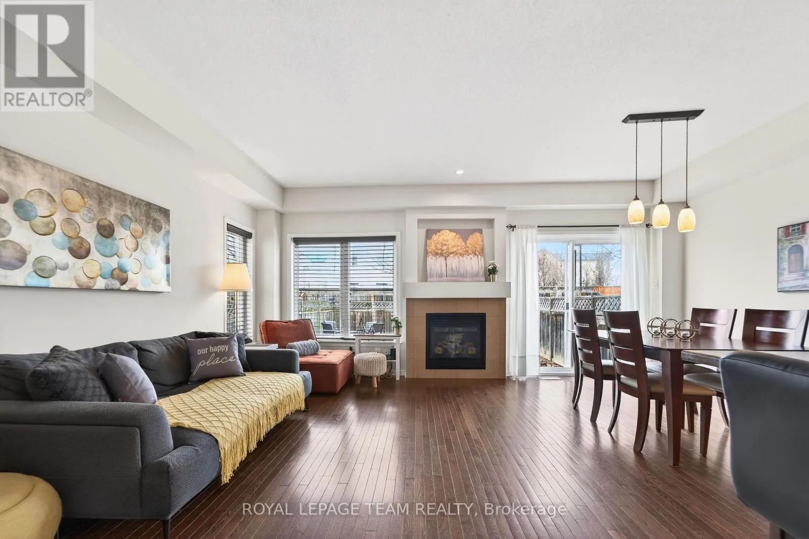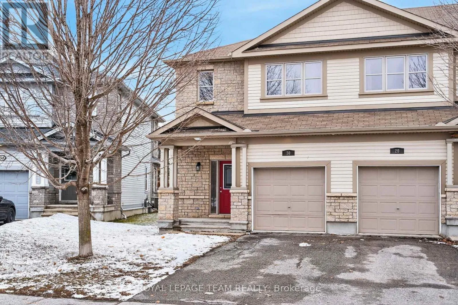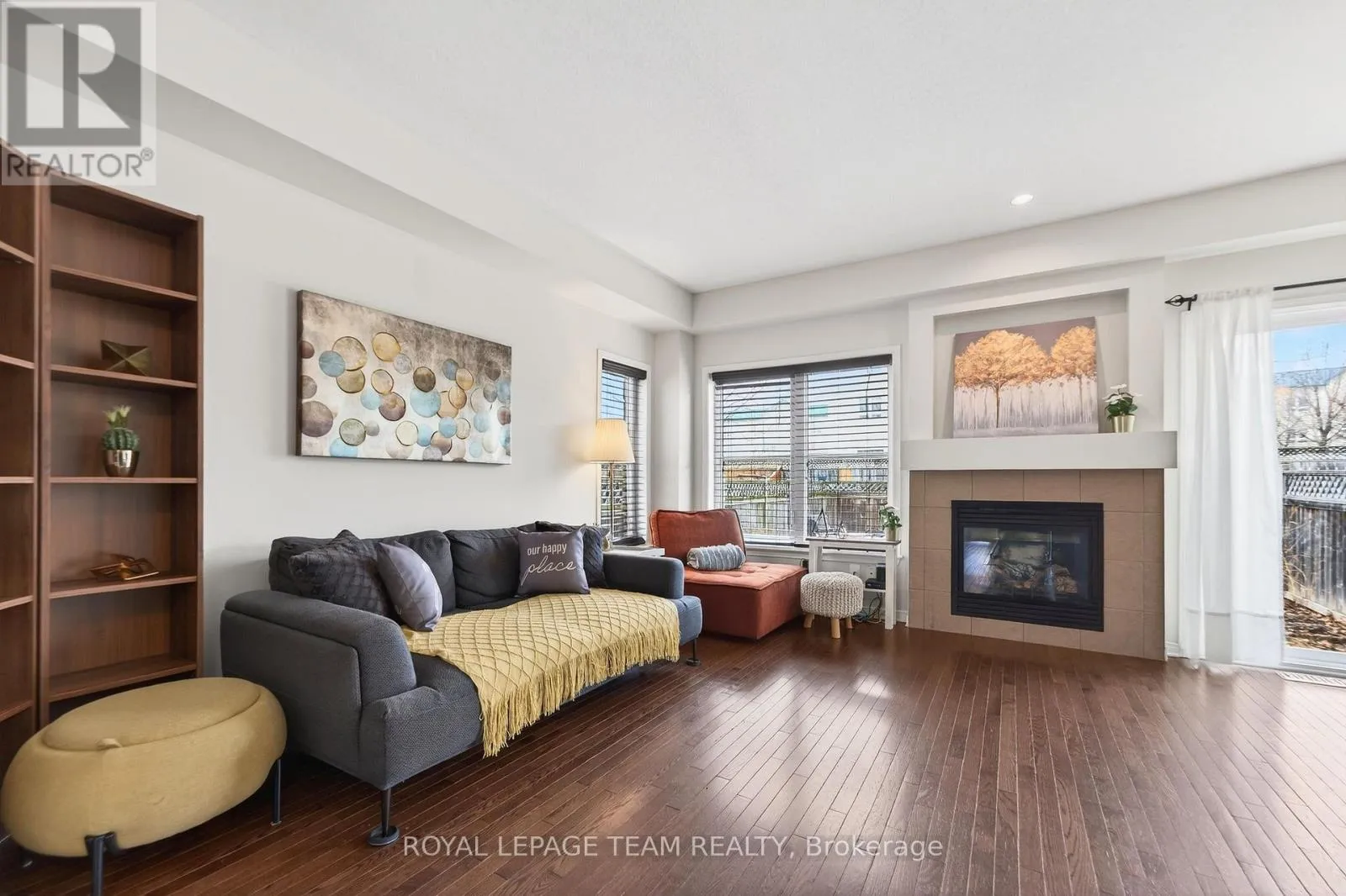 Cross Streets: Stonewater Bayand Hackberry Trail. ** Directions: Highway 7, turn north on McNeely Rd, right onto Stonewater Bay, left onto Hackberry Trail. Welcome to this well-maintained and thoughtfully designed 3-bedroom, 4-bathroom END UNIT townhome, offering comfortable living space ideal for a growing family. The layout has been carefully planned to provide both functionality and everyday convenience, making it perfectly suited as a long-term family home. One of the standout features is the second-floor laundry, which makes daily routines much easier and more efficient. The spacious primary suite offers a relaxing retreat, complete with a large walk-in closet and a private ensuite featuring a generous soaker tub, perfect for unwinding at the end of the day. The main level is warm and inviting, highlighted by a cozy gas fireplace and an open layout that flows beautifully into the kitchen and dining areas. The kitchen features a large island with seating for stools, making it an ideal gathering spot for family meals, casual dining, or entertaining guests. The home also offers excellent additional living space in the basement, which is large enough to accommodate a full media or entertainment setup while still leaving room for hobbies, a play area, or a home workspace. Outside, the fully fenced backyard provides a great balance of privacy and functionality. A convenient walkway behind the property allows access without neighbours having egress through the yard, creating a more peaceful and private outdoor space. The yard itself is the perfect size-large enough for kids or pets to run and play while still being easy to maintain. The property also includes parking for three vehicles. Located in a welcoming, family-oriented neighbourhood with many young families, the area is known for its quiet streets and safe environment. A nearby park and scenic walking path offer great opportunities for outdoor enjoyment. Essential amenities including grocery stores, pharmacies, and a post office are less than five minutes away, and the location offers convenient access to Ottawa, making it ideal for or commuters. NO REAR NEIGHBOUR (id:27476)