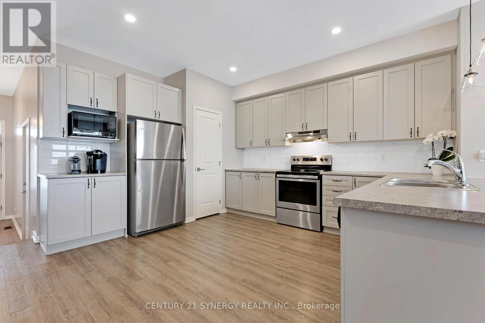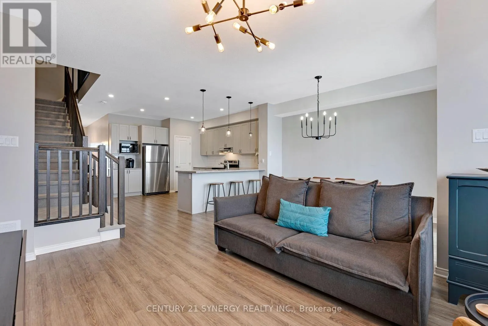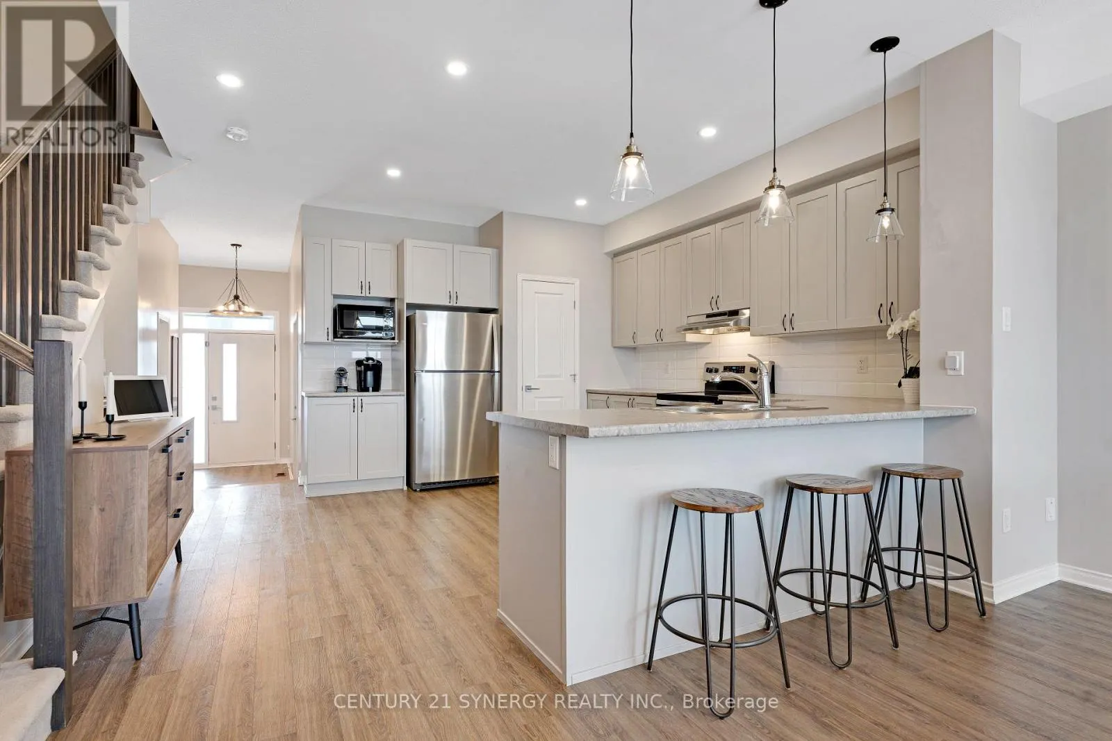 Cross Streets: HWY 7 and McNeeley. ** Directions: Highway 7 to Carleton Place, South on McNeely Ave, Left on Cpt. Roy Brown Blvd, Left on Stokes. This beautiful 3-bedroom, 2.5-bath townhome immediately impresses with its clean, modern aesthetic and evident pride of ownership. Inside, you're greeted by a bright and inviting atmosphere, enhanced by the large picture windows and a functional layout The modern kitchen features light shaker-style cabinetry, subway tile backsplash, stainless steel appliances and a pantry tucked away in the corner .The L-shaped eat-in countertop creates an effortless flow, making it ideal for casual meals, morning coffee, or entertaining guests while staying connected to the main living area. Upstairs is the trendy second-floor laundry, complete with stylish pine-accented shelving bringing both charm and practicality to your daily routine. The primary bedroom serves as a warm and relaxing retreat, generously sized to comfortably fit a king bed along with bedside tables. The ensuite bathroom elevates the space even further, showcasing an oversized glass walk-in shower and a spacious L-shaped walk-in closet. The additional bedrooms at the front of the home are well-proportioned and versatile, perfect for family members, guests, or a home office. Downstairs, the finished basement offers valuable extra living space with abundant storage in the utility room. Stepping outside to the south facing back yard and discover one of this home's most impressive features: a rare 40-foot deep lot with no rear neighbors. The 20x24 deck (2024) provides the perfect foundation for summer barbecues while the stylish gazebo adds both comfort and ambiance, creating a space you'll enjoy from morning to night. Nestled in a vibrant, family-friendly community, you're just a short stroll from scenic walking trails, parks/splashpad, and an outdoor rink (winter). Everyday amenities are all within easy walking distance, (grocery, coffee, gas station, LCBO) For commuters, Highway 7 is just one minute away, offering quick and easy access to surrounding areas. (id:27476)