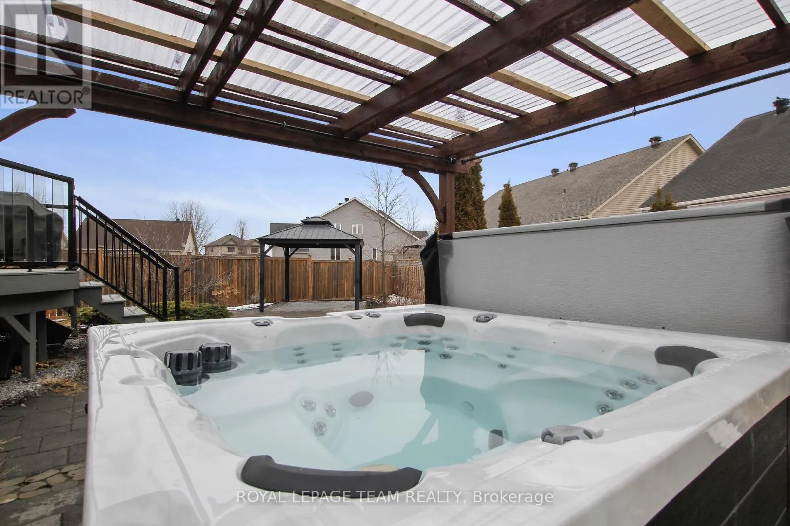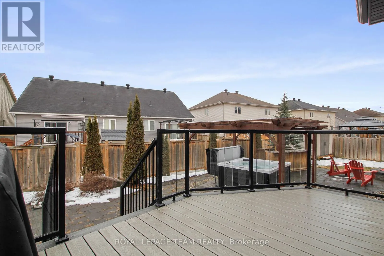 Cross Streets: Santiago and Francis ST. ** Directions: From Hwy 7 turn North on to McNeely, turn left at Coleman, then right on Park Av, turn right on Santiago, Santiago continues onto Francis st. Welcome to an exceptional offering in the heart of Carleton Place-a premium 4-bed, 4-bath executive 2-story home, built in 2015 and ideally positioned on one of the largest and most desirable lots in the development. This beautifully upgraded home stands apart with thoughtful enhancements & upgrades throughout, including hardwood floors and staircase, floor-to-ceiling fireplace w/stone facade, additional windows on the main level and basement that flood the interior with natural light. The open-concept design is both functional & inviting, perfectly suited for everyday living and entertaining. The kitchen will inspire the chef in you; featuring sleek white cabinetry finished to the ceiling, centre island w/seating, granite counters & pantry. Upstairs offers 4 beds, including a primary suite featuring a spa-inspired ensuite w/custom shower, granite ct & double sinks. The professionally finished basement significantly expands the living space with a large open family room, games area, and a 4th bath with a shower. Above-grade daylight windows enhance the brightness of the lower level. Outdoors, the expansive, fully fenced yard creates a private, resort-like setting. A composite walkout deck, gazebo, pergola, Tiki bar with seating, fire pit, gas BBQ, and a hot tub (2024) make this an ideal space for relaxing or entertaining. Additional features such as interlock patios, underground sprinklers & paved driveway ensure ease of maintenance. Extensive recent updates provide peace of mind, including: furnace, A/C, tankless hot water heater, roof & driveway, SS kitchen appliances, garage door & openers, and GoVee permanent exterior lighting. Ideally located within walking distance to shopping, restaurants, and the vibrant downtown core, with convenient access to Hwy 7, this home offers the perfect blend of lifestyle, space, and location. A rare opportunity to own a highly upgraded property on a premium oversized lot in one of Carleton Place's most sought-after neighbourhoods. (id:27476)