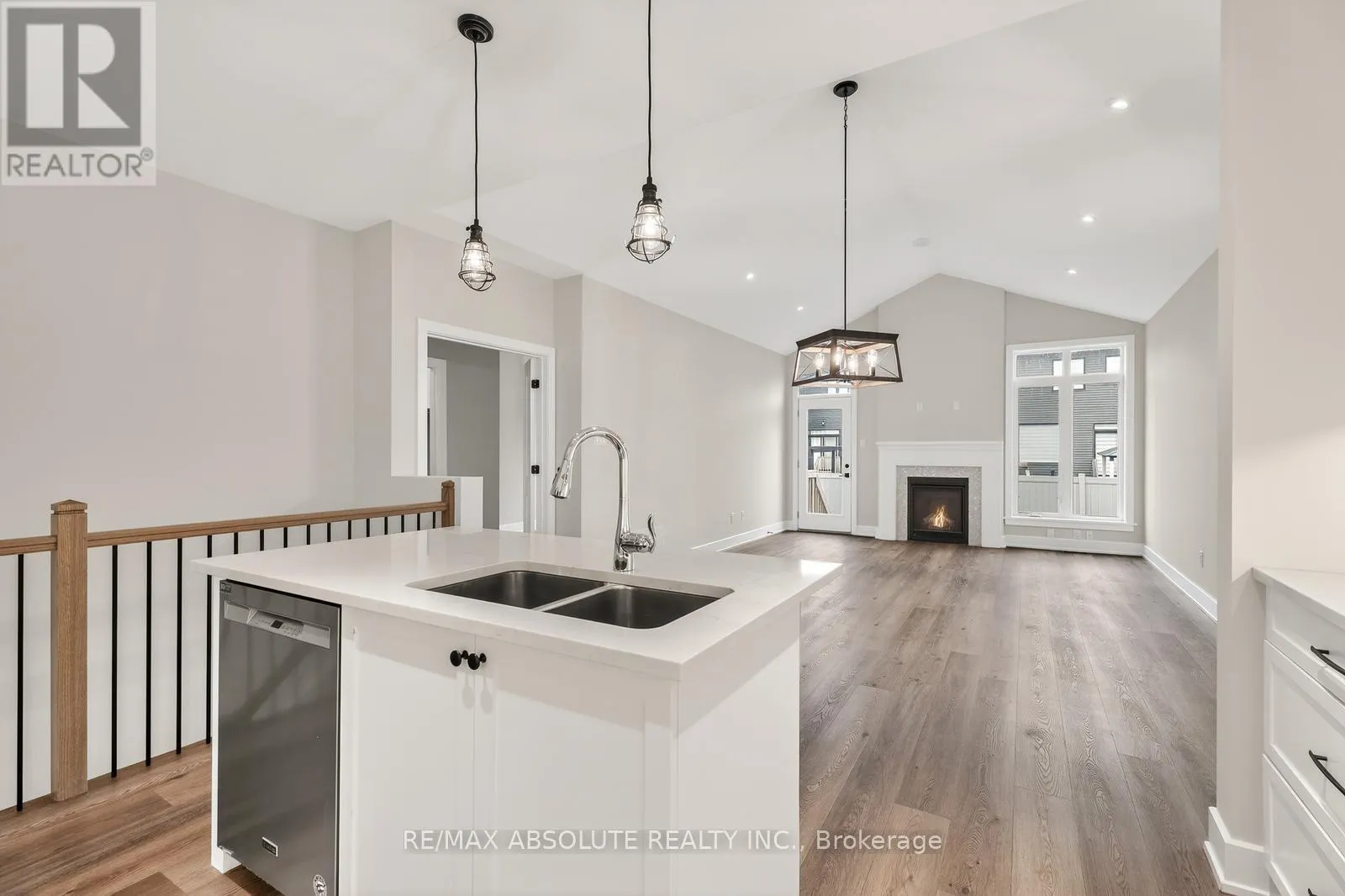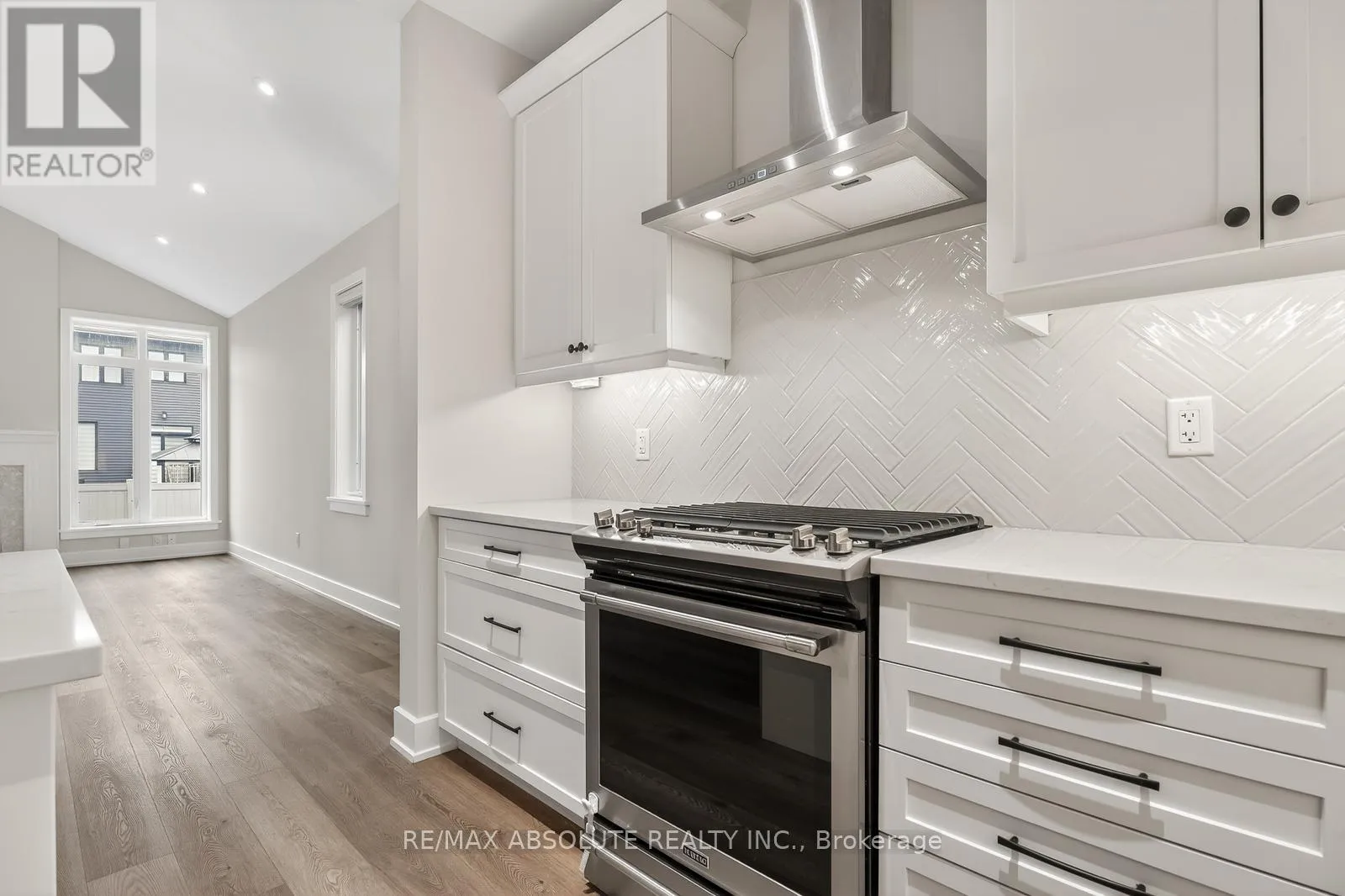 Cross Streets: Christie. ** Directions: Park Ave to Nelson Street to McPhail. What a gorgeous SEMI in very convenient location! Cultured stone & stucco surround set the tone for what's to come once inside! This model is one of Doyle Homes MOSt popular models! A BRIGHT foyer as the front door has a glass insert & a transom window on the top & side. Beautiful wide plank flooring throughout! The great room offers 10 ft + cathedral ceilings that just allow for the best open & airy feel PLUS a gas fireplace with a very pretty classic white mantle & marble surround (matches kitchen backsplash). The white kitchen has LOADS of upgrades like upgraded cabinets (48" H), QUARTZ countertops, marble herringbone backsplash, a gas stove, French door fridge, valence lighting, matte black hardware.. EVERYTHING on your WISH list! Large primary & walk in closet PLUS a 4 piece ensuite that offers a glass shower & separate tub!. Good size bedroom at the front of the home that offer views of the front yard. The main bath has a tub & shower combo with subway tile surround & quartz countertop! FINISHED lower level with. rec room & 3rd bedroom. Lots of storage! (id:27476)