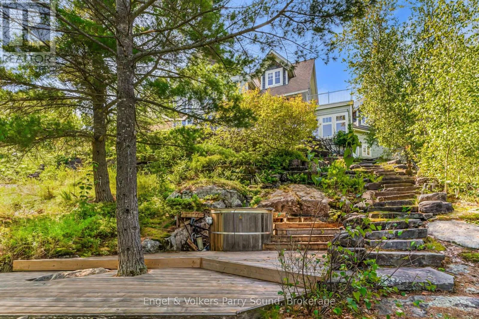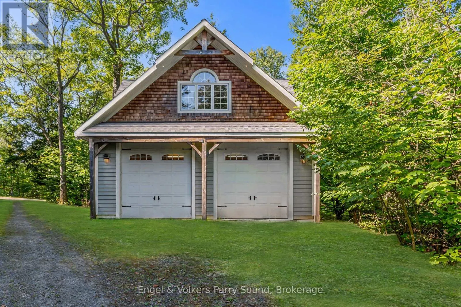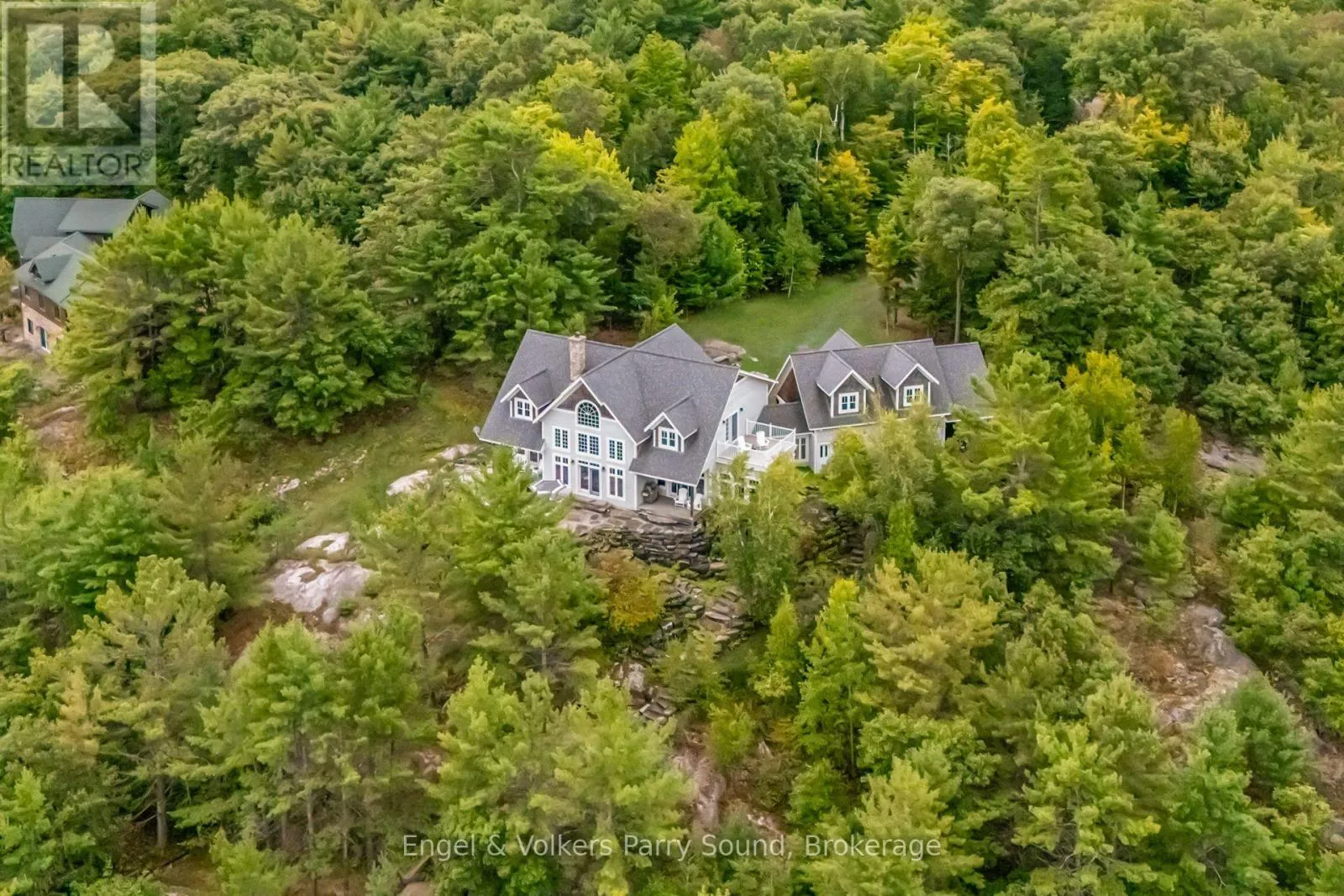 Cross Streets: Bayview Dr & Beacon Point Road. ** Directions: 400 N to 559. 559 to East Carling Bay Road, continue onto Bayview, turn left at Beacon Point Drive. Property on left. Prestigious Year-Round Georgian Bay Estate | Perched atop a sheltered granite outcropping, this custom Georgian Bay masterpiece offers over 3,600 SF of refined living space where timeless craftsmanship meets modern luxury. Designed with a timber frame & accented by soaring post-and-beam construction, the home commands sweeping views of tranquil Carling Bay; an address synonymous with prestige and privacy. Set on nearly 4 acres of natural beauty with 331 feet of deep, clean shoreline, this Cape Cod inspired residence has been celebrated in Canadian Homes & Cottages magazine for its architectural brilliance and flawless execution. Granite walkways, handcrafted stone staircases and artfully designed landscaping seamlessly blend the property with its rugged, picturesque surroundings. The grand great room impresses with its 32-foot cedar ceilings, striking timber trusses & arched windows framing the bay beyond. A magnificent stone fireplace anchors the space, while heated cherry wood and tile floors extend warmth throughout. The gourmet kitchen is outfitted with granite countertops, stainless steel appliances, and a propane stove perfect for both culinary creations and effortless entertaining. With five bedrooms, including luxurious guest suites on the upper level, and a dedicated games wing, the home is designed for both intimate family living and large-scale hosting. Expansive patios, tiered outdoor spaces and breathtaking vistas ensure every moment is embraced in luxury. Car collectors and boating enthusiasts will appreciate the attached and detached garages, providing space for cars, boats, and prized possessions. The private dock offers deep-water mooring and full electrical connections to accommodate large vessels. Enjoy the convenience of year-round municipal road access. Opportunities to own along Beacon Point are exceptionally rare, making this estate not only a home, but a true legacy property on Georgian Bay. (id:27476)