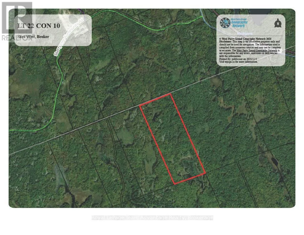 Cross Streets: Skerryvore Community Rd & Shebeshekong Rd. ** Directions: Skerryvore Community Road to Colonization Road. Your private 100-acre wilderness retreat awaits. Just 25 minutes north of Parry Sound this secluded bush property offers the ultimate escape for hunters and outdoor enthusiasts alike. The area is known for excellent black bear, moose and deer hunting. Enjoy unmatched privacy and a true off-grid experience surrounded by pristine Ontario wilderness. Access is suited to the adventurous via an unmaintained colonization road, passable only by 4x4. If you've dreamed of owning a vast, untouched piece of the North this is your opportunity. An adjacent 100-acre parcel is also available. MLS #12430548 (id:27476)