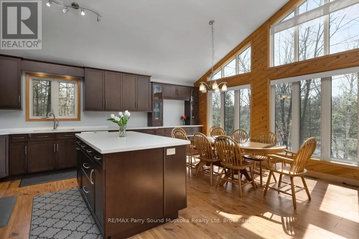 Cross Streets: 400, 559, Shebeshekong Rd, Shebeshekong Est Rd, Sheb Est Rd S. ** Directions: Hwy 400 to Hwy 559, right to Shebeshekong Rd, Left to Shebeshekong Est Rd, left to Shebeshekong Est Rd S, to 38 on right. PRIME SOUTH WEST EXPOSURE on Shebeshekong Lake! BREATHTAKING SUNSETS! This 4 season lake house or cottage getaway is nestled on 2/3 of an acre treed lot, Clean clear 103' of sandy base shoreline, Approx 2300 sq ft, Open concept Great Room enhanced with vaulted ceilings, Wall of windows viewing lake, Fantastic kitchen with huge island, Abundance of cabinetry, Quartz counters, , 3 bedrooms, Warm hardwood floors, Finished walkout lower level boasts family room, Den/guest room, 2nd bath, Desirable oversized double garage with workshop/storage area, New ('24) high efficiency forced air propane furnace, Located just 15 minutes from Parry Sound, Shebeshekong Lake is ideal for family fun, Gentle to step in at water's edge, Deep water at end of dock for great swimming, boating, fishing, Protected waters with gorgeous Northern Natural Landscape, Windswept pines, Year round road access, Don't miss this Lakefront Opportunity being offered by the original owner! (id:27476)
