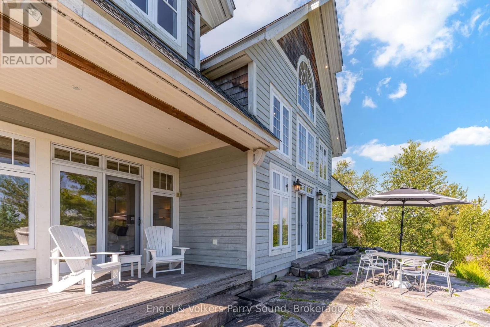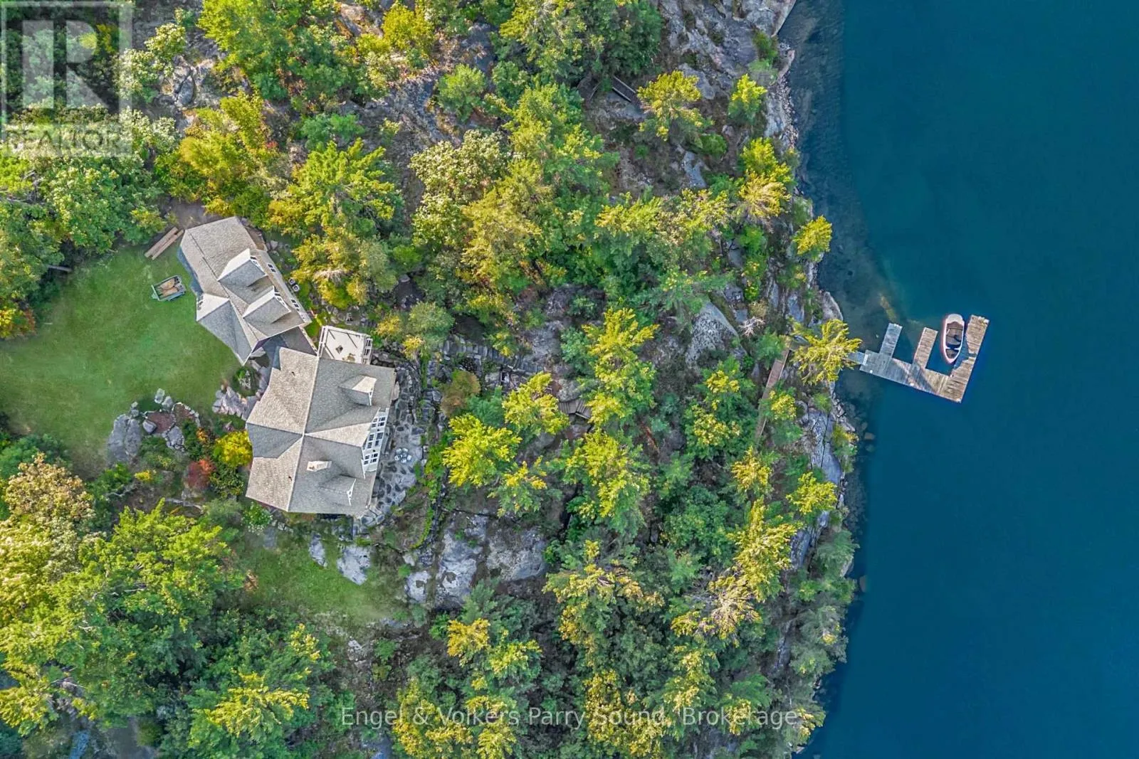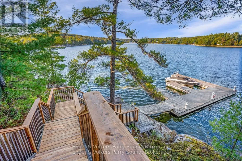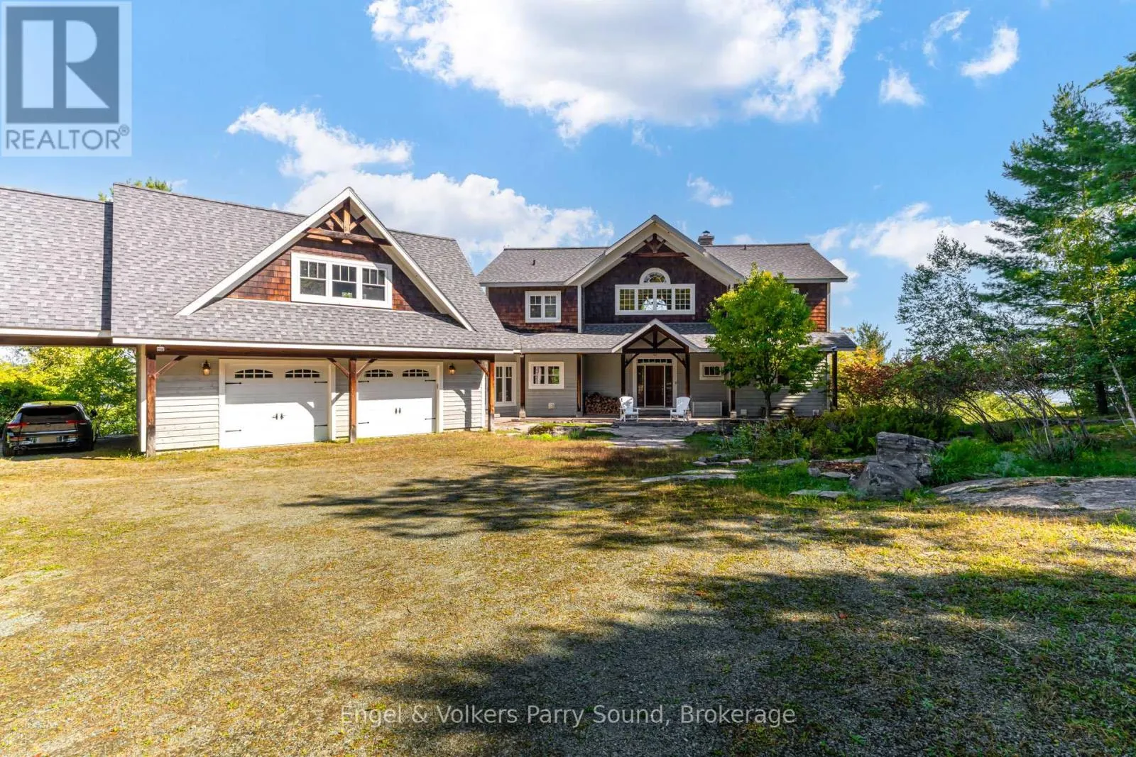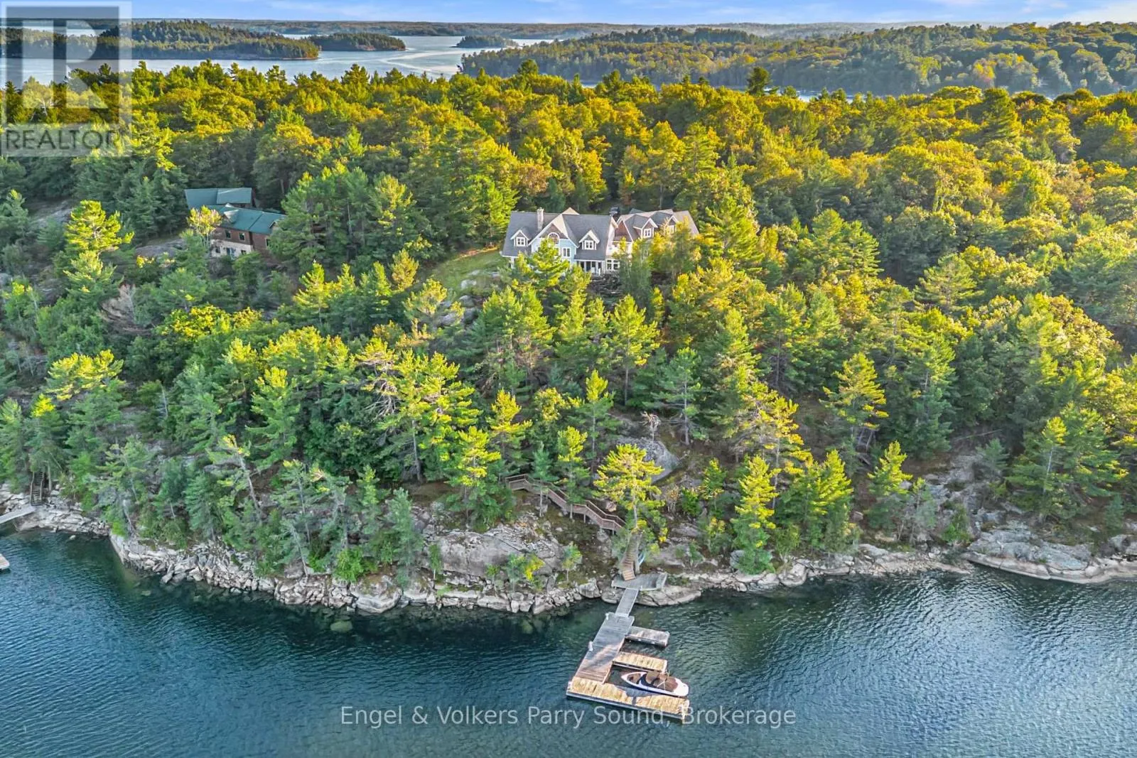 Cross Streets: Bayview Dr & Beacon Point Road. ** Directions: 400 N to 559. 559 to East Carling Bay Road, continue onto Bayview, turn left at Beacon Point Drive. Property on left. Prestigious Year-Round Georgian Bay Estate | Perched atop a sheltered granite outcropping, this custom Georgian Bay masterpiece offers over 3,600 SF of refined living space where timeless craftsmanship meets modern luxury. Designed with a timber frame & accented by soaring post-and-beam construction, the home commands sweeping views of tranquil Carling Bay; an address synonymous with prestige and privacy. Set on nearly 4 acres of natural beauty with 331 feet of deep, clean shoreline, this Cape Cod inspired residence has been celebrated in Canadian Homes & Cottages magazine for its architectural brilliance and flawless execution. Granite walkways, handcrafted stone staircases and artfully designed landscaping seamlessly blend the property with its rugged, picturesque surroundings. The grand great room impresses with its 32-foot cedar ceilings, striking timber trusses & arched windows framing the bay beyond. A magnificent stone fireplace anchors the space, while heated cherry wood and tile floors extend warmth throughout. The gourmet kitchen is outfitted with granite countertops, stainless steel appliances, and a propane stove perfect for both culinary creations and effortless entertaining. With five bedrooms, including luxurious guest suites on the upper level, and a dedicated games wing, the home is designed for both intimate family living and large-scale hosting. Expansive patios, tiered outdoor spaces and breathtaking vistas ensure every moment is embraced in luxury. Car collectors and boating enthusiasts will appreciate the attached and detached garages, providing space for cars, boats, and prized possessions. The private dock offers deep-water mooring and full electrical connections to accommodate large vessels. Enjoy the convenience of year-round municipal road access. Opportunities to own along Beacon Point are exceptionally rare, making this estate not only a home, but a true legacy property on Georgian Bay. (id:27476)