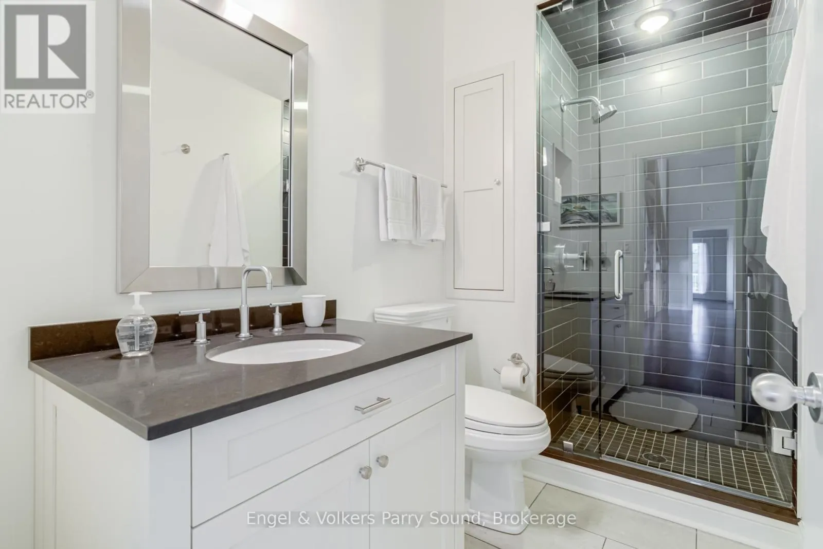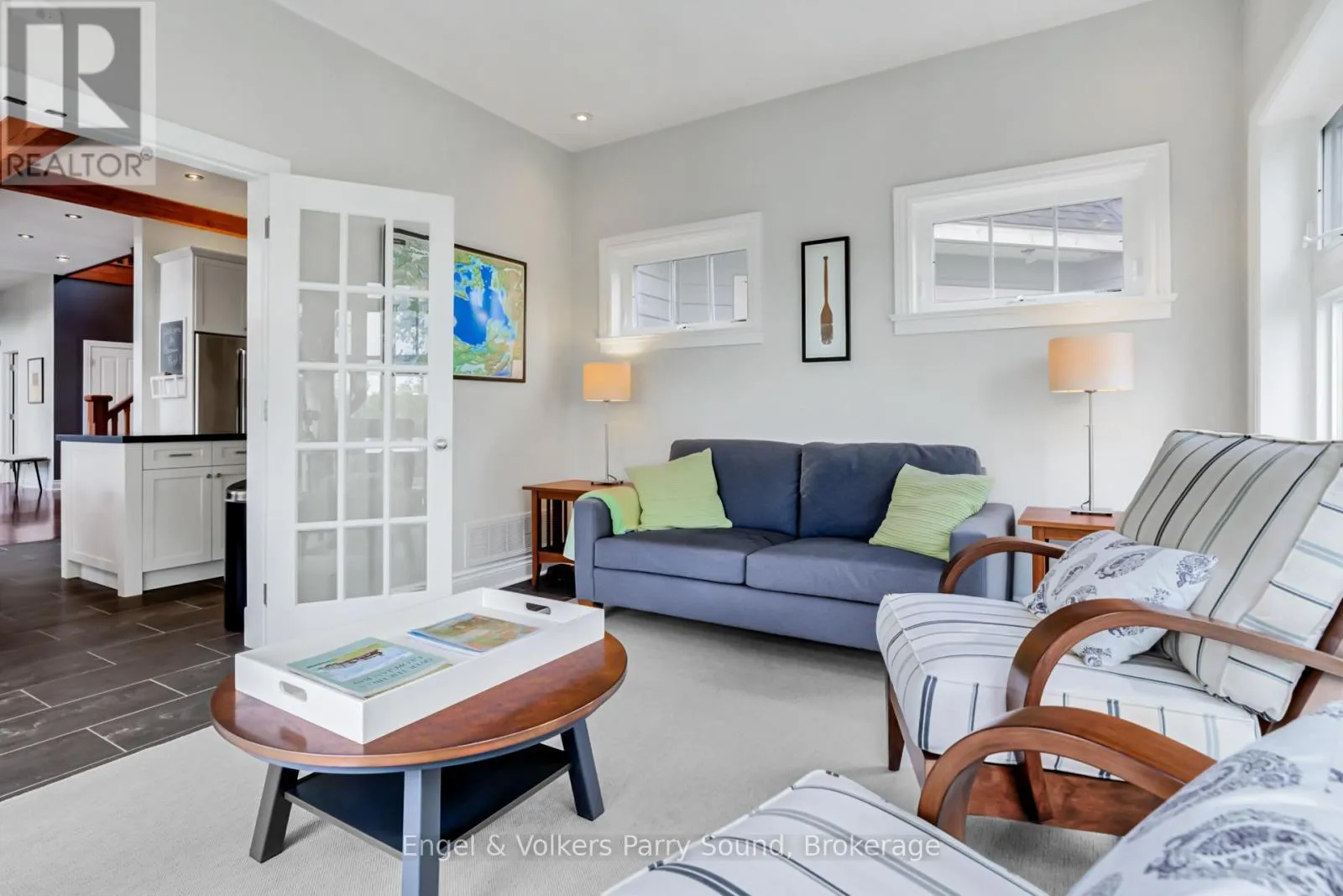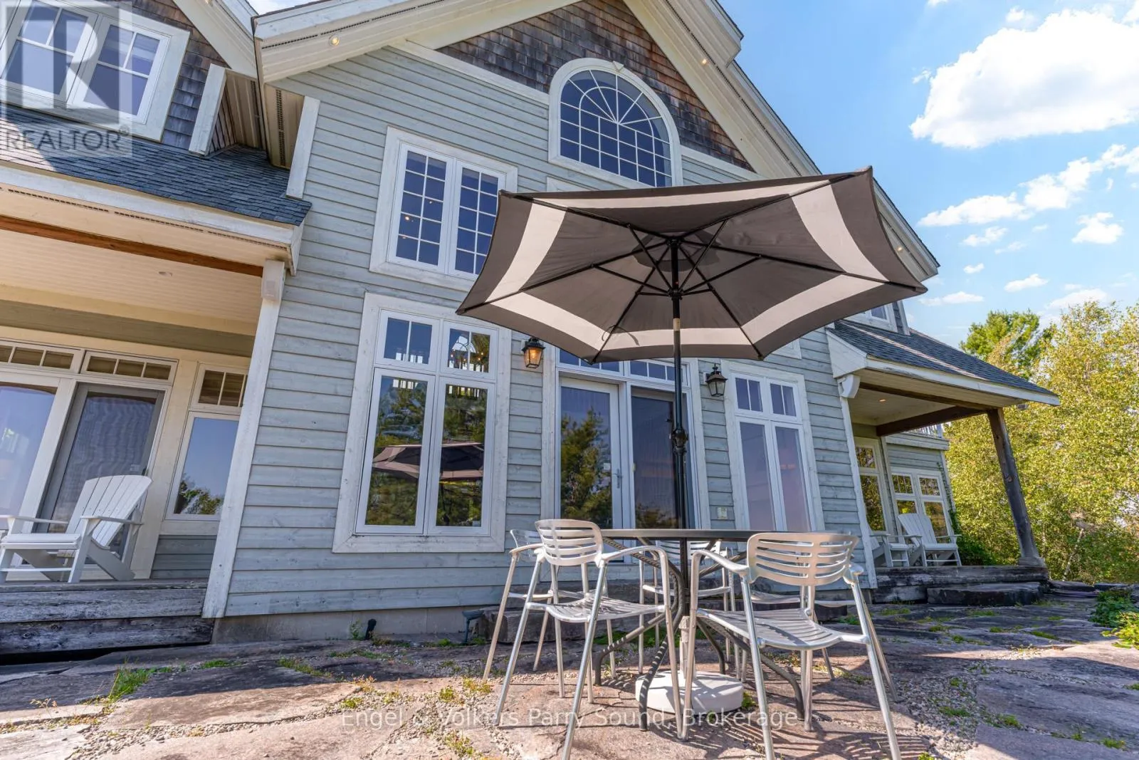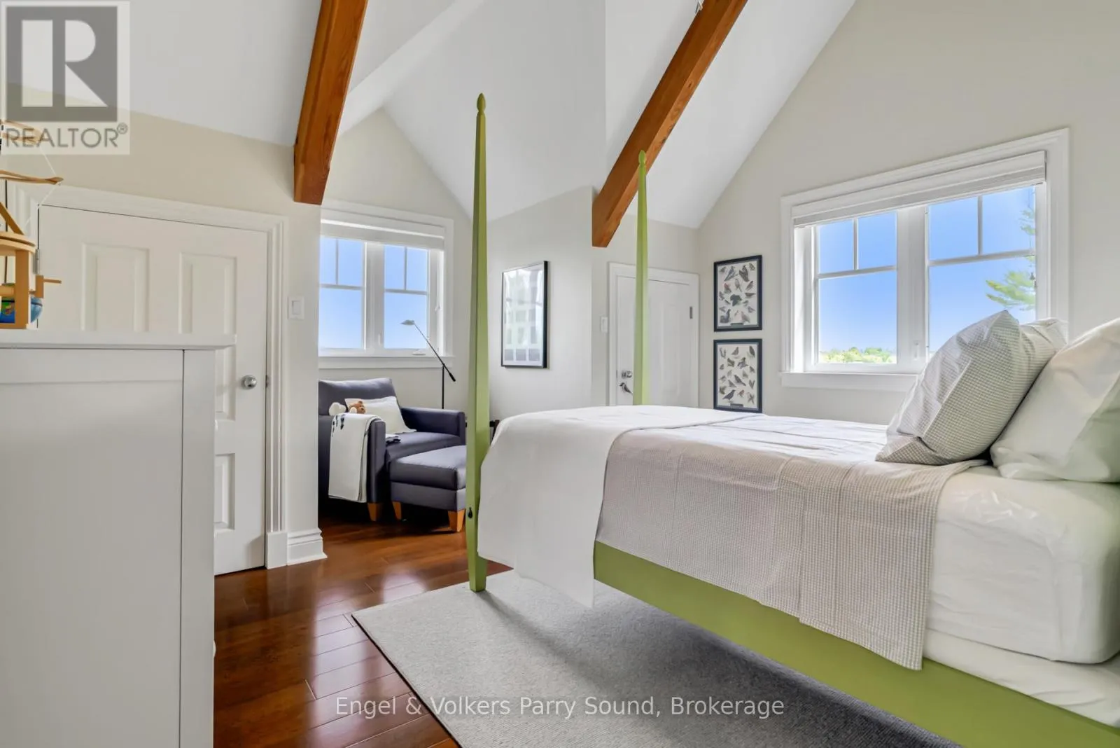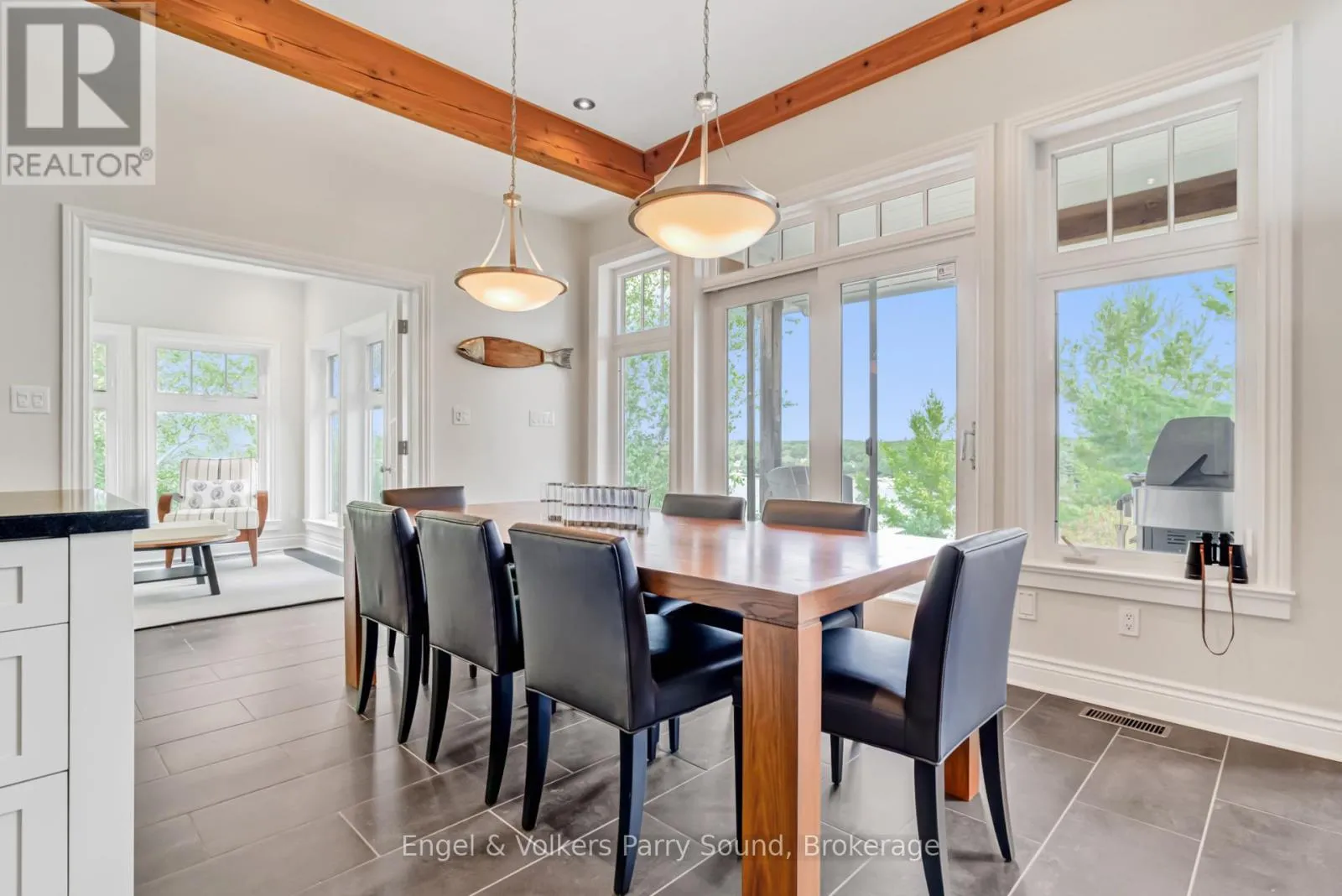 Cross Streets: Bayview Dr & Beacon Point Road. ** Directions: 400 N to 559. 559 to East Carling Bay Road, continue onto Bayview, turn left at Beacon Point Drive. Property on left. Prestigious Year-Round Georgian Bay Estate | Perched atop a sheltered granite outcropping, this custom Georgian Bay masterpiece offers over 3,600 SF of refined living space where timeless craftsmanship meets modern luxury. Designed with a timber frame & accented by soaring post-and-beam construction, the home commands sweeping views of tranquil Carling Bay; an address synonymous with prestige and privacy. Set on nearly 4 acres of natural beauty with 331 feet of deep, clean shoreline, this Cape Cod inspired residence has been celebrated in Canadian Homes & Cottages magazine for its architectural brilliance and flawless execution. Granite walkways, handcrafted stone staircases and artfully designed landscaping seamlessly blend the property with its rugged, picturesque surroundings. The grand great room impresses with its 32-foot cedar ceilings, striking timber trusses & arched windows framing the bay beyond. A magnificent stone fireplace anchors the space, while heated cherry wood and tile floors extend warmth throughout. The gourmet kitchen is outfitted with granite countertops, stainless steel appliances, and a propane stove perfect for both culinary creations and effortless entertaining. With five bedrooms, including luxurious guest suites on the upper level, and a dedicated games wing, the home is designed for both intimate family living and large-scale hosting. Expansive patios, tiered outdoor spaces and breathtaking vistas ensure every moment is embraced in luxury. Car collectors and boating enthusiasts will appreciate the attached and detached garages, providing space for cars, boats, and prized possessions. The private dock offers deep-water mooring and full electrical connections to accommodate large vessels. Enjoy the convenience of year-round municipal road access. Opportunities to own along Beacon Point are exceptionally rare, making this estate not only a home, but a true legacy property on Georgian Bay. (id:27476)