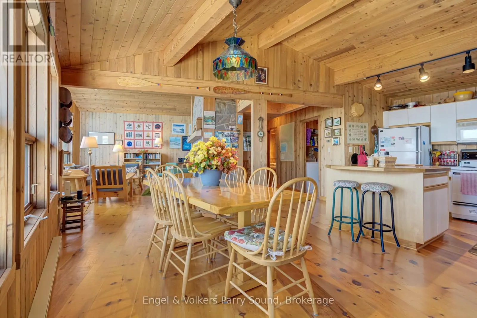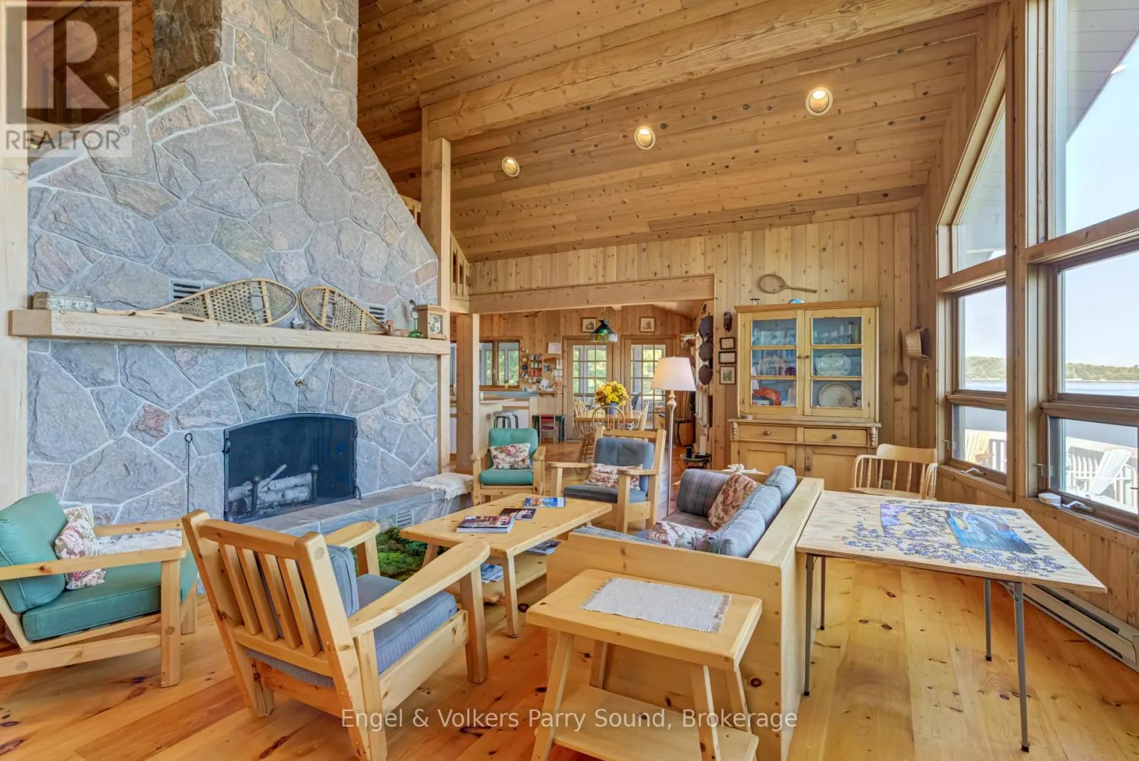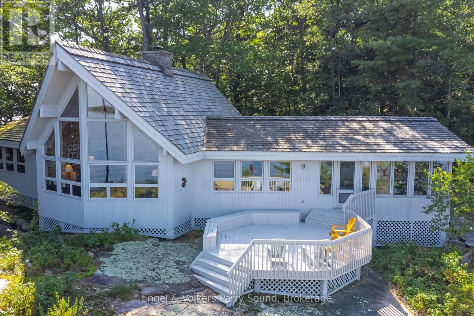 Carling bay east to Harrison landing road to marina. Welcome to Invernairn on Georgian Bay. The property consists of almost 12 acres and approximately 2,500 feet of shoreline on Georgian Bay forming the southern peninsula of highly coveted Mowat Island. Built by locally renowned builder Ron Bowman, the family compound features a 4-bedroom main cottage and 3-bedroom guest house both with jaw dropping views overlooking the quiet eastern shoreline of Huckleberry Island including the notable landmark, Hole in the Wall and both on their own septic systems. The main cottage features an open concept with vaulted ceilings and large windows allowing for an abundance of natural light. The centre of the cottage is anchored by a massive floor to ceiling wood burning fireplace constructed from locally quarried granite. Off of the kitchen is a screened sun porch with remarkable views and is a favourite gathering place in the summer - large enough to accommodate family & friends. A wooden boardwalk provides connectivity between the main house and guest house while still allowing for ultimate privacy. The property is heavily treed largely with Jack Pine, Oak and Hemlock. There is a Forest Management Agreement in place on the property thereby assuring significant tax relief. The lush vegetation supports a vibrant bird population, as well as fox and deer. Well groomed trails throughout the property offer opportunities for walking and hiking. A golf cart is employed to transport luggage and supplies from the harbour to the cottages. The property also features a long protected sandy beach, perfect for children and rarely found on Georgian Bay. Mowat Island has tremendous history and was originally home to a grand Georgian Bay Hotel operating during the late 1800's in the peak of passenger steamships. Now the property is spotted from large cruise ships sailing the Great Lakes & beyond. (id:27476)