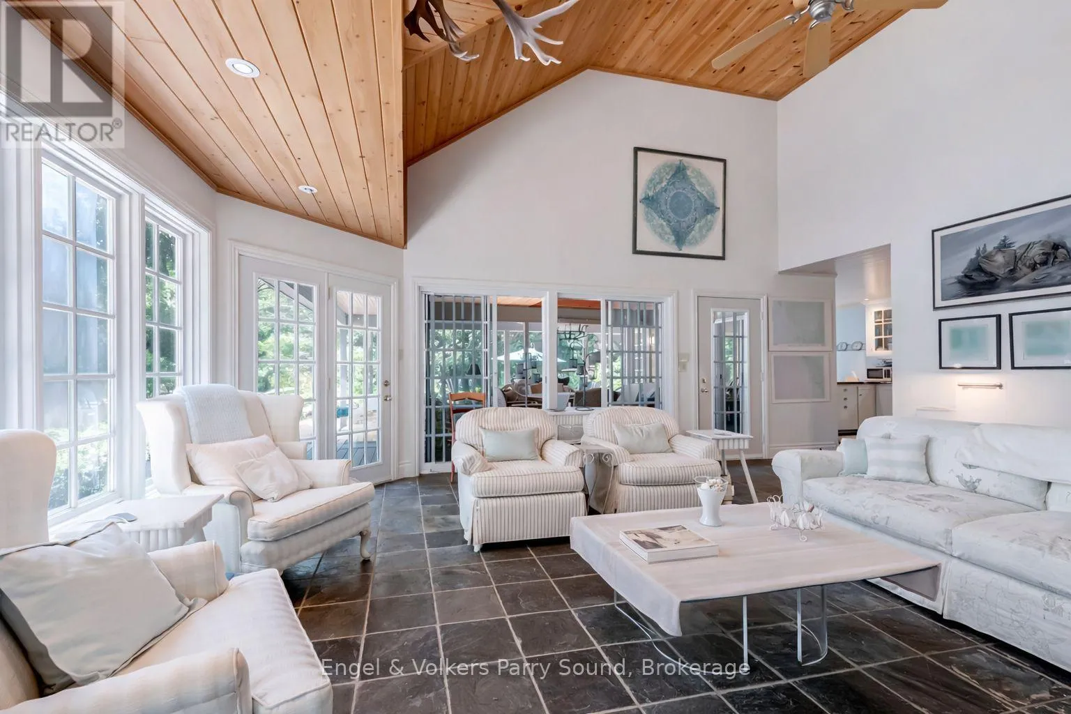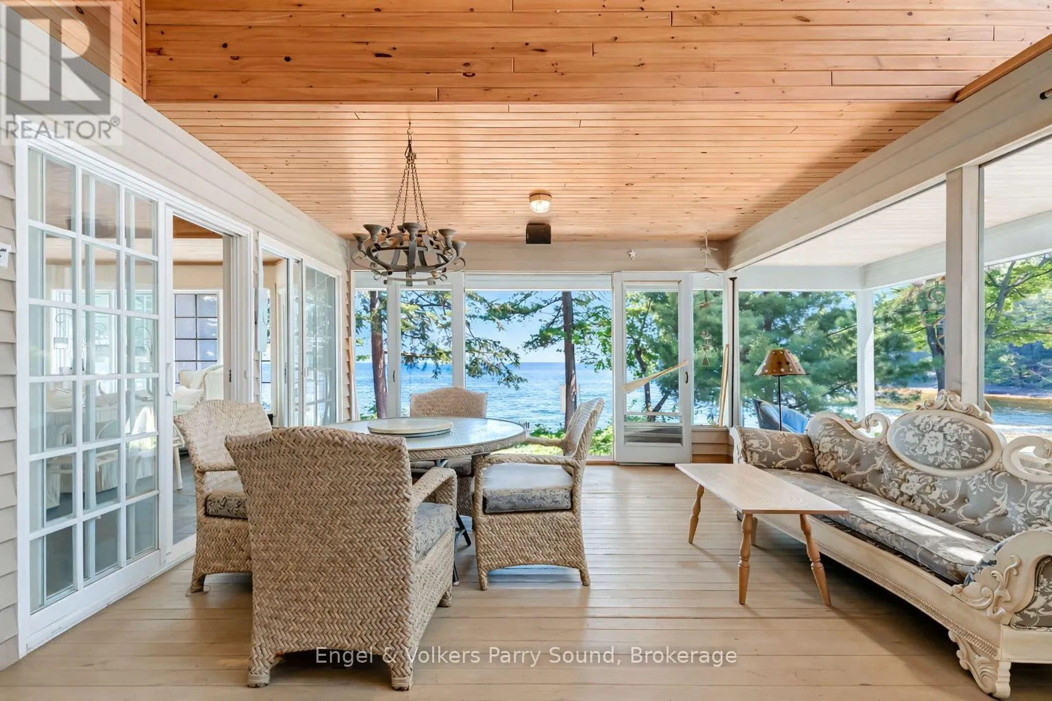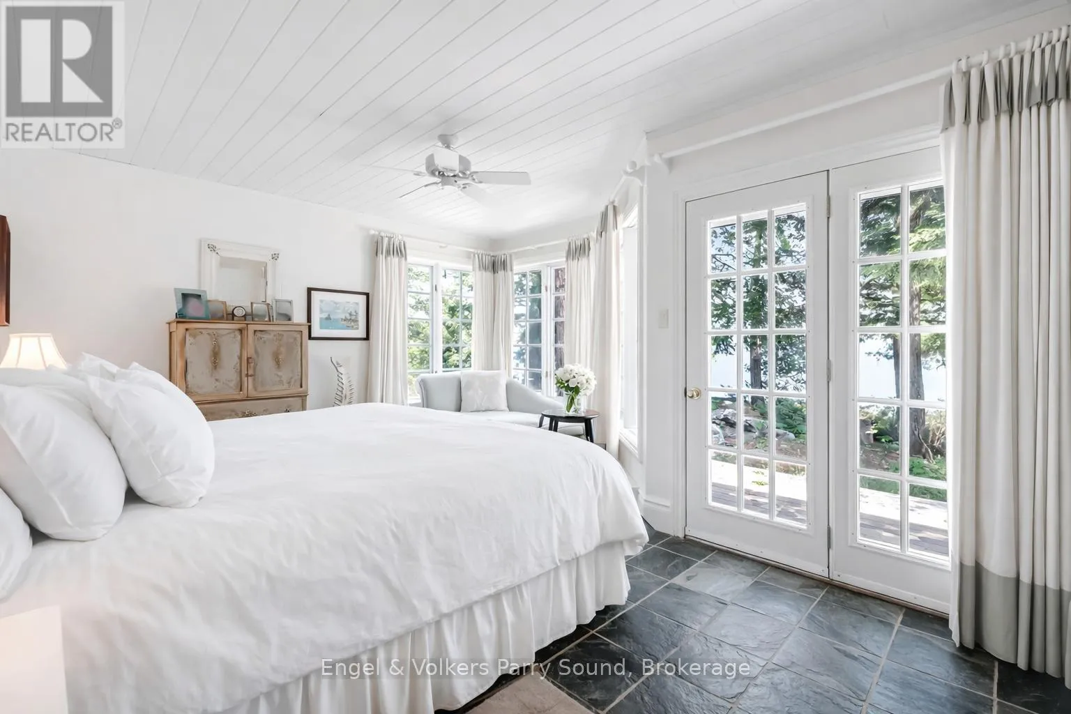 Cross Streets: By boat from local marinas. ** Directions: Harrison Marina to Mowat Island. Welcome to an unparalleled Georgian Bay retreat--an exclusive 18+ acre estate on the highly coveted Mowat Island, just 10 minutes by boat from Hwy 400 & two local marinas (Harrison Landing & Carling Bay). Offering exceptional privacy, this legacy island property features 1,575' of pristine shoreline, where smooth granite outcrops meet a natural 400' sandy beach & sheltered lagoon with shallow, child-friendly entry. Crafted by Spragge & Company Architects & constructed by renowned builder Ron Bowman, the main cottage is a timeless blend of classic cottage warmth & refined design, seamlessly integrating indoor & outdoor living. Vaulted pine ceilings with dormers, slate floors & a dramatic floor-to-ceiling cultured stone fireplace set the tone for relaxed elegance. An inviting sunroom bathed in natural light offers water & forest views, while the custom kitchen boasts abundant cabinetry & premium finishes. The principal bedroom features a walkout to the deck & a second-level loft provides a cozy retreat for children or guests. Expansive panoramic southeast views of Parry Sound are matched only by the private west facing point, ideal for unforgettable sunset gatherings. With two deep-water docks, the shoreline accommodates larger vessels, making arrival & exploration effortless. A charming guest bunkie sits just steps from the beach, complete with kitchen amenities, a 2-pc bath & a secluded outdoor shower perfect for hosting family or friends in comfort & style. Wander the picturesque walking trails that wind through the property's mature forest, discover foraging delights, or relax at the tent platform perched on an elevated rock face, where sweeping views create a tranquil escape. Zoning allows for a second full cottage on the property, and the existing Managed Forest Tax Incentive Plan (MFTIP) offers notable tax savings. Turn-key and fully furnished, this one-of-a-kind island estate is ready for immediate enjoyment. (id:27476)