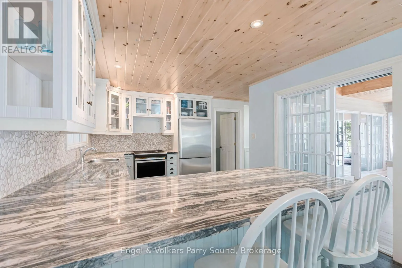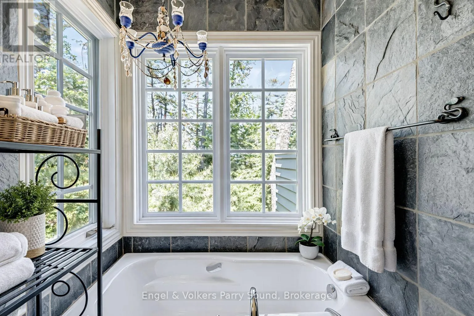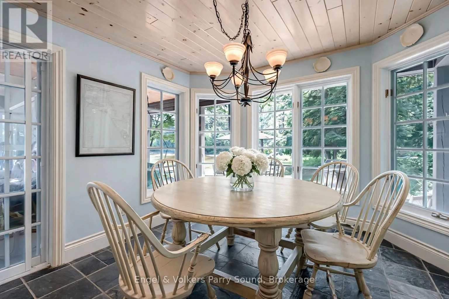 Cross Streets: By boat from local marinas. ** Directions: Harrison Marina to Mowat Island. Welcome to an unparalleled Georgian Bay retreat--an exclusive 18+ acre estate on the highly coveted Mowat Island, just 10 minutes by boat from Hwy 400 & two local marinas (Harrison Landing & Carling Bay). Offering exceptional privacy, this legacy island property features 1,575' of pristine shoreline, where smooth granite outcrops meet a natural 400' sandy beach & sheltered lagoon with shallow, child-friendly entry. Crafted by Spragge & Company Architects & constructed by renowned builder Ron Bowman, the main cottage is a timeless blend of classic cottage warmth & refined design, seamlessly integrating indoor & outdoor living. Vaulted pine ceilings with dormers, slate floors & a dramatic floor-to-ceiling cultured stone fireplace set the tone for relaxed elegance. An inviting sunroom bathed in natural light offers water & forest views, while the custom kitchen boasts abundant cabinetry & premium finishes. The principal bedroom features a walkout to the deck & a second-level loft provides a cozy retreat for children or guests. Expansive panoramic southeast views of Parry Sound are matched only by the private west facing point, ideal for unforgettable sunset gatherings. With two deep-water docks, the shoreline accommodates larger vessels, making arrival & exploration effortless. A charming guest bunkie sits just steps from the beach, complete with kitchen amenities, a 2-pc bath & a secluded outdoor shower perfect for hosting family or friends in comfort & style. Wander the picturesque walking trails that wind through the property's mature forest, discover foraging delights, or relax at the tent platform perched on an elevated rock face, where sweeping views create a tranquil escape. Zoning allows for a second full cottage on the property, and the existing Managed Forest Tax Incentive Plan (MFTIP) offers notable tax savings. Turn-key and fully furnished, this one-of-a-kind island estate is ready for immediate enjoyment. (id:27476)